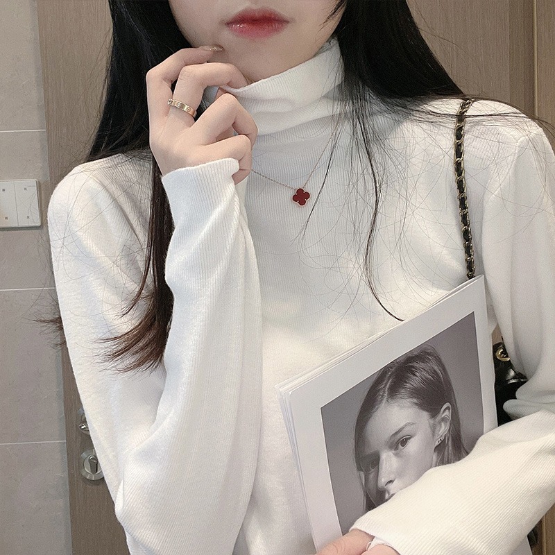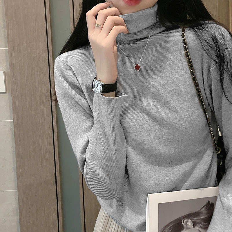 RM30803#堆堆领针织衫长袖t恤女2023新款修身高领打底衫纯色内搭上衣