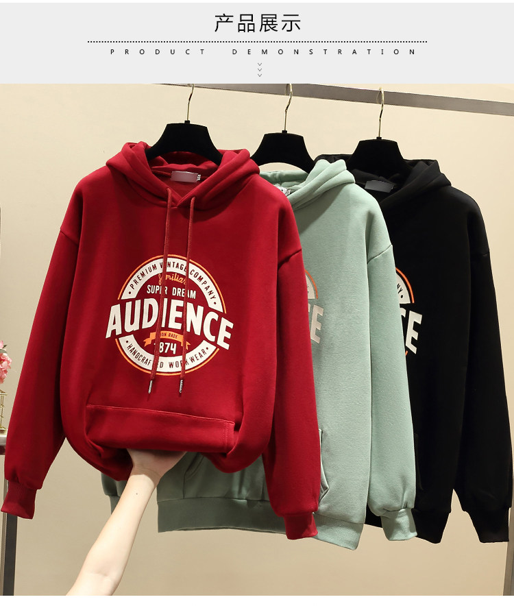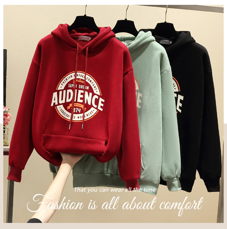 RM30805#新款加绒套头连帽卫衣女宽松韩版慵懒风休闲外套女