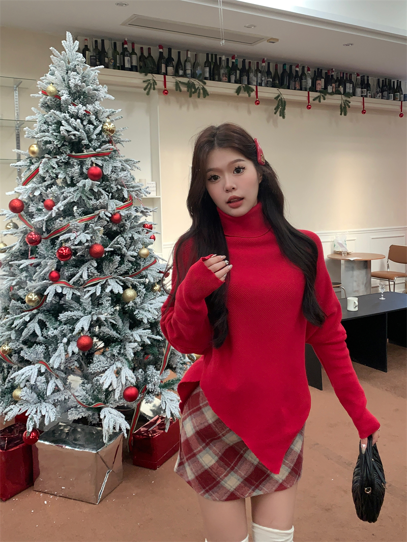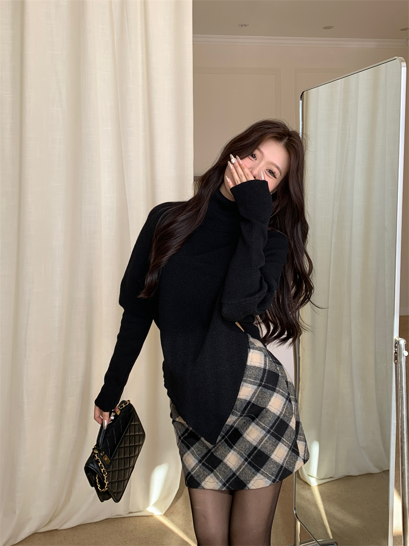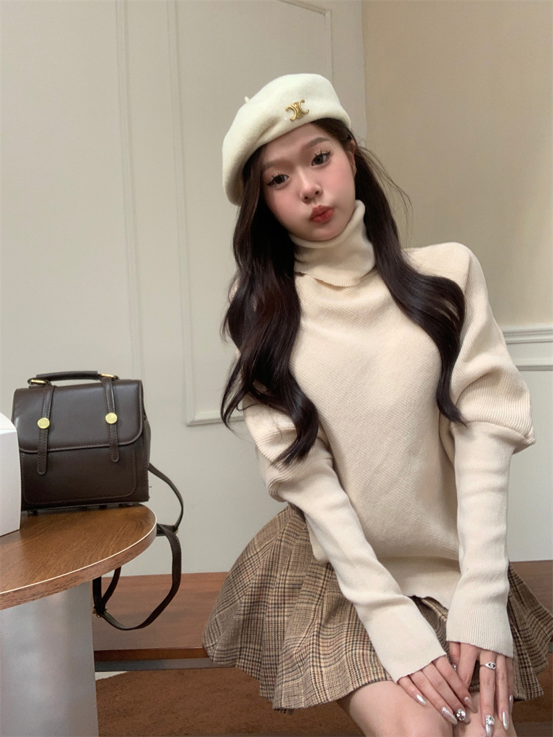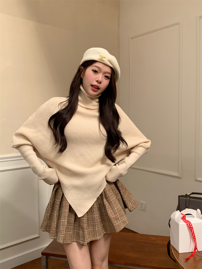 RM30817#有视频!新款气质设计感不规则蝙蝠袖高领慵懒风针织衫毛衣女