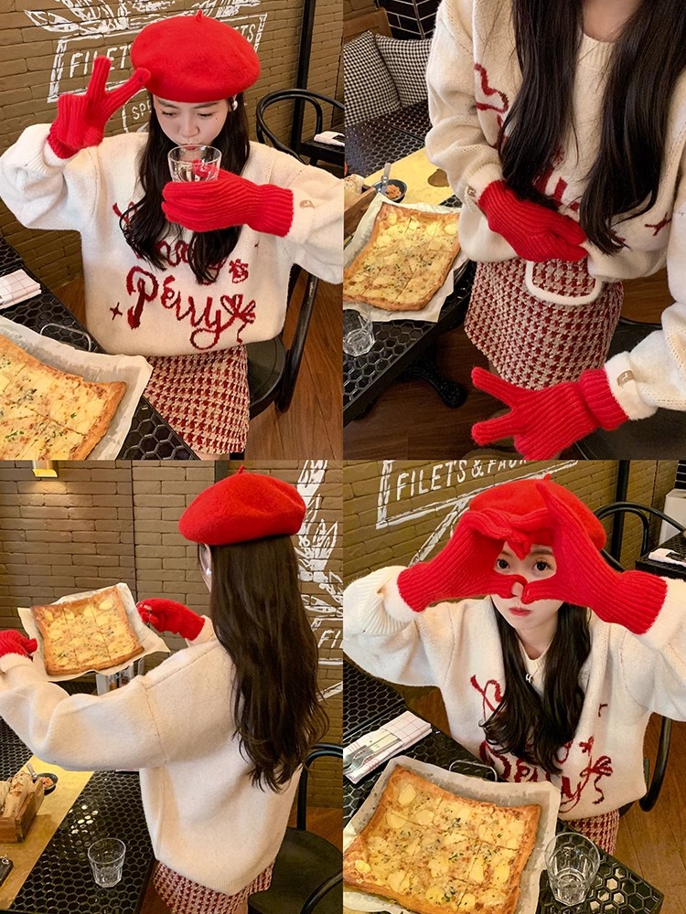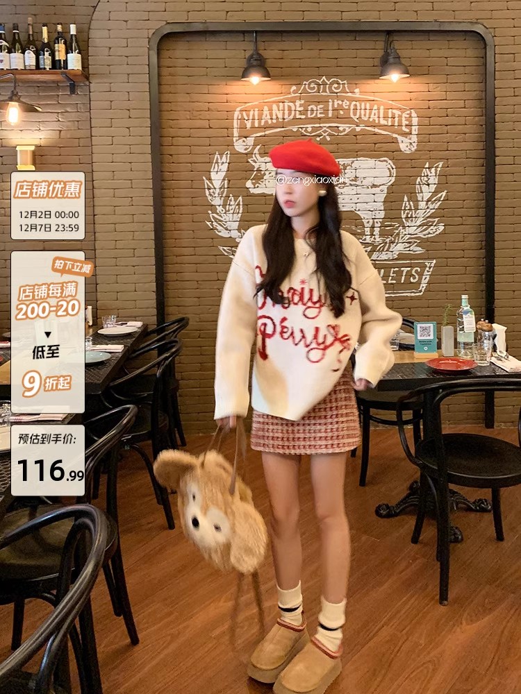 RM30820#有视频!曾小咸 甜美圣诞套装穿搭女冬季慵懒风软糯毛衣宽松加厚上衣外穿