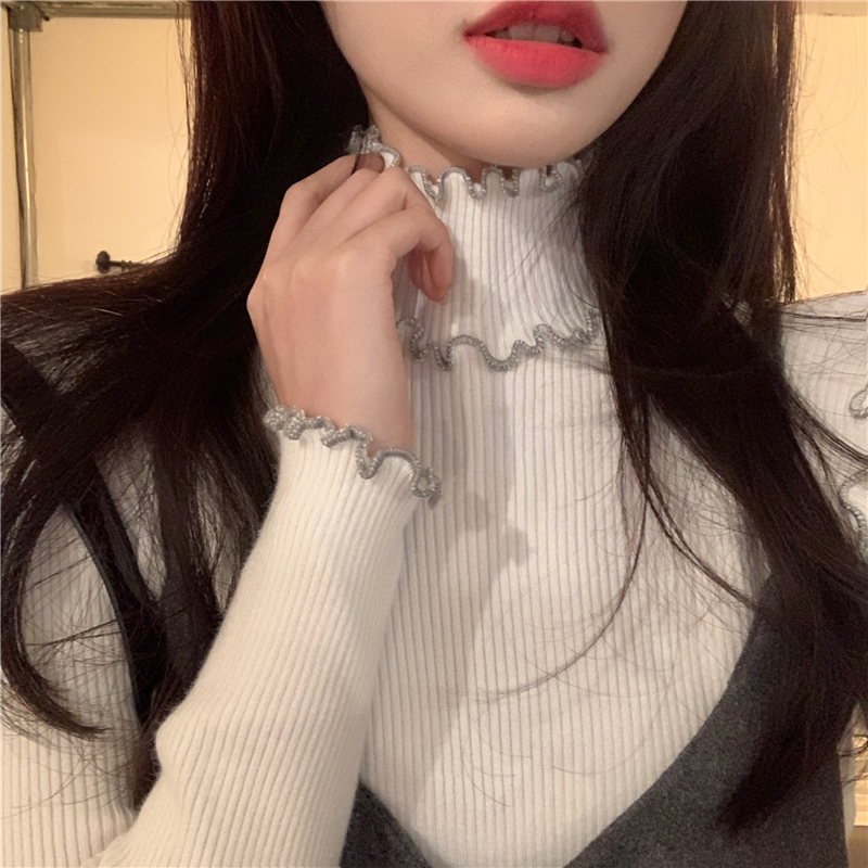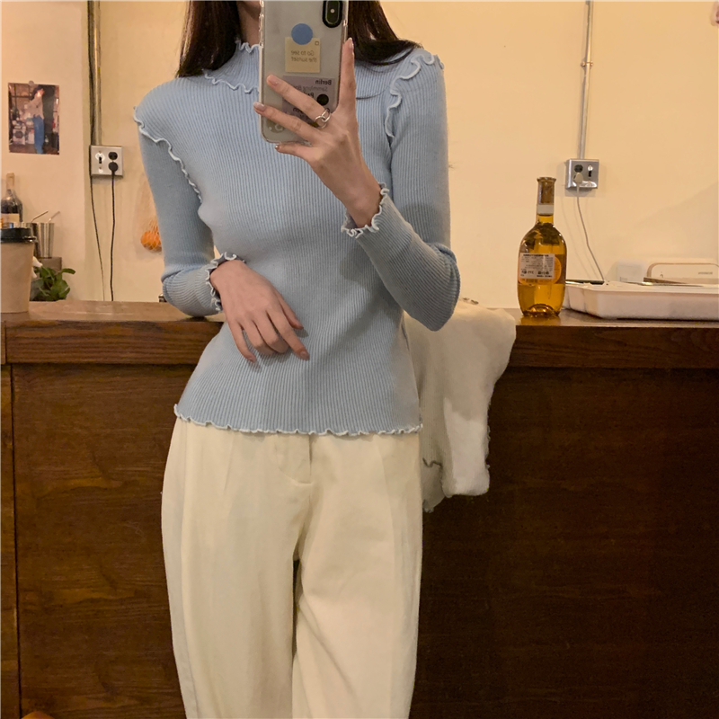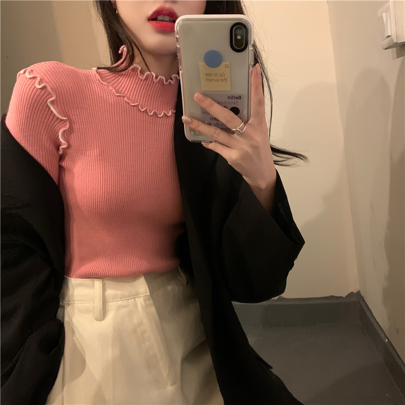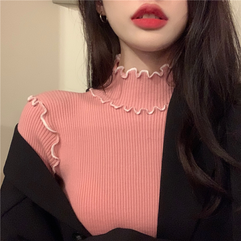 RM30821#有视频!心机正反穿木耳边 多色高领长袖内搭显瘦针织打底衫