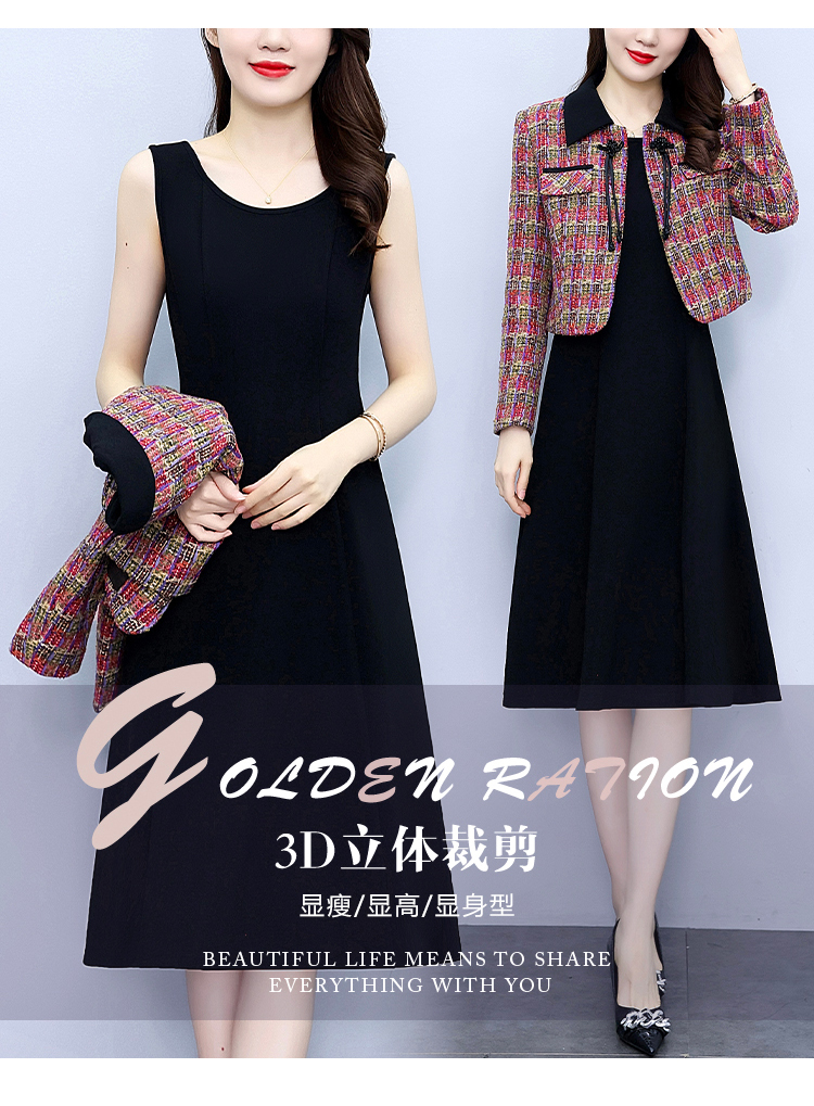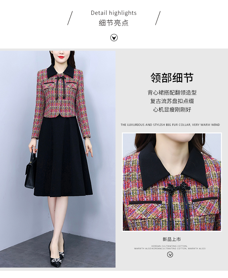 RM30844#爆款小香风两件套2023秋冬新款金纺粗花呢外套搭背心裙套装