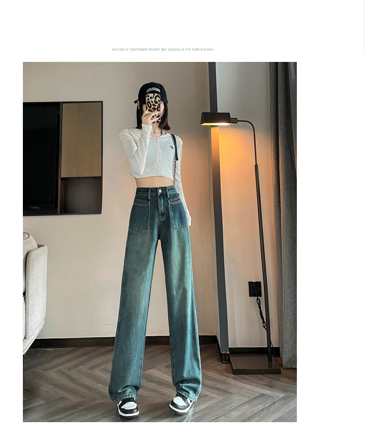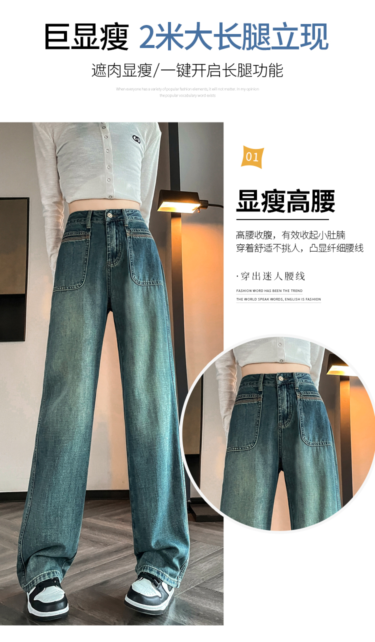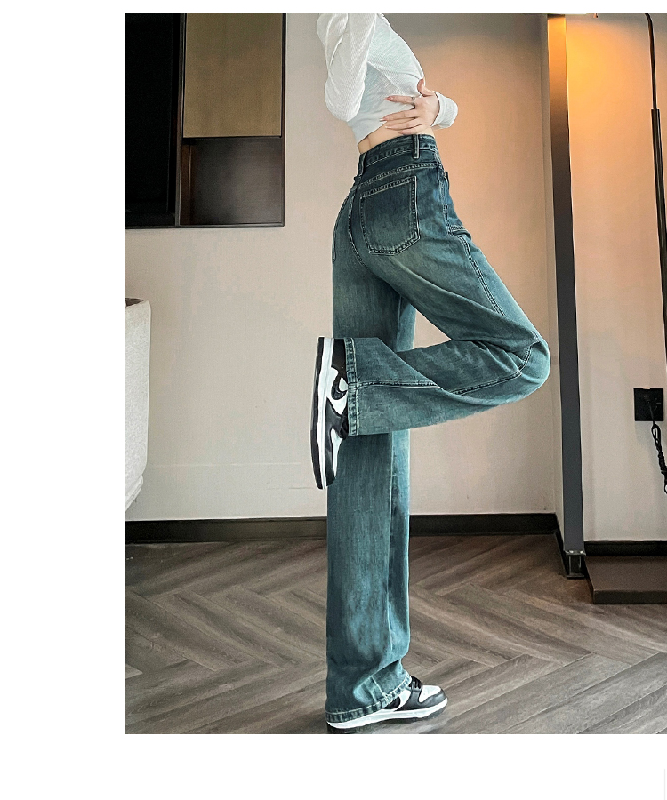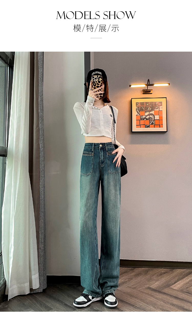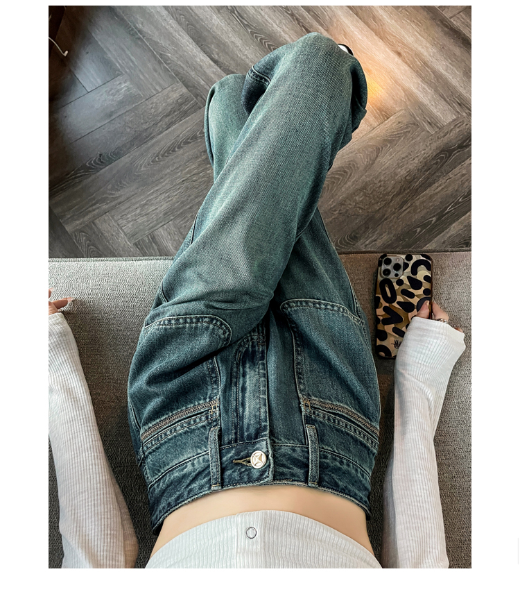 RM30879#复古怀旧窄版阔腿牛仔裤女2024新款直筒高腰显瘦港味宽松直筒裤子