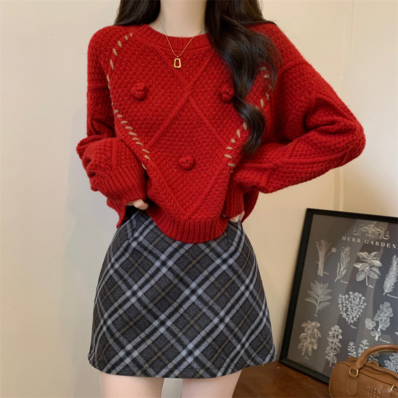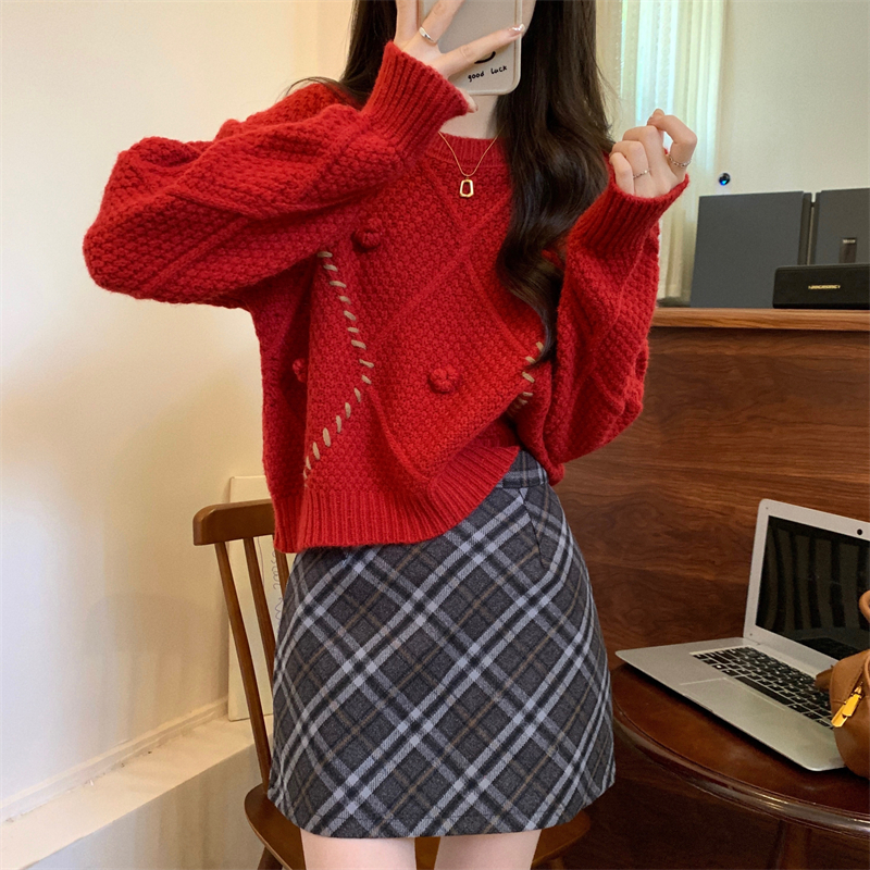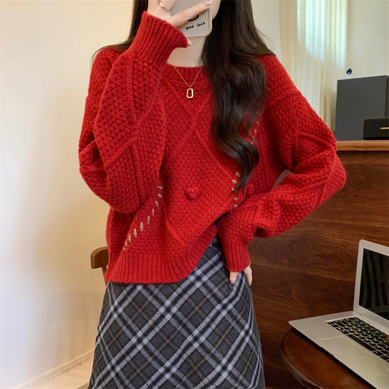 RM30883#新版韩风设计感圣诞过年红色高质量套头毛衣