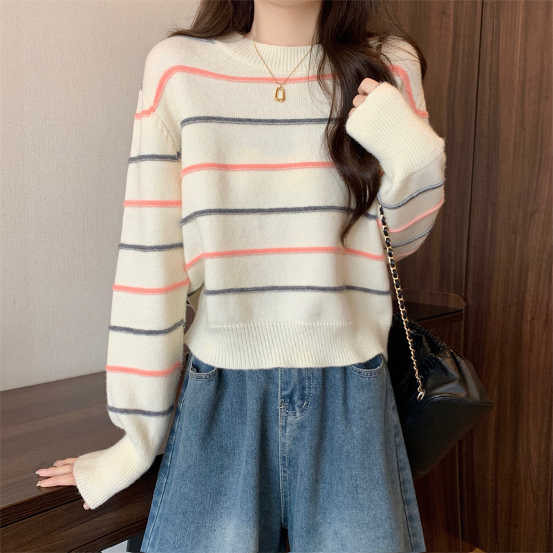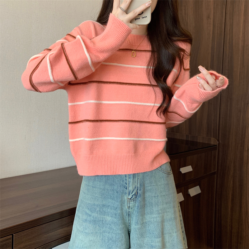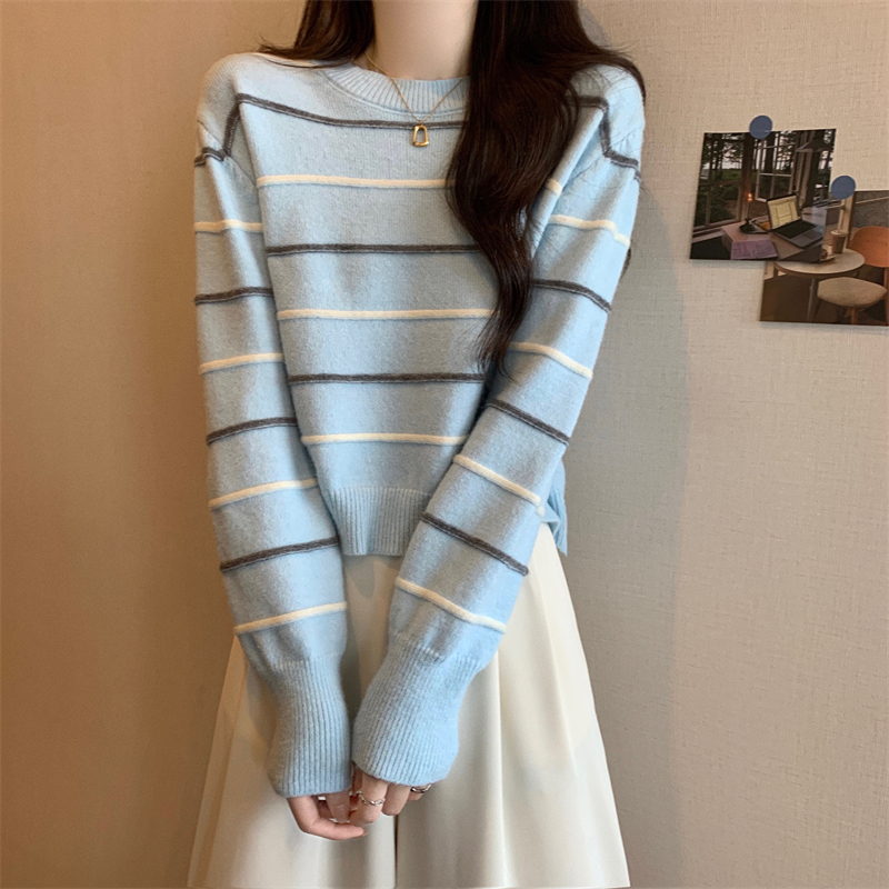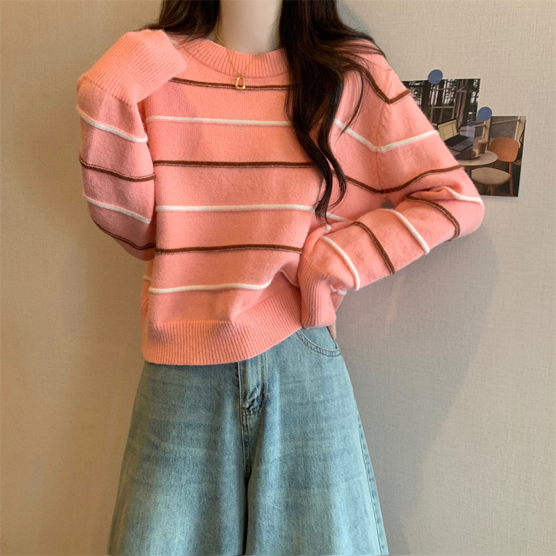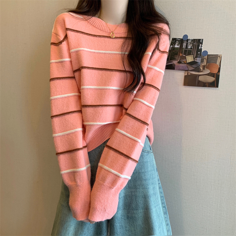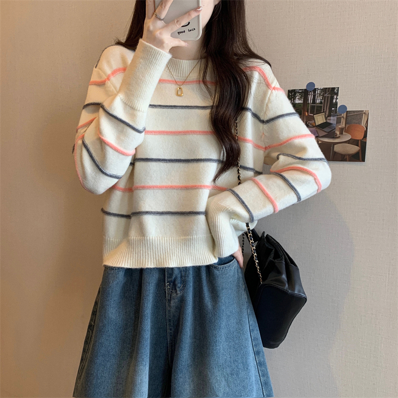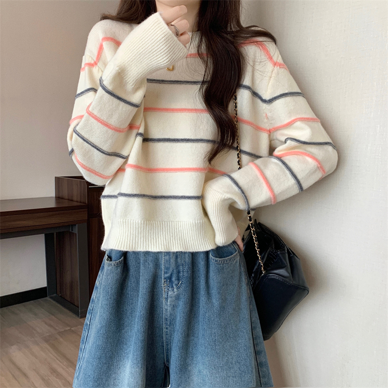 RM30884#新版韩风设计感拼色百搭长袖套头针织衫