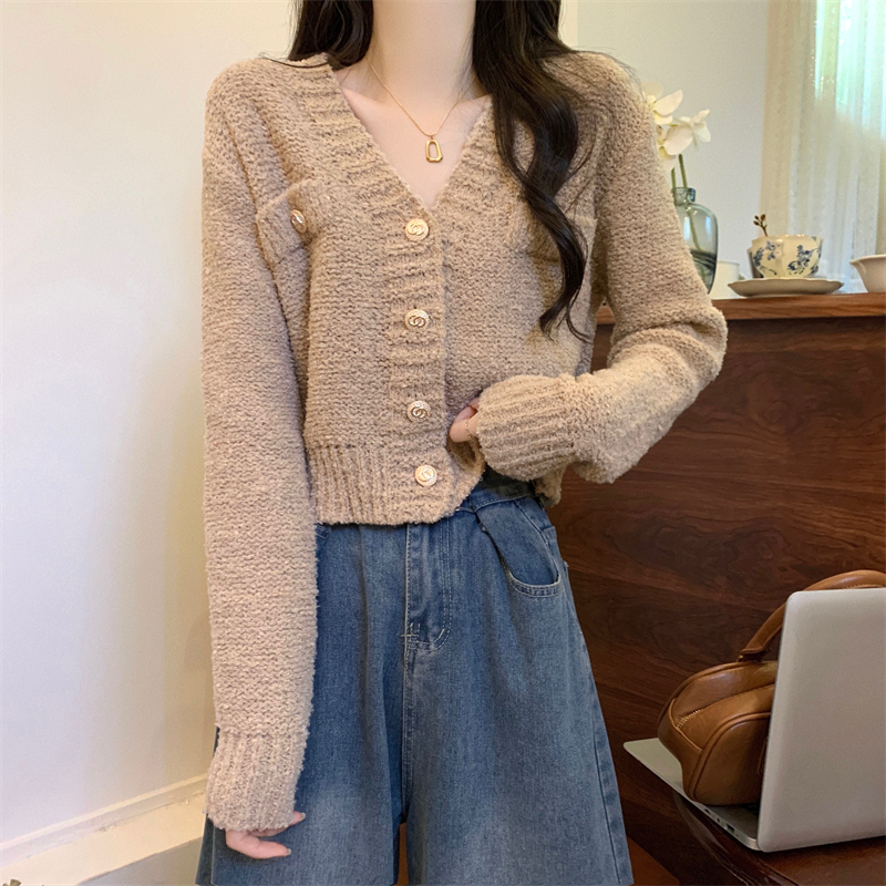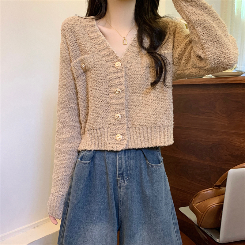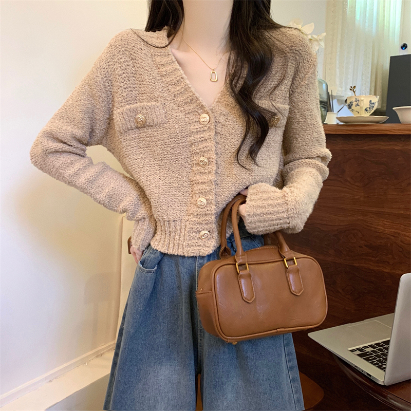 RM30891#新版韩风设计感V领百搭毛衣开衫外套
