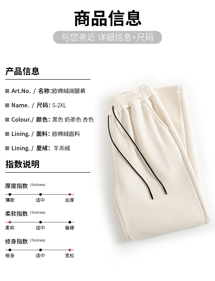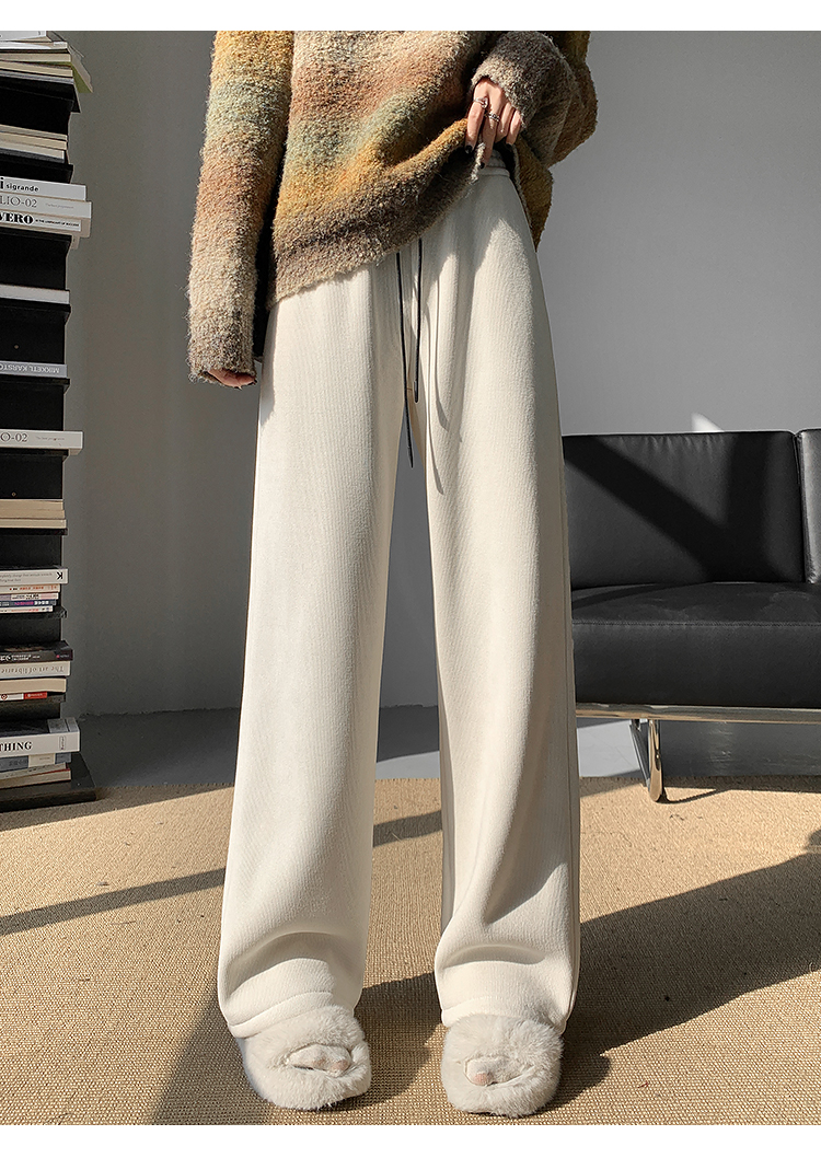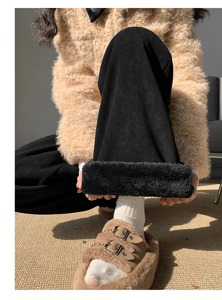 RM30893#新款羊羔绒加绒雪尼尔高腰窄版阔腿裤欧棉绒休闲裤女