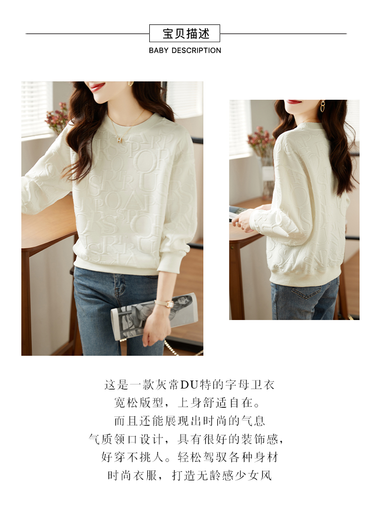 RM30912#潮牌高级定制面料圆领卫衣设计感小众立体字母压花针织上衣百搭