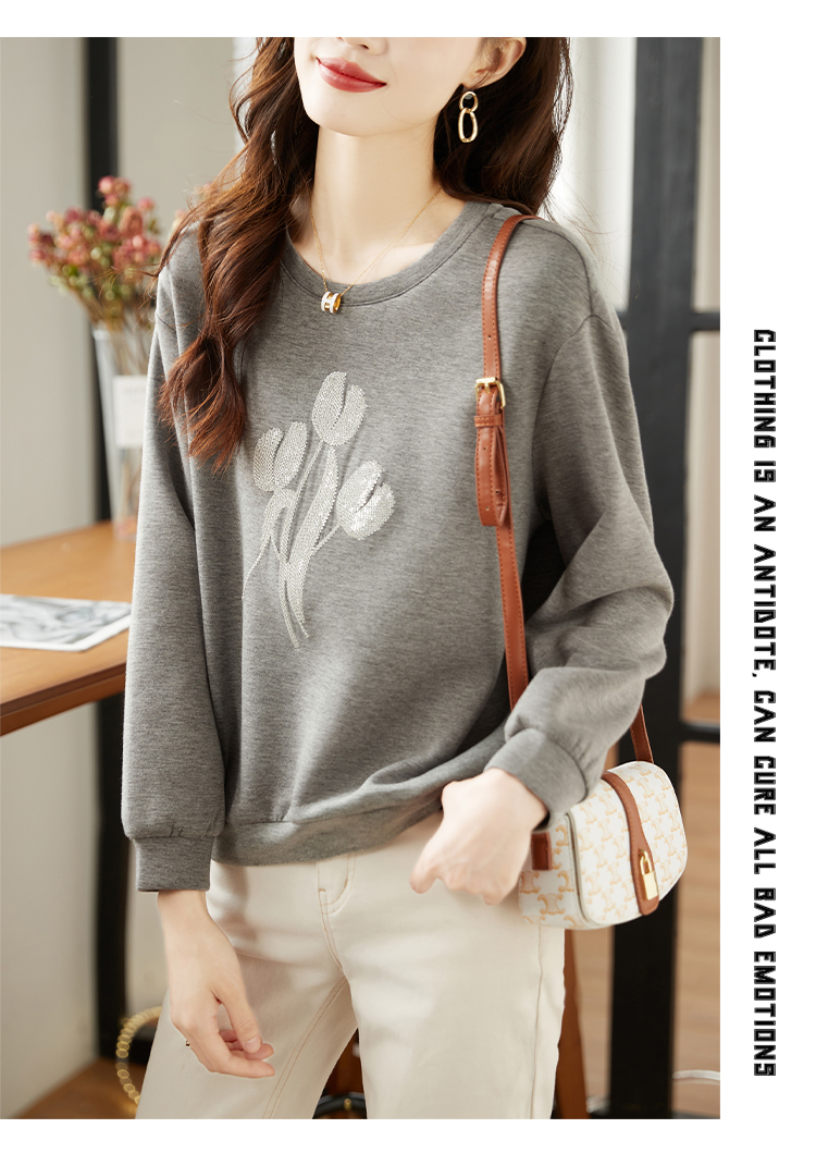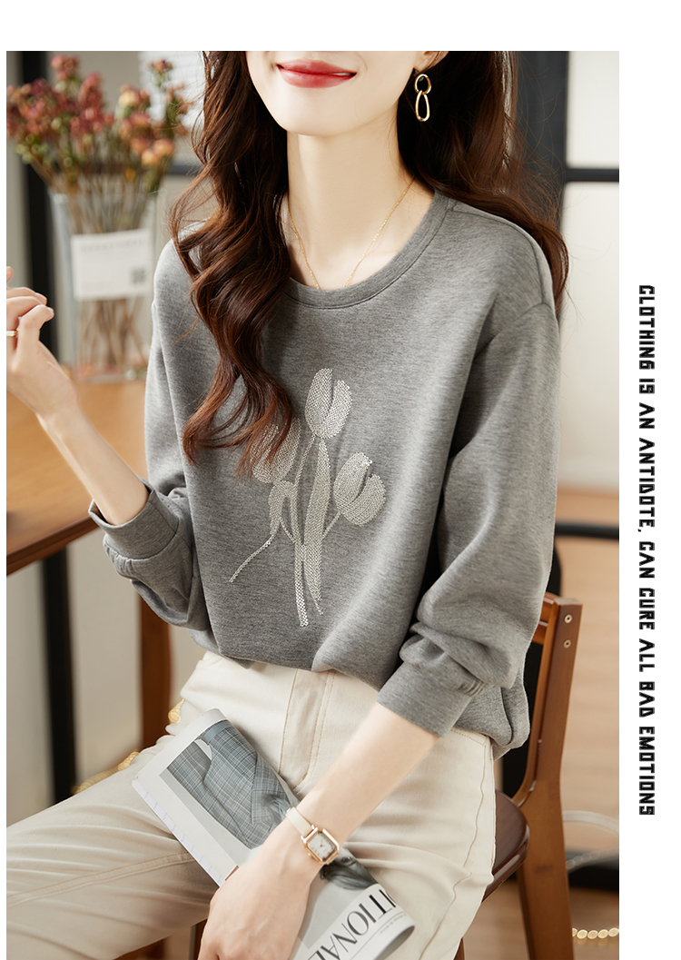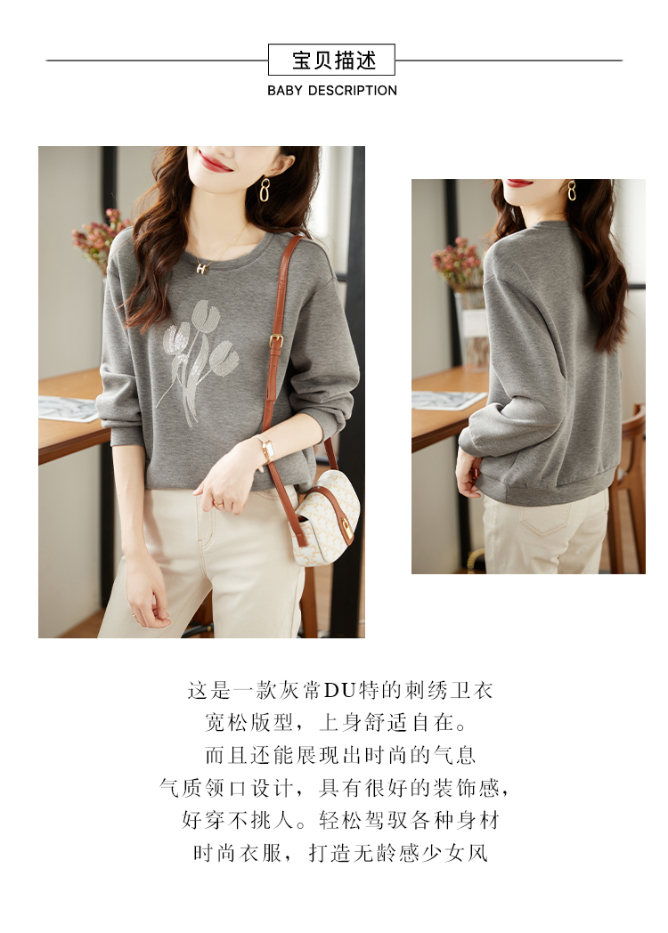RM30916#高级感太空棉圆领套头卫衣女2024春季新款减龄植绒上衣潮宽松外套