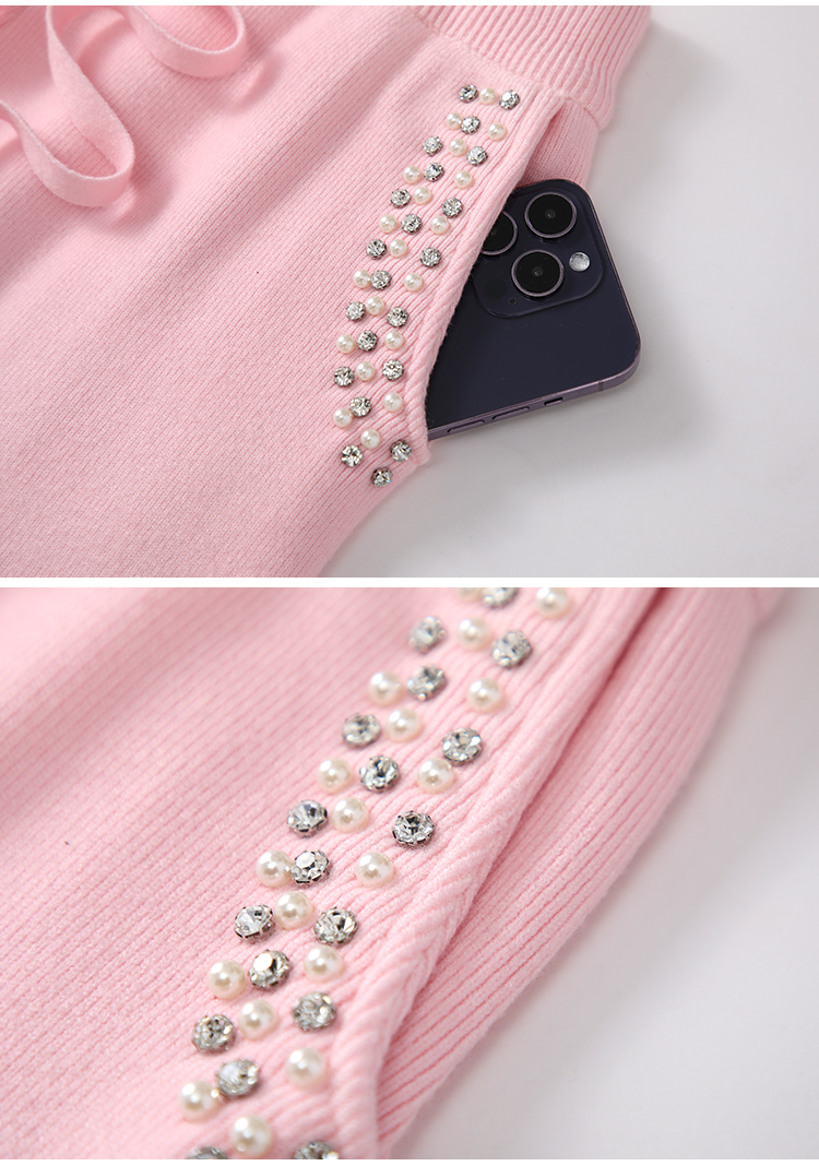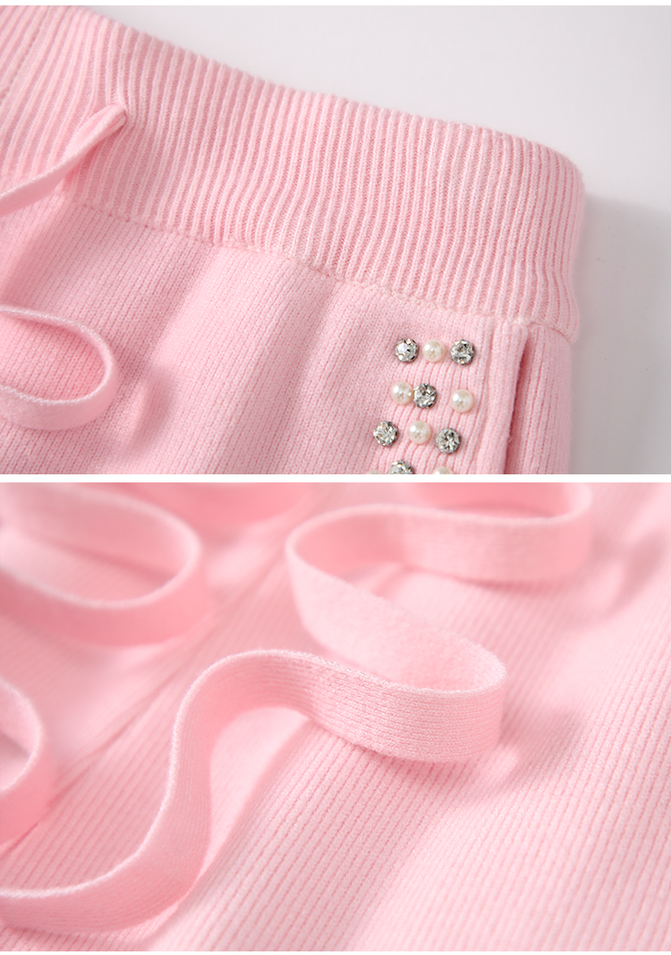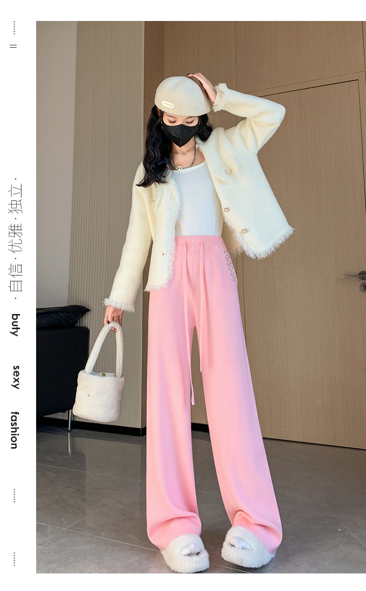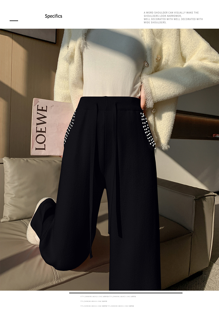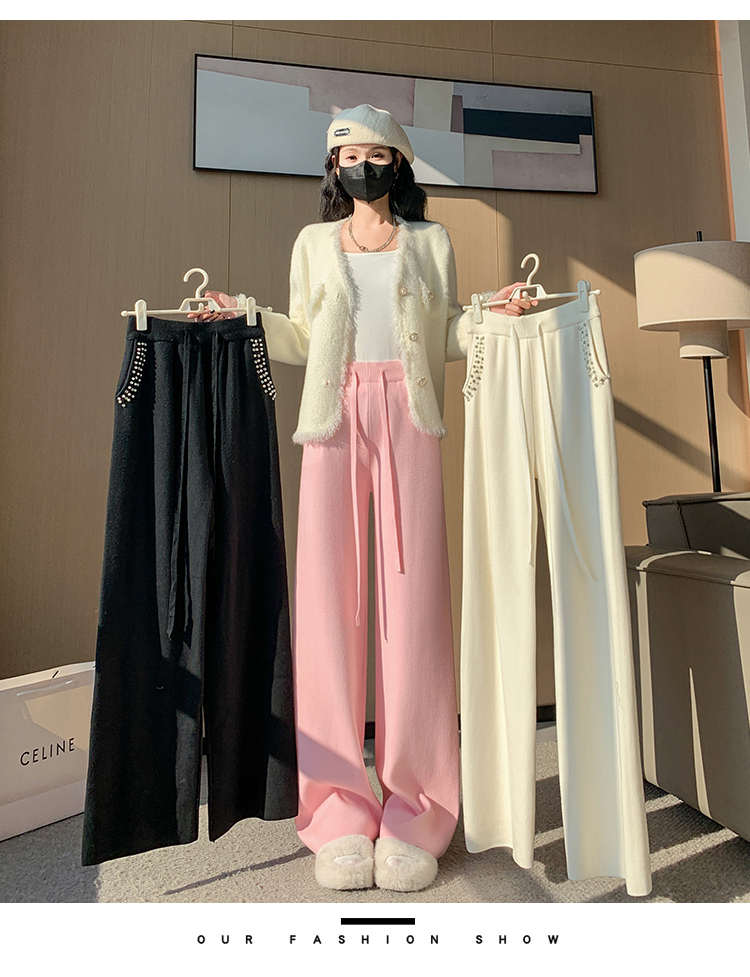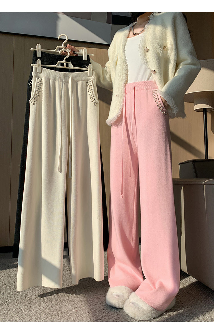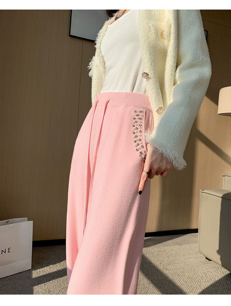 RM30932#新款时尚高腰重工手工钉珠高级感针织休闲直筒羊绒拖地裤