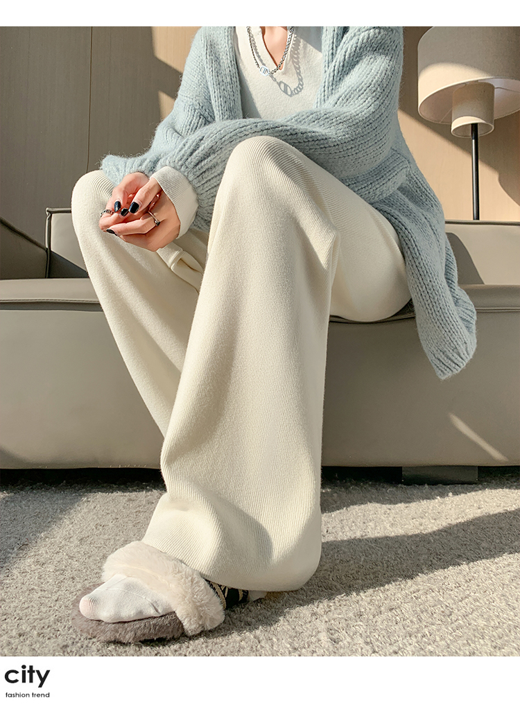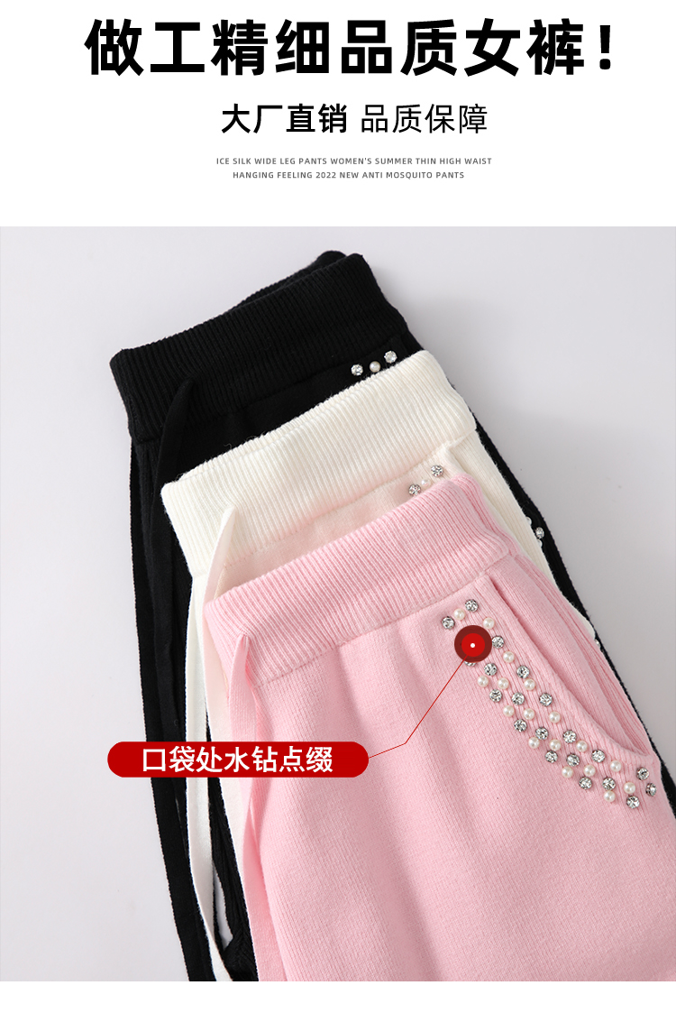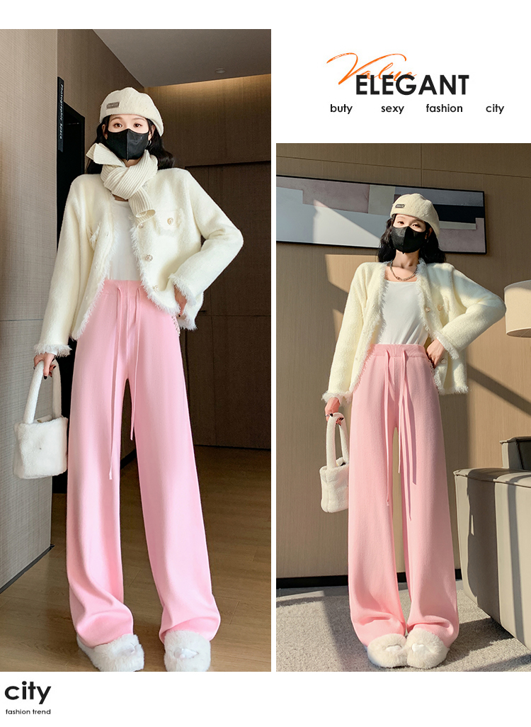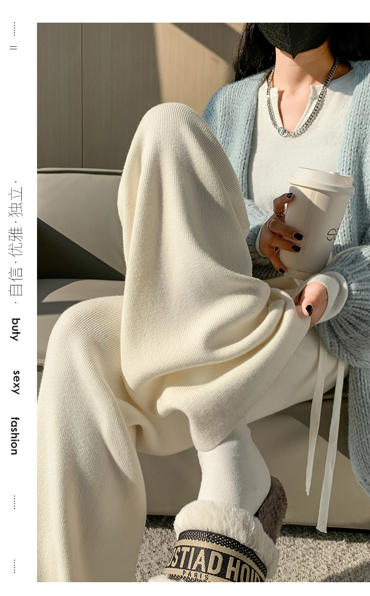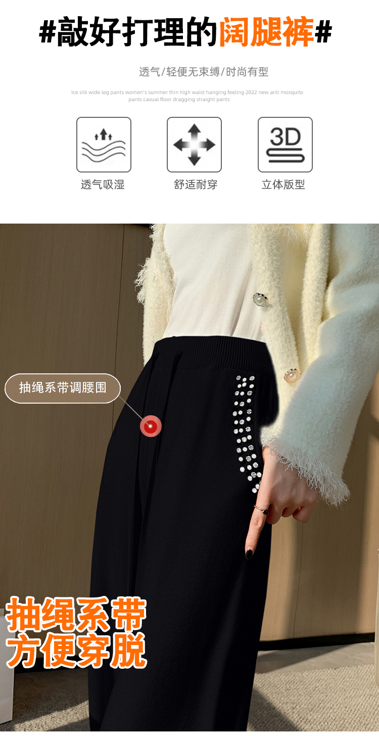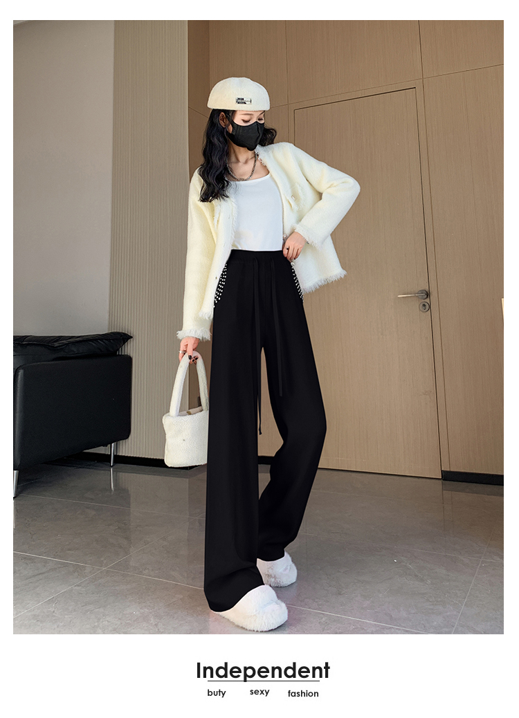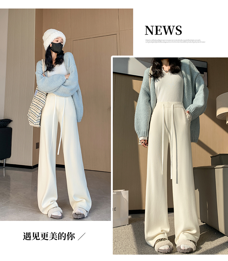 RM30932#新款时尚高腰重工手工钉珠高级感针织休闲直筒羊绒拖地裤