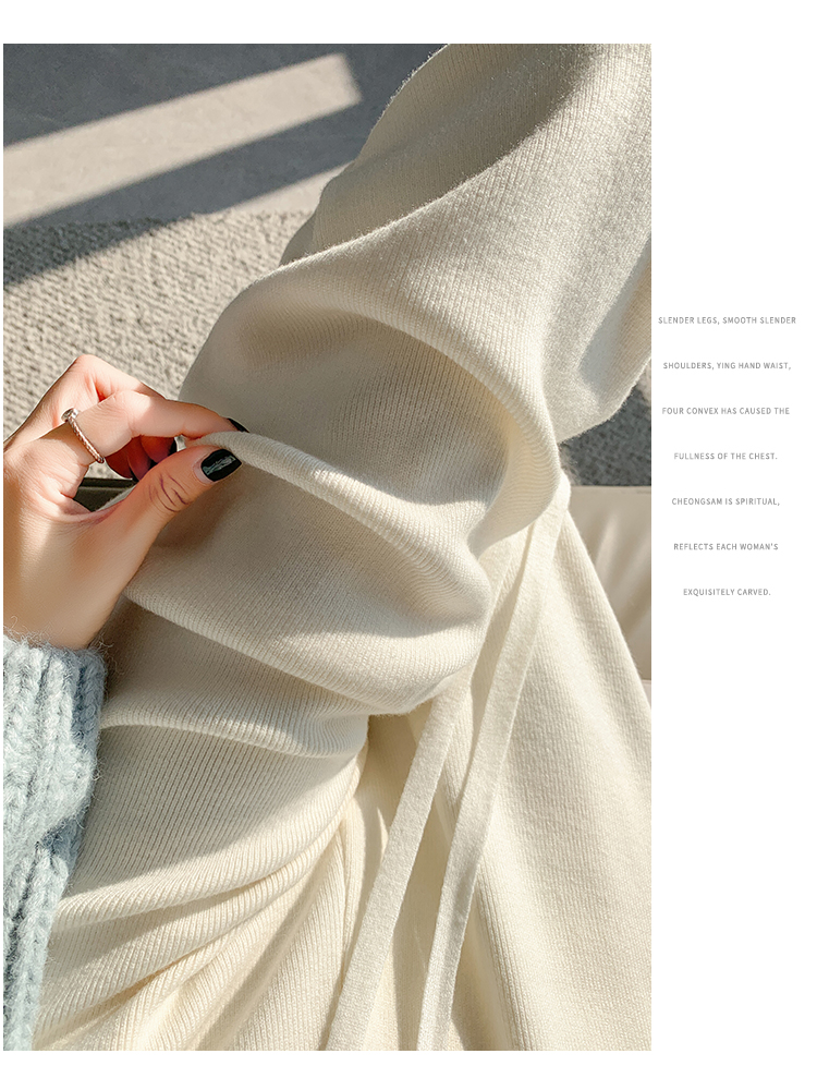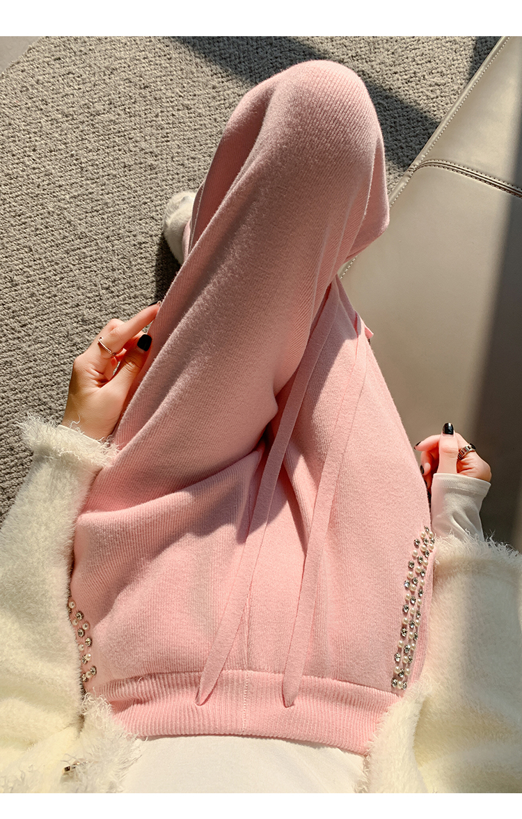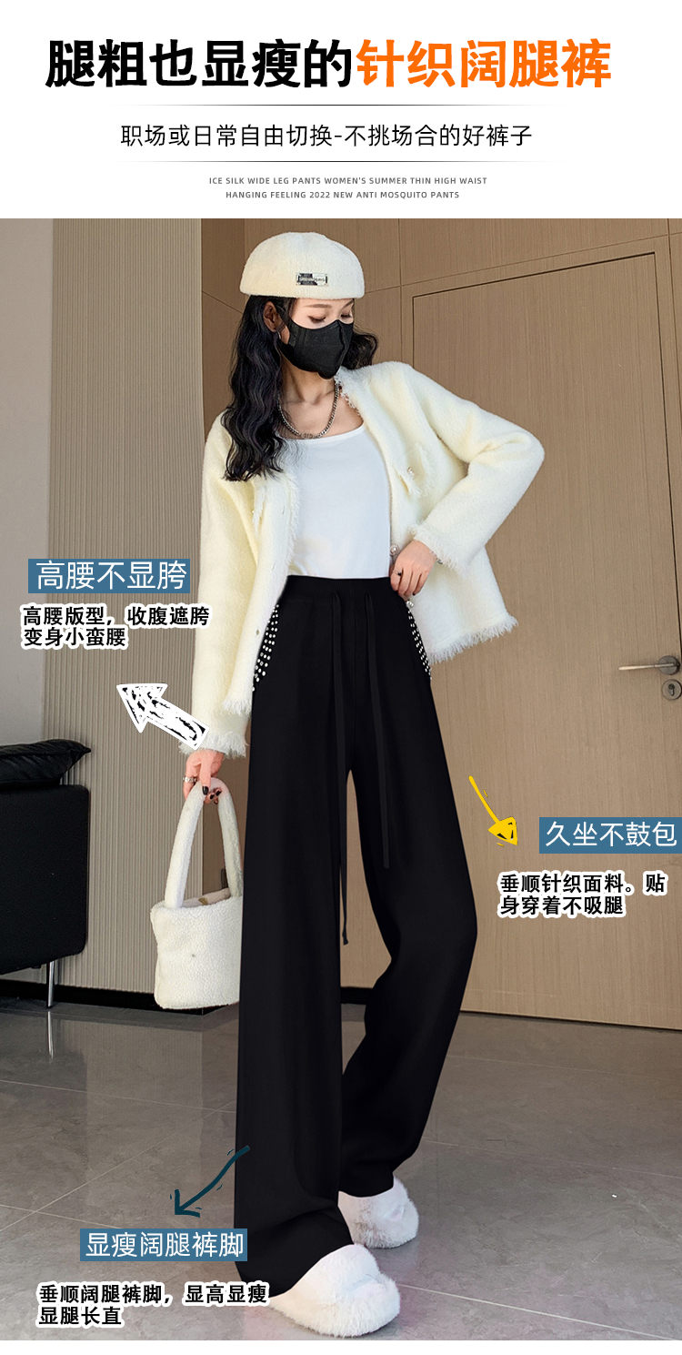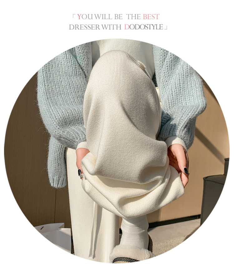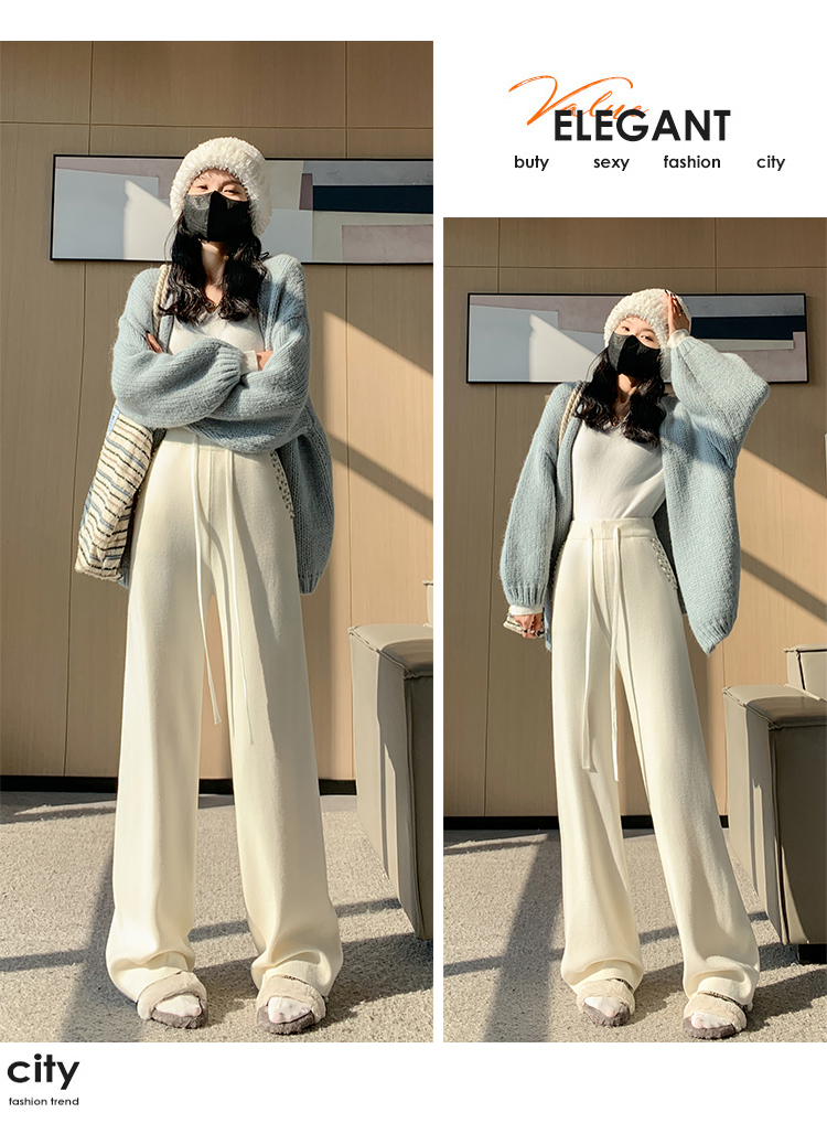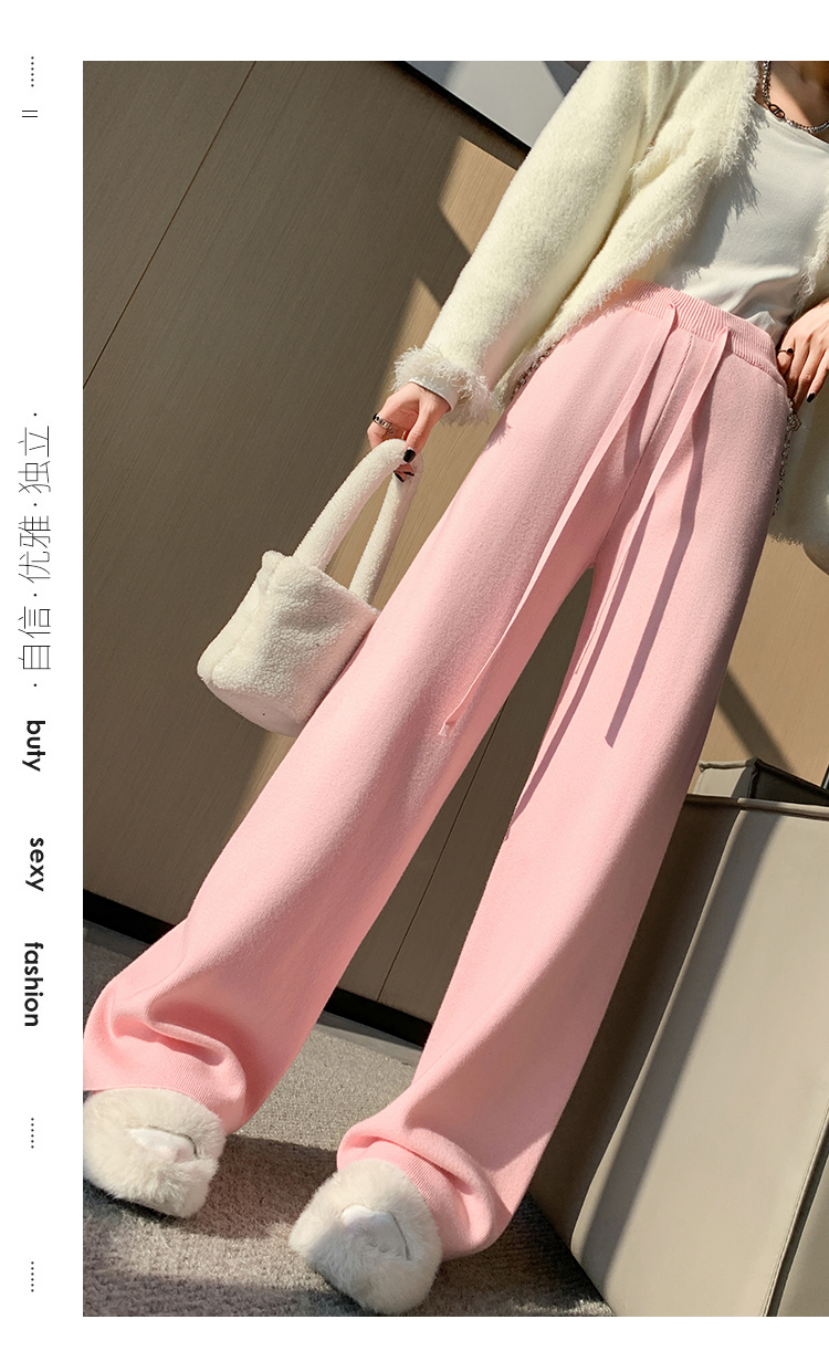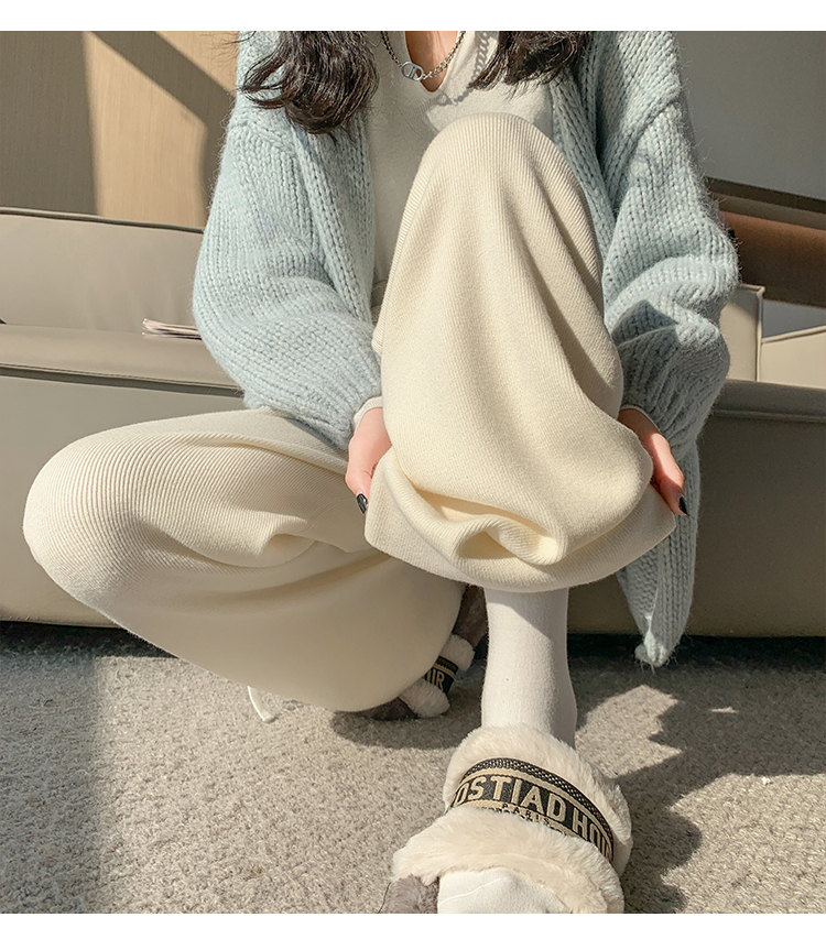 RM30932#新款时尚高腰重工手工钉珠高级感针织休闲直筒羊绒拖地裤