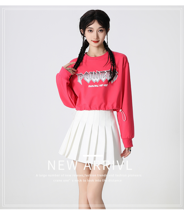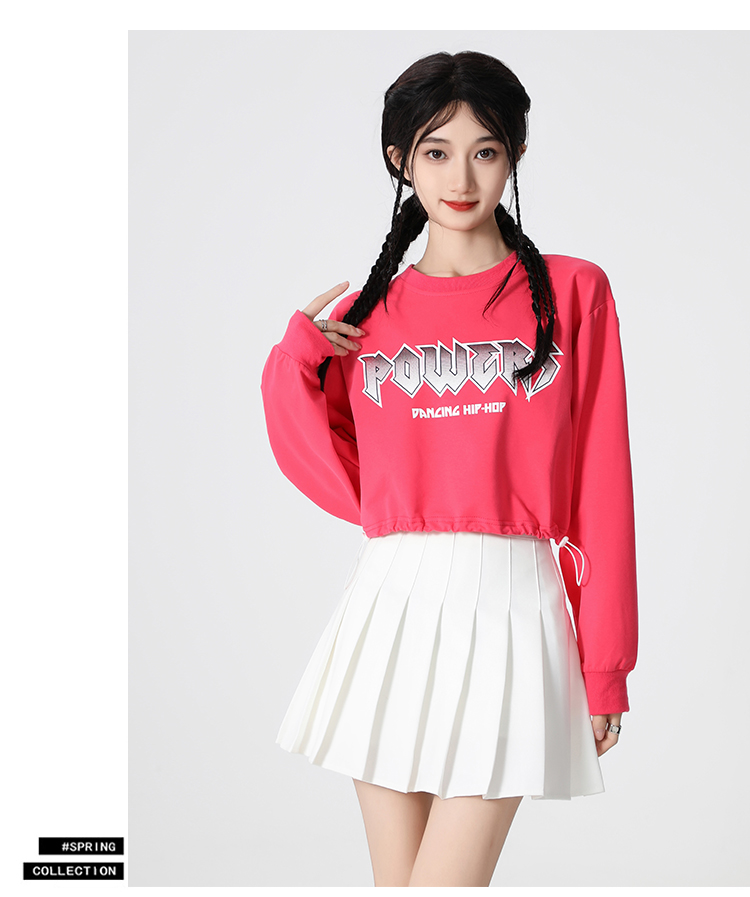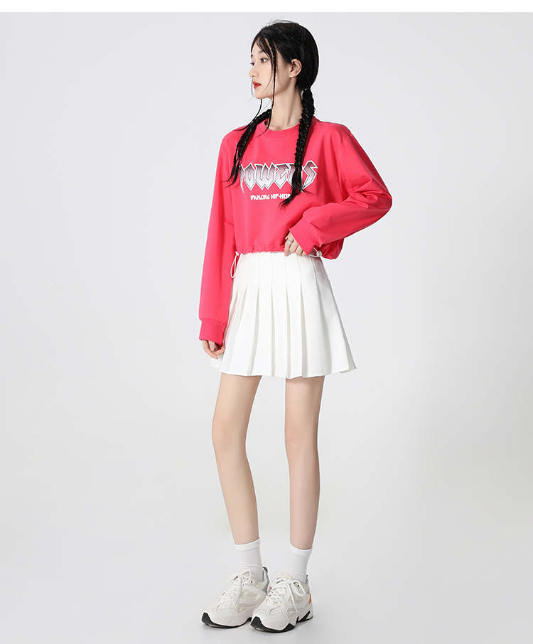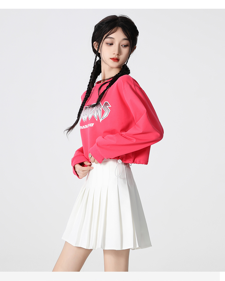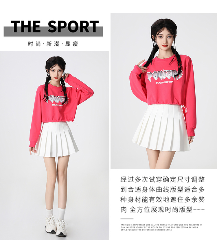 RM30971#抽绳系带短款卫衣春季新款长袖上衣百褶裙运动