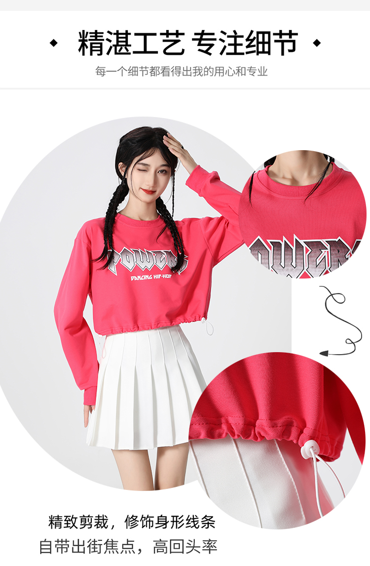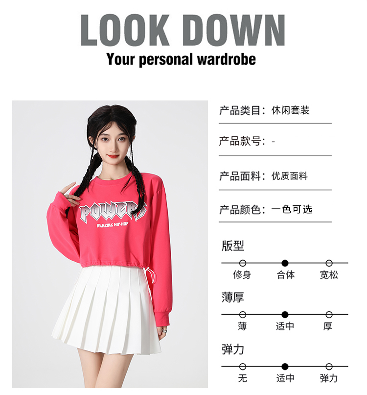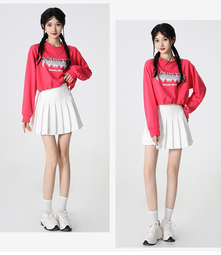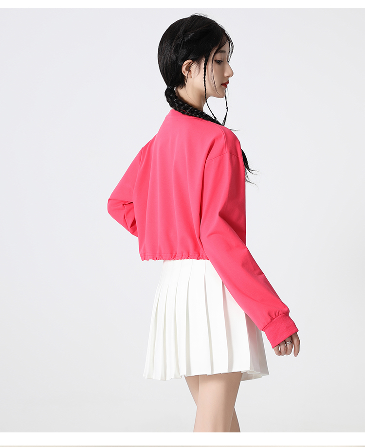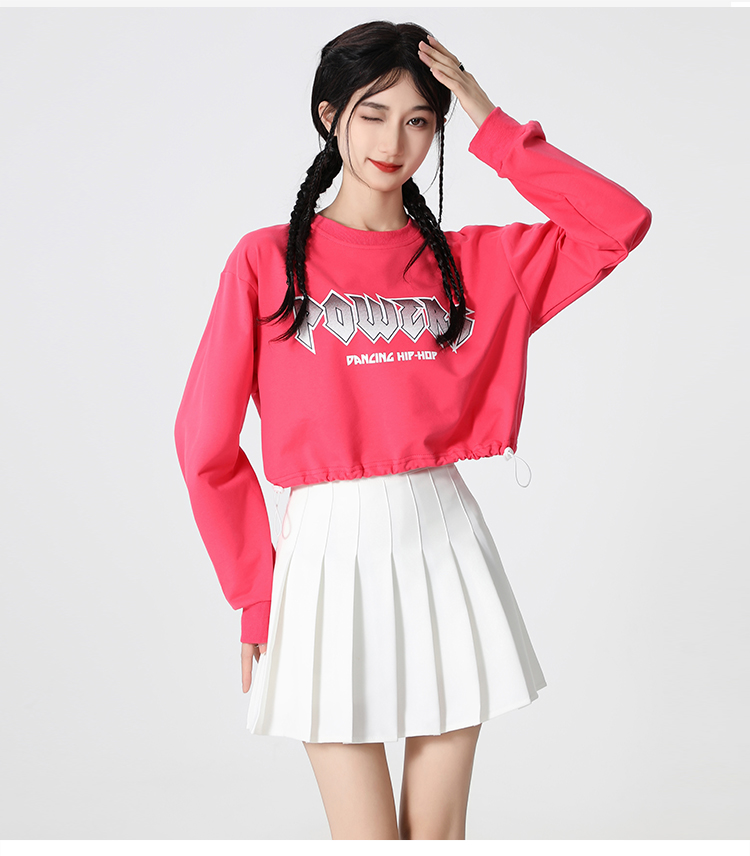 RM30971#抽绳系带短款卫衣春季新款长袖上衣百褶裙运动