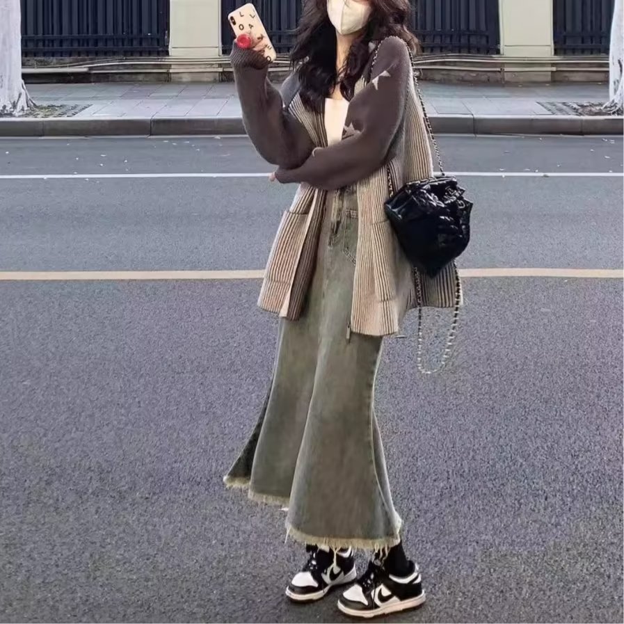 RM31009#新款高级感超好看毛衣外套时髦复古设计感半身裙女