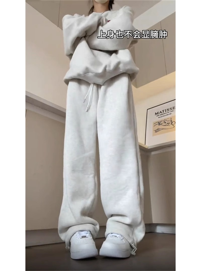 RM31020#羊羔绒白色裤子女2023新款秋冬款棉裤加绒加厚卫裤运动休闲阔腿裤