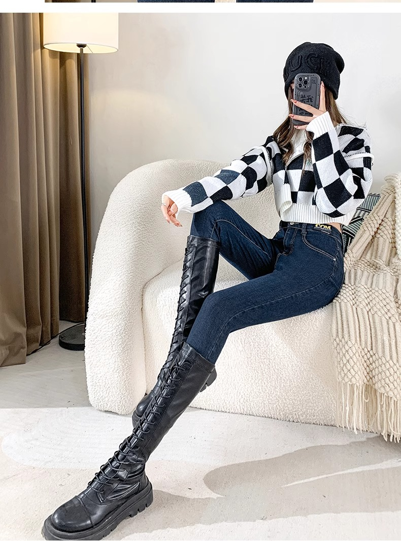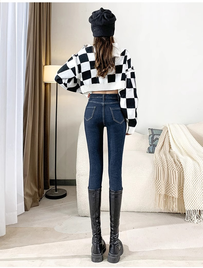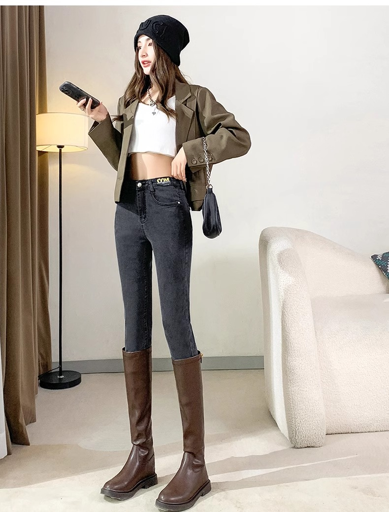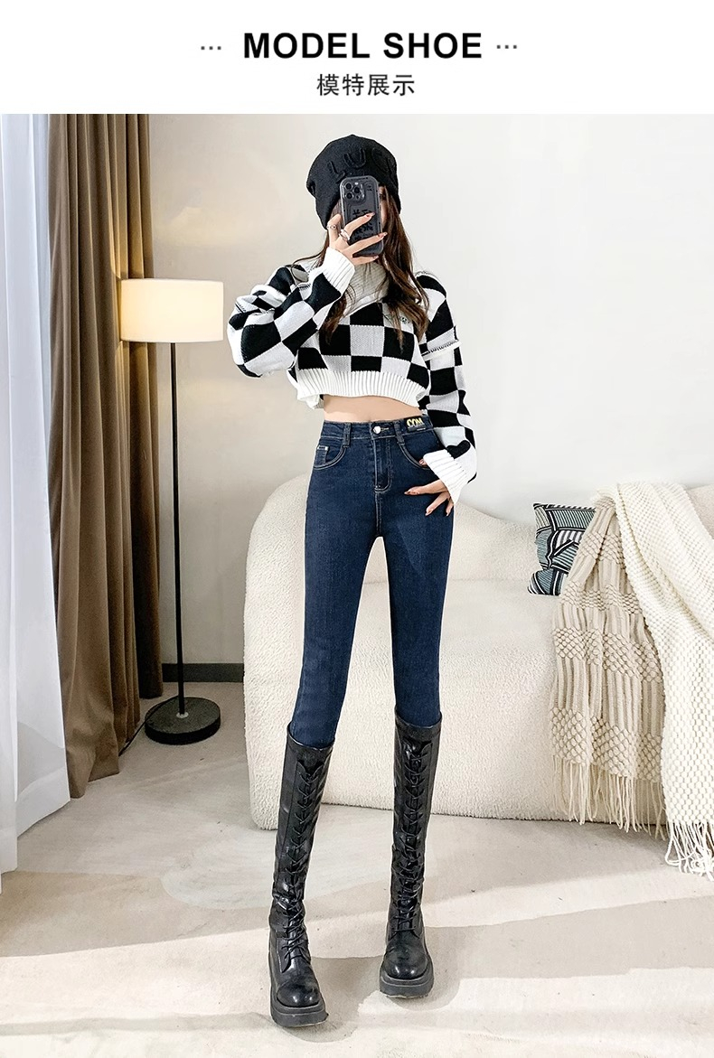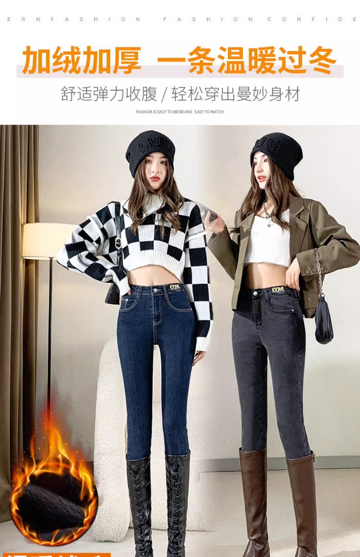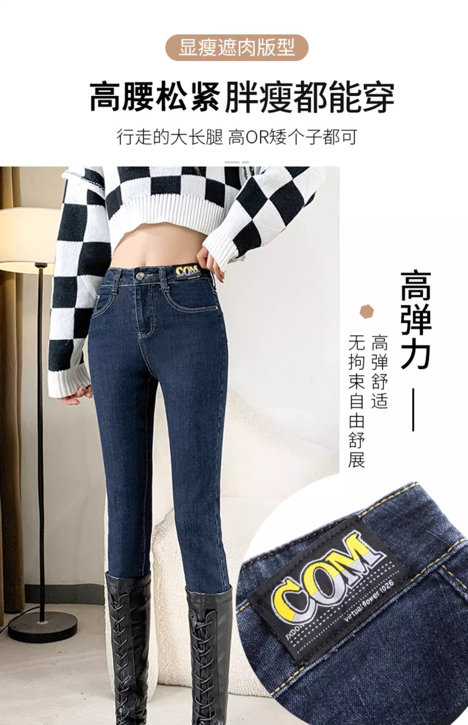 RM31026#新加绒牛仔裤女高腰秋装修身显瘦紧身小个子小脚裤女子冬