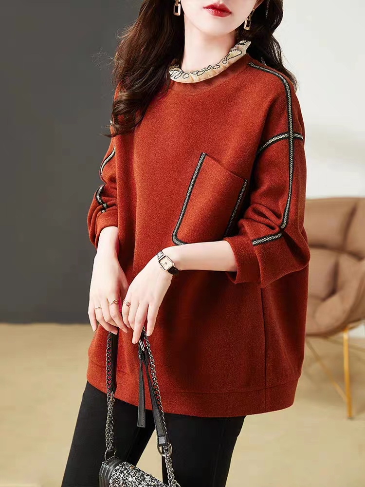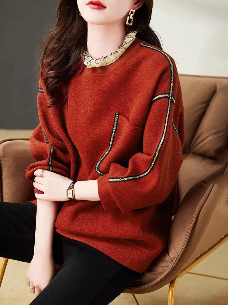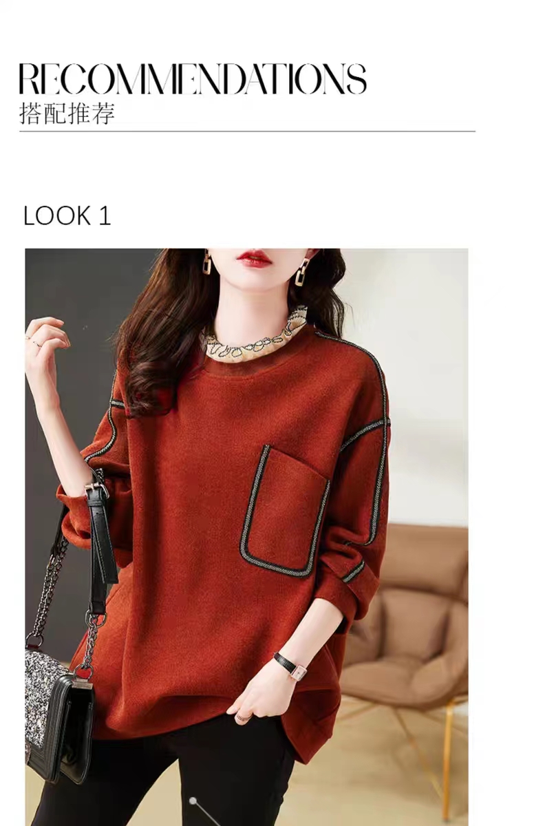 RM31095#红色假两件卫衣女春秋加厚2023新款高端欧货宽松大码时尚洋气上衣