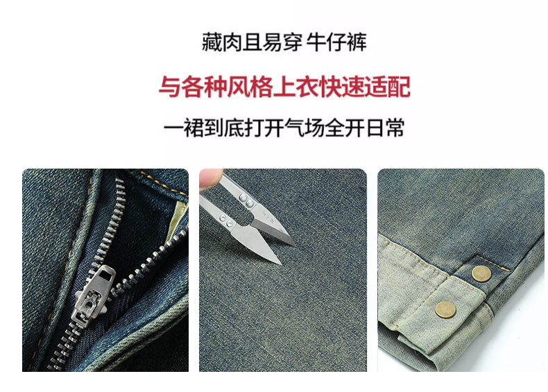 复古蓝九分裤加绒