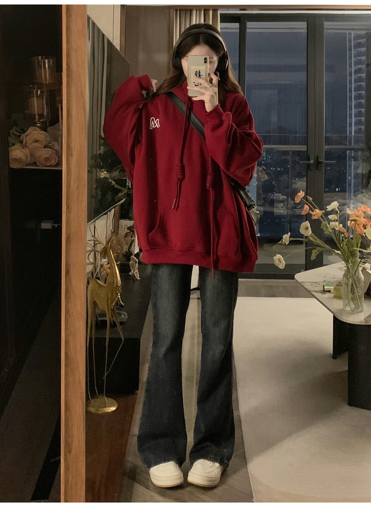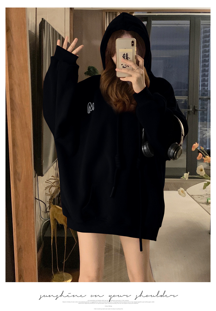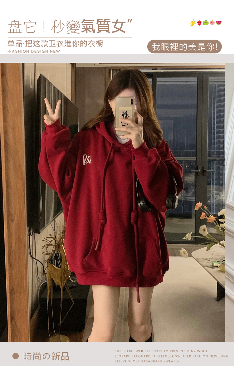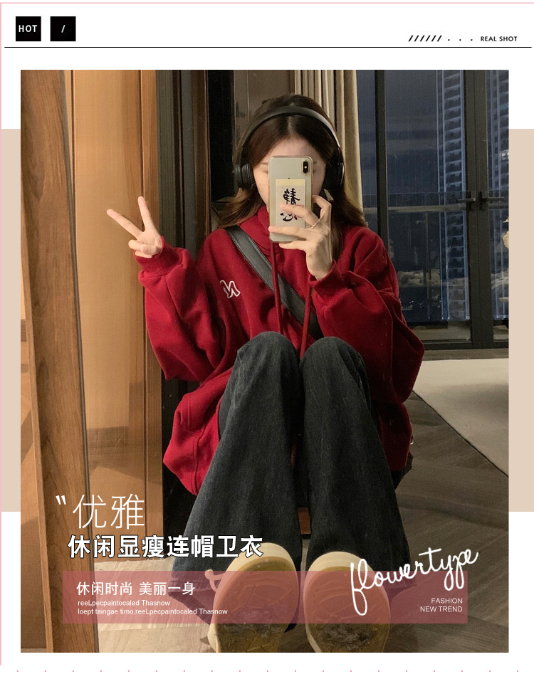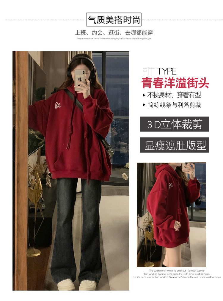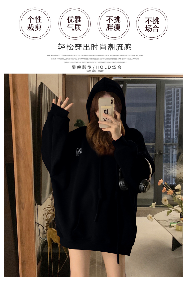 RM31110#大码胖MM设计感小众慵懒风宽松显瘦长袖连帽卫衣高品质