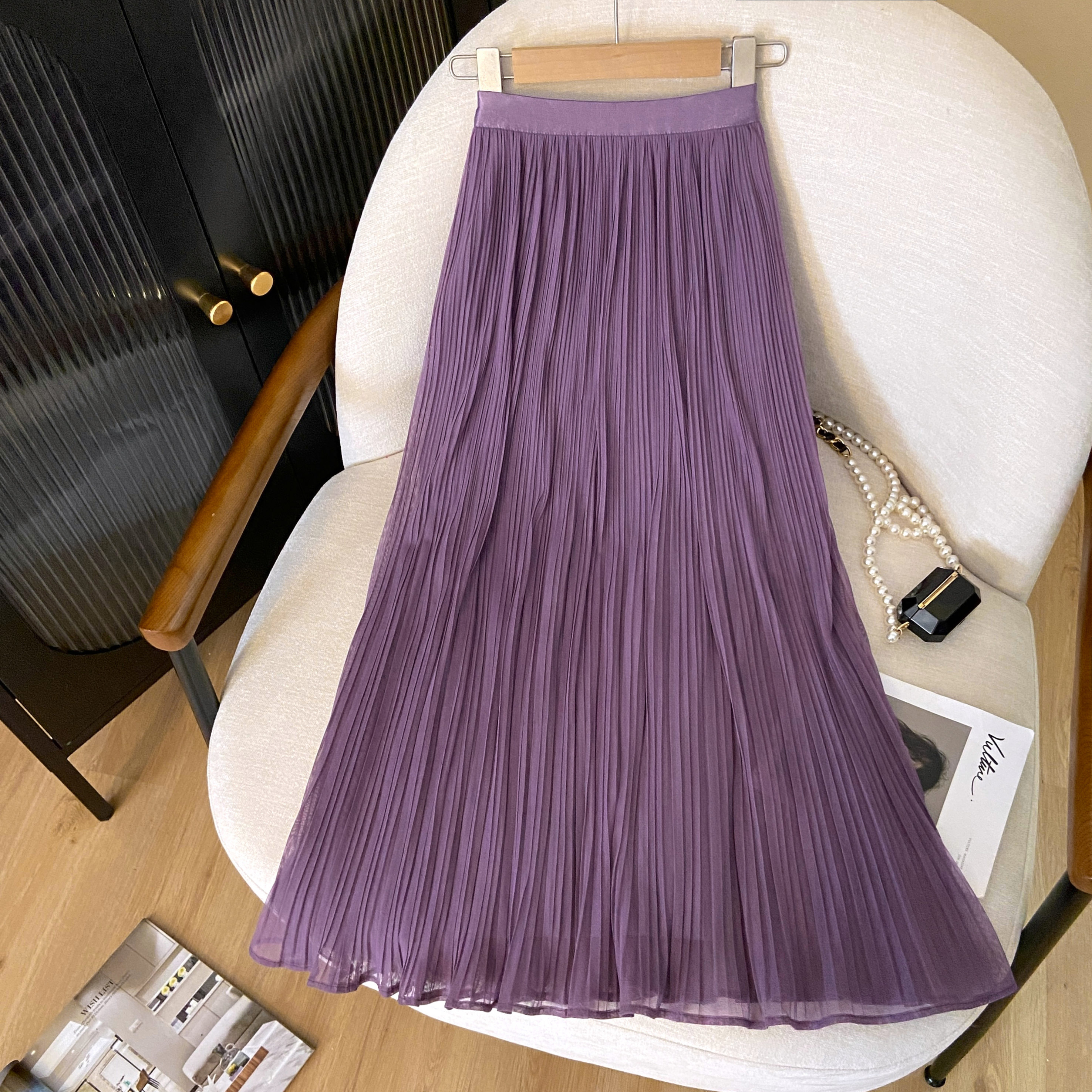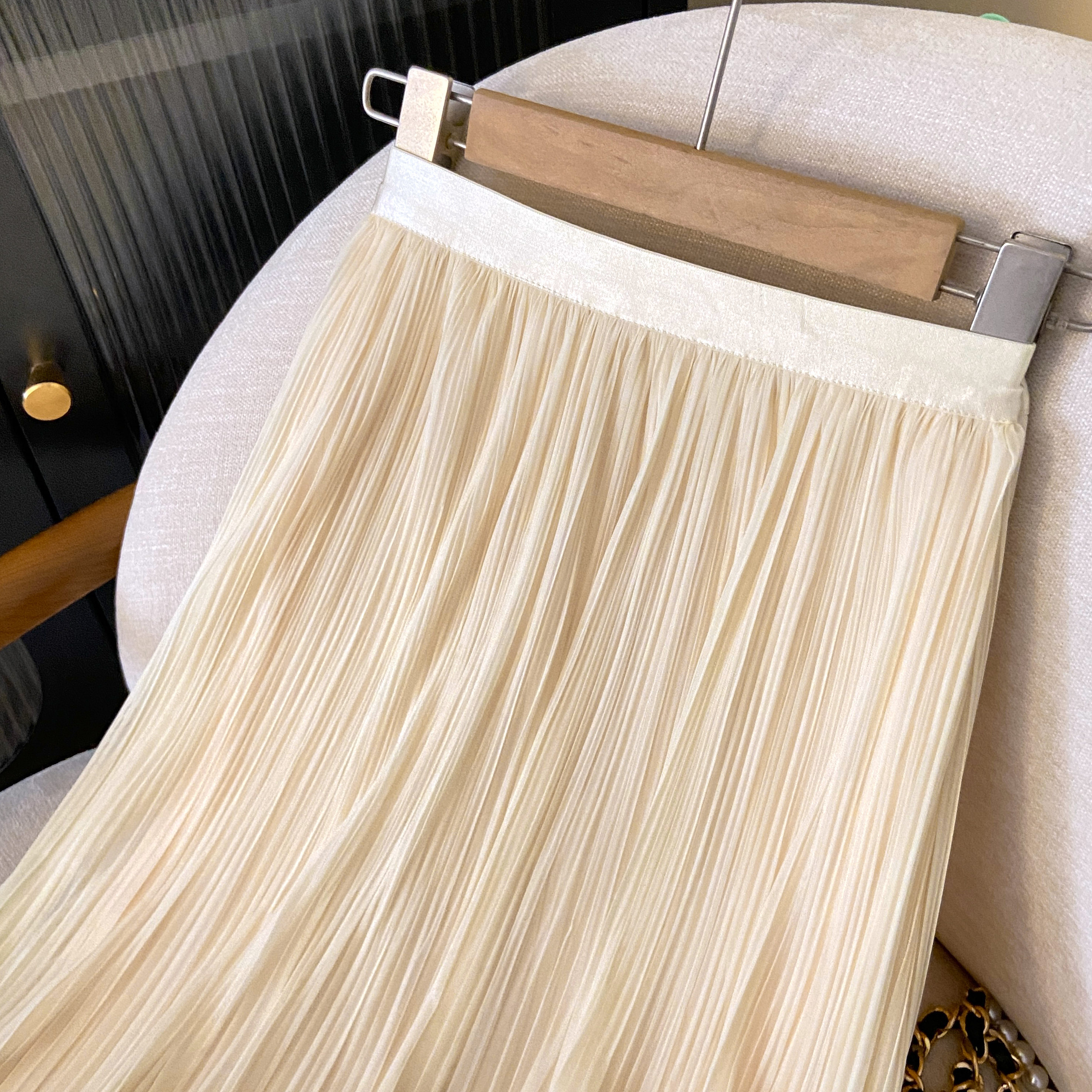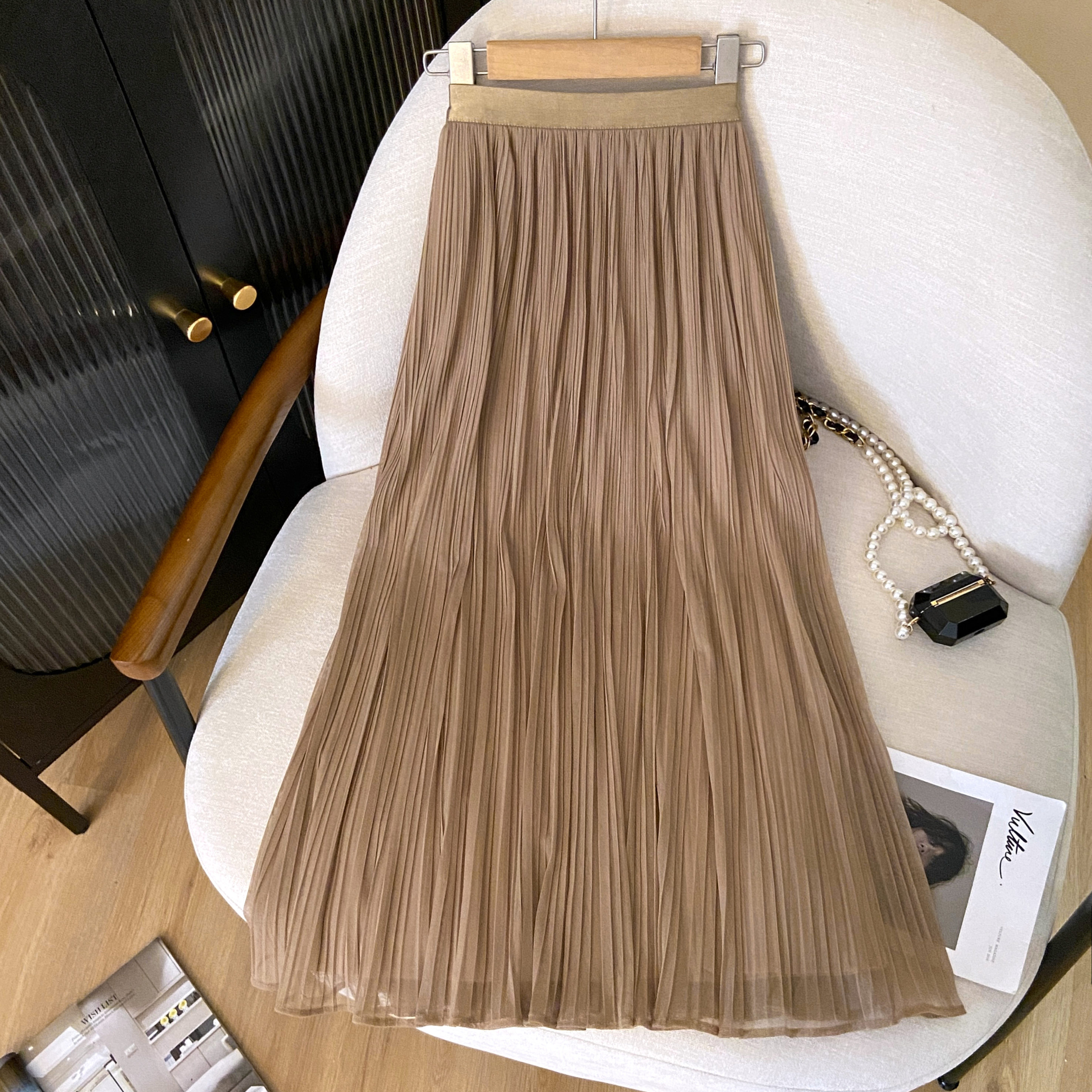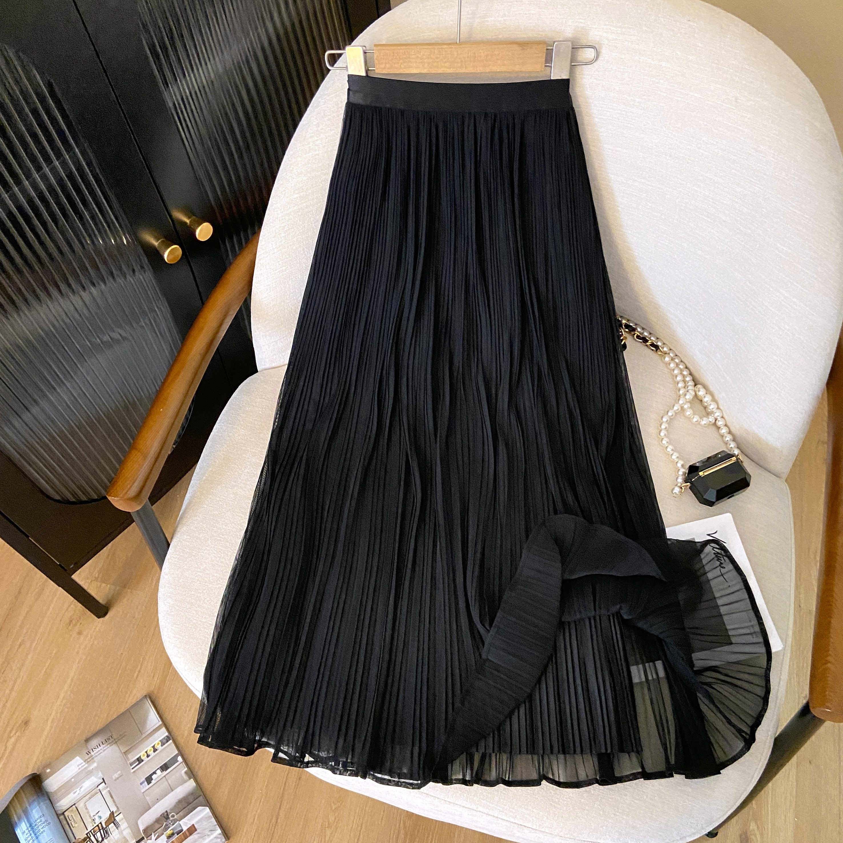 RM31188#新网纱半身裙女春季高腰显瘦小个子中长款仙女大摆A字百褶裙