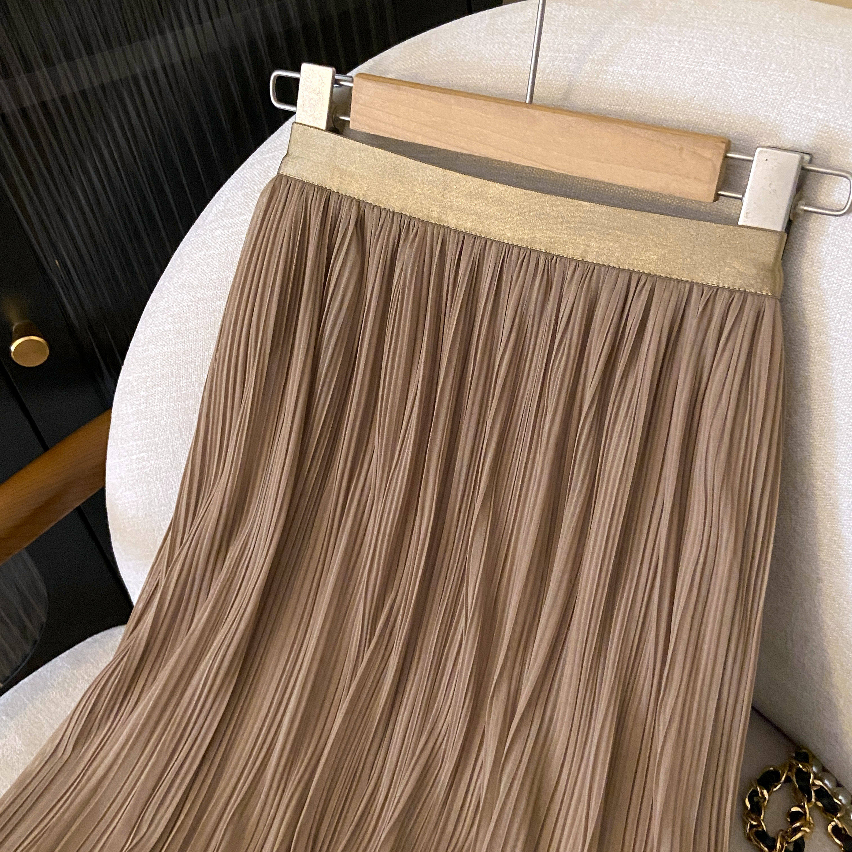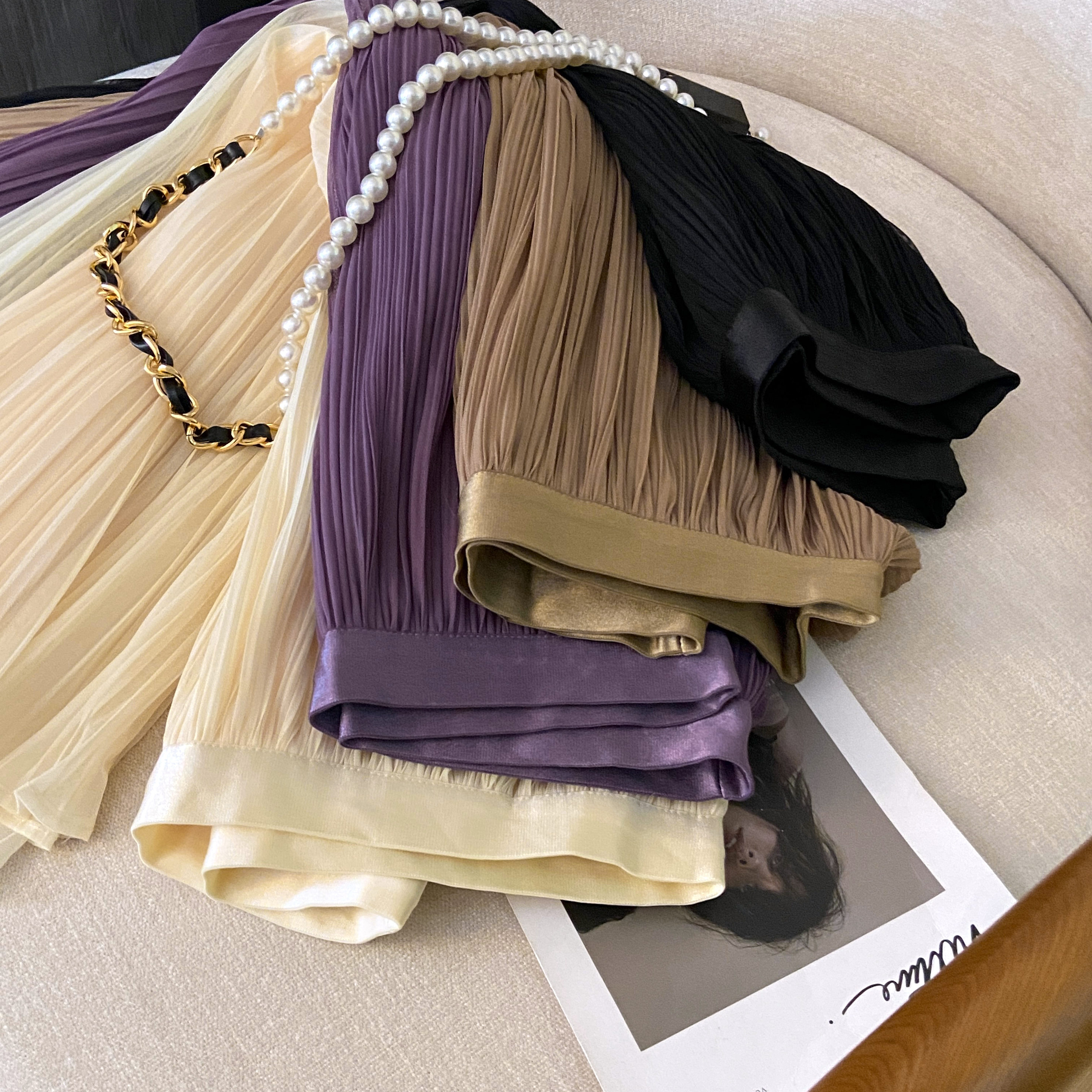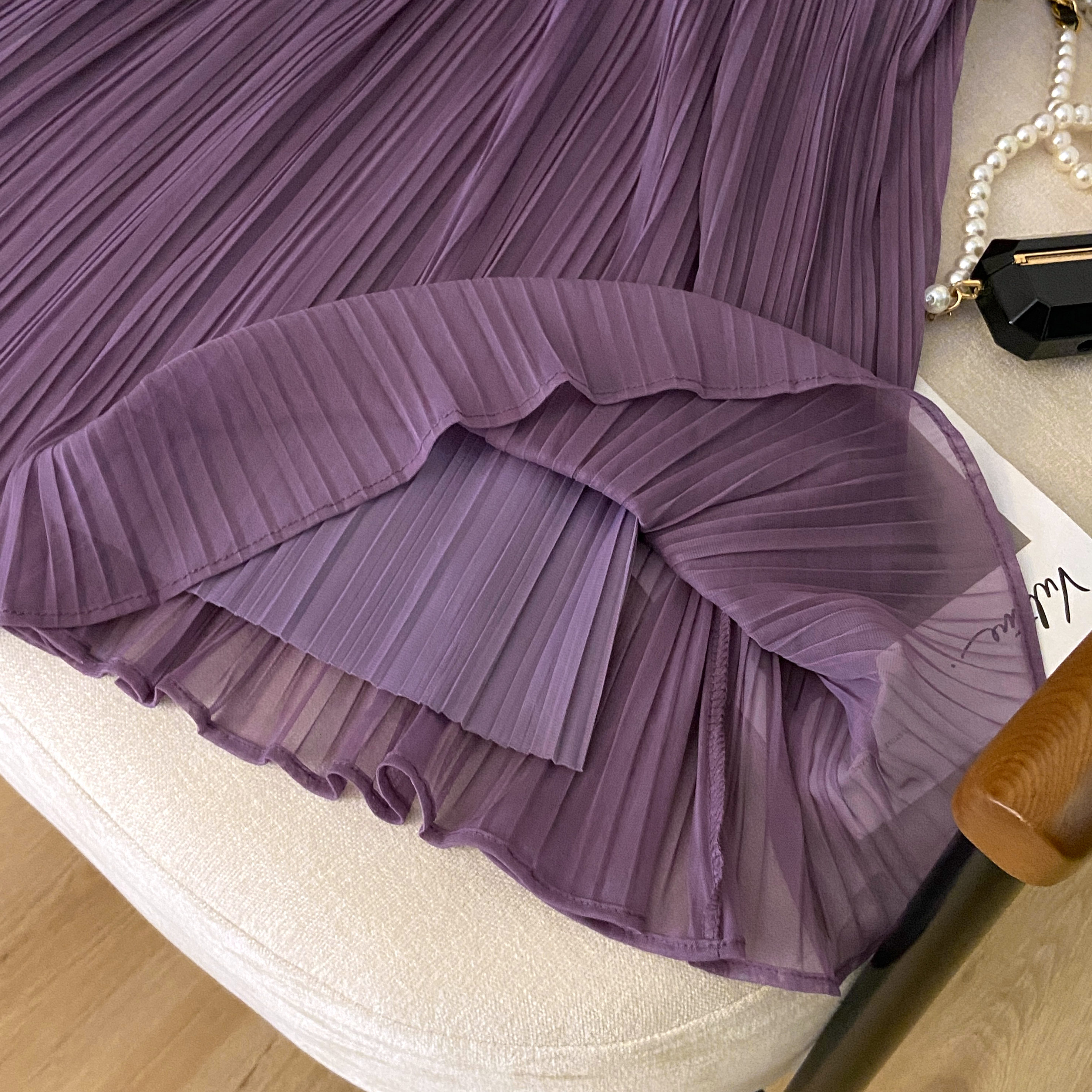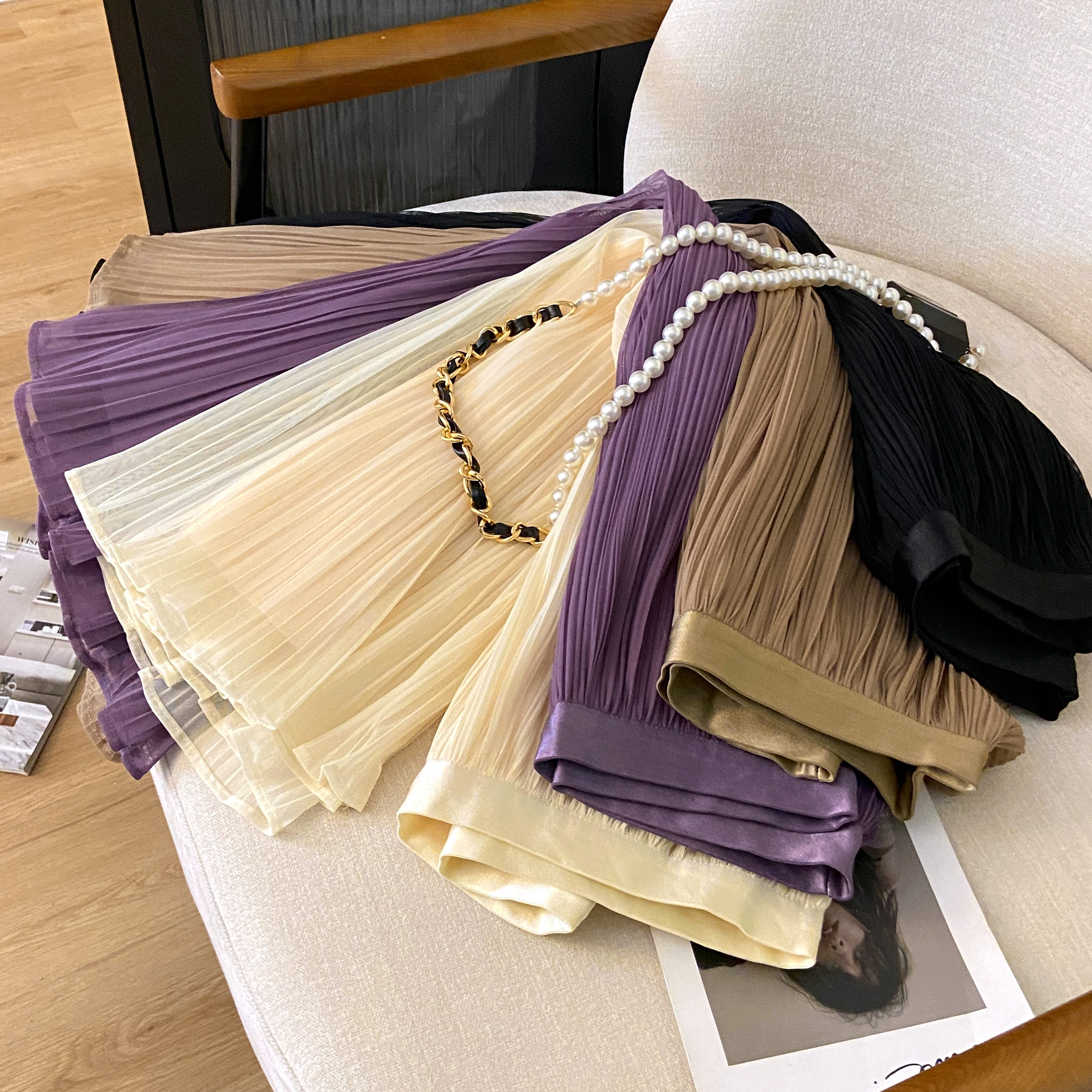 RM31188#新网纱半身裙女春季高腰显瘦小个子中长款仙女大摆A字百褶裙