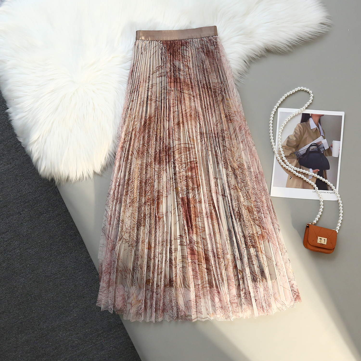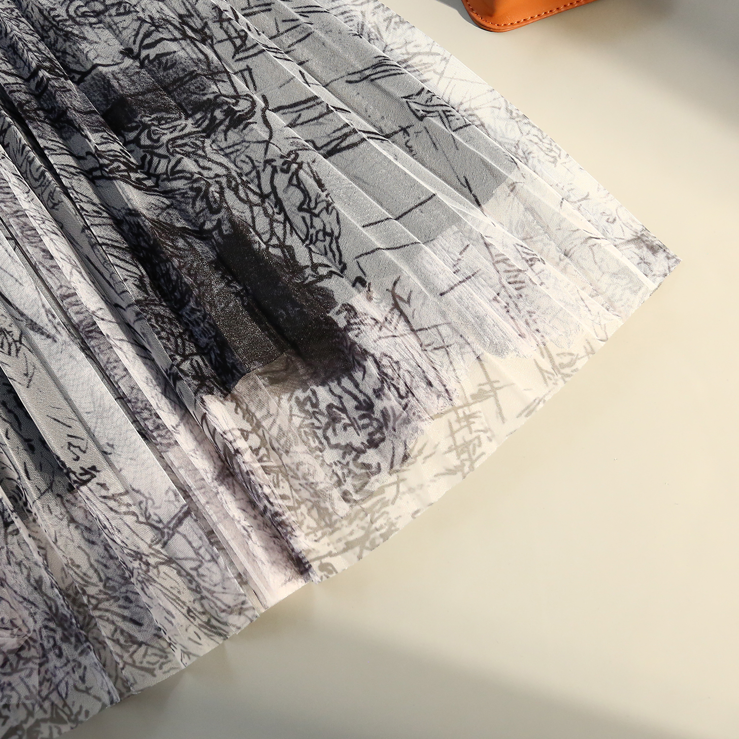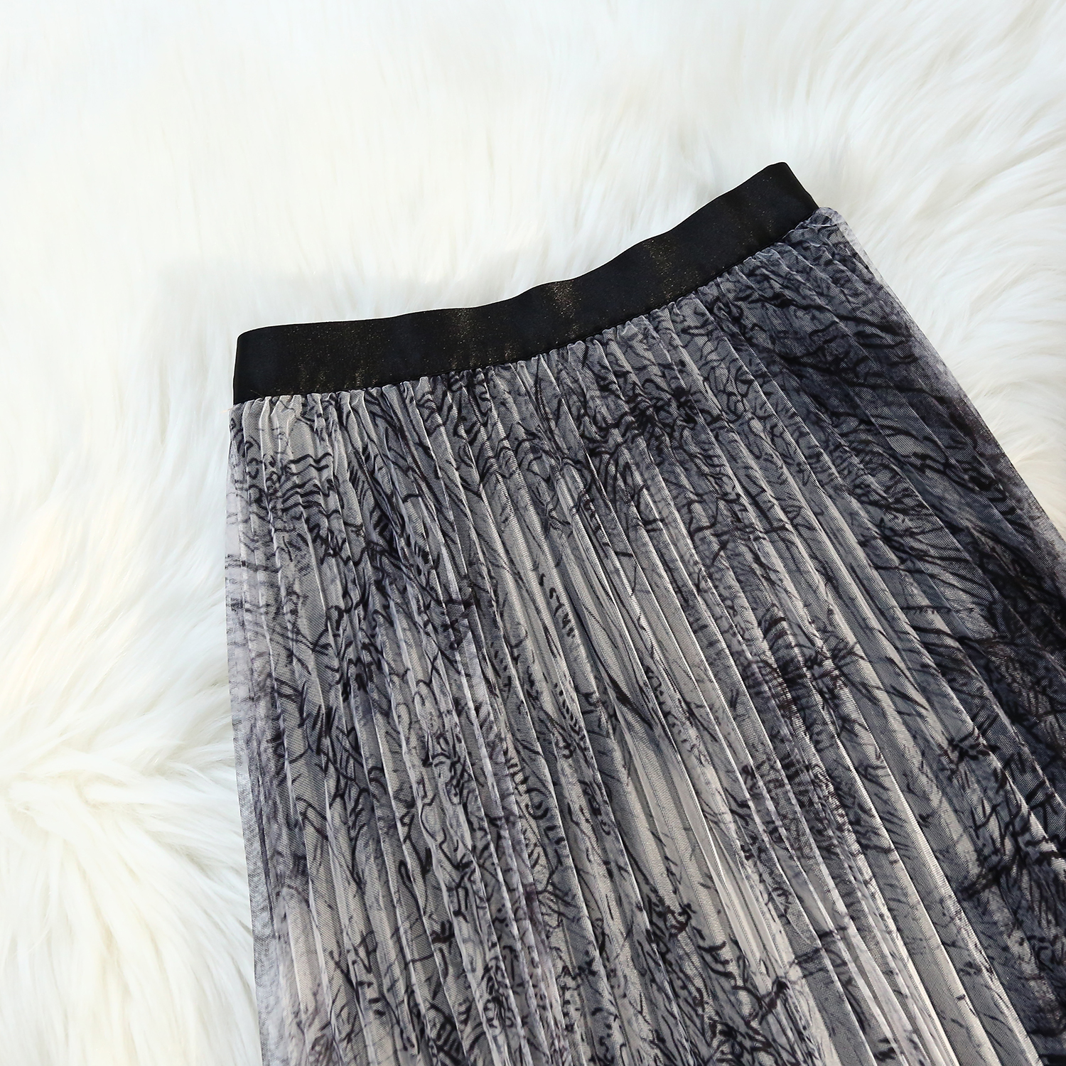 RM31192#印花水墨画网纱百褶中高腰百搭显瘦名媛淑女半身裙