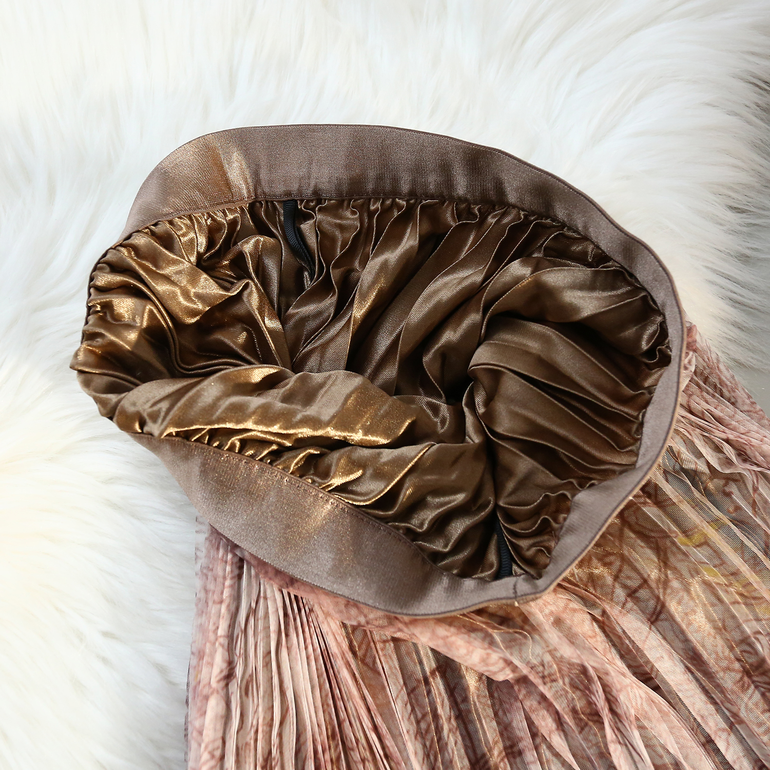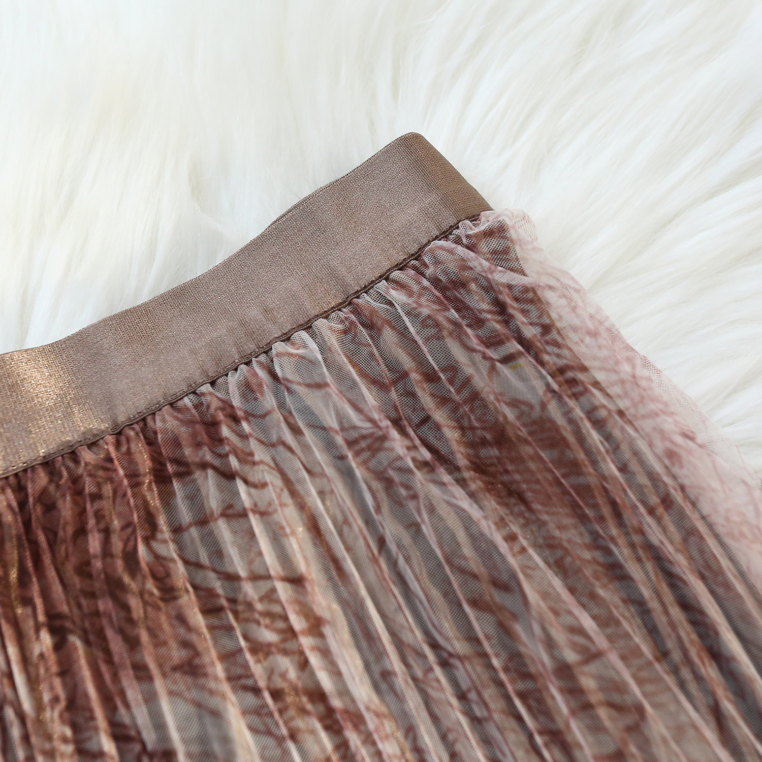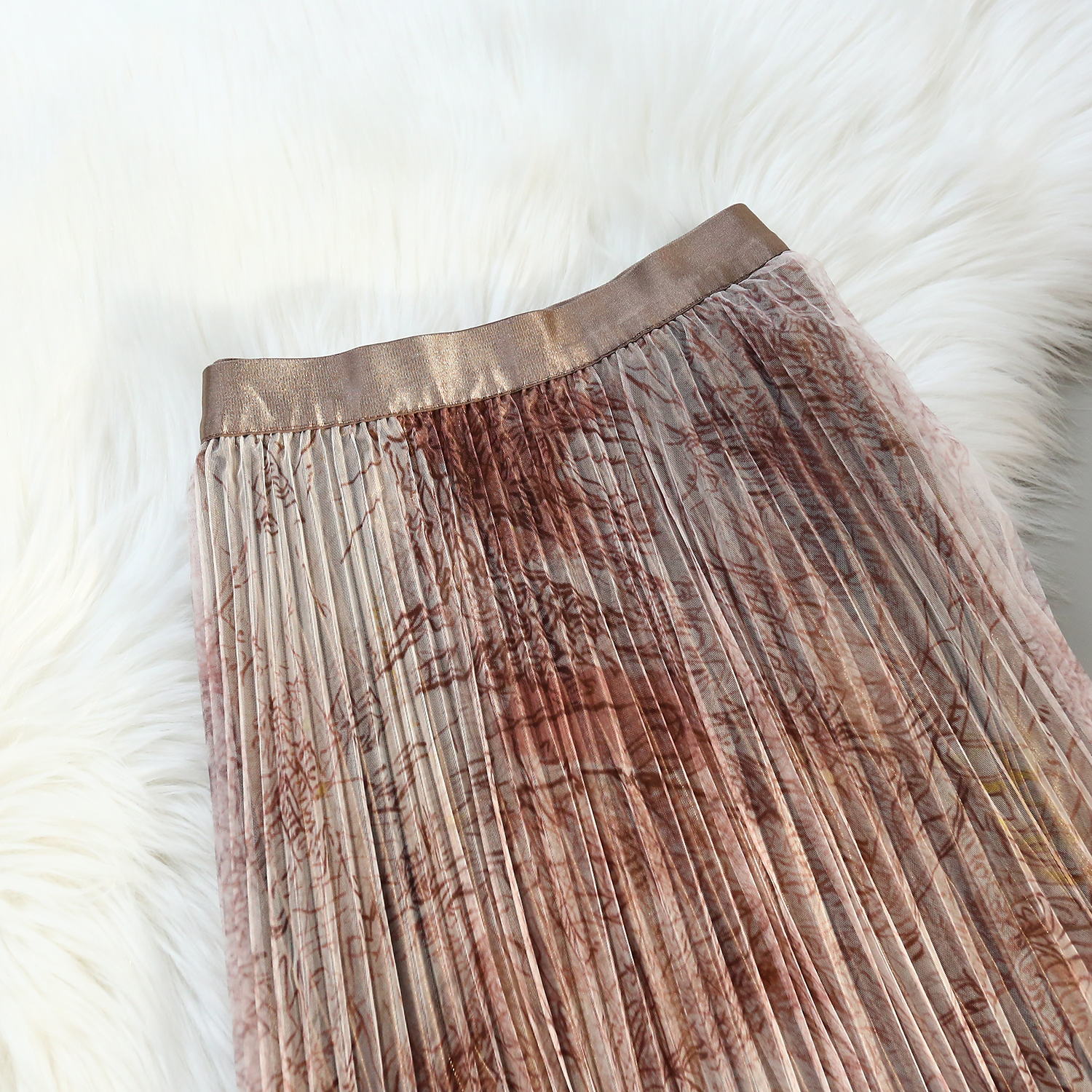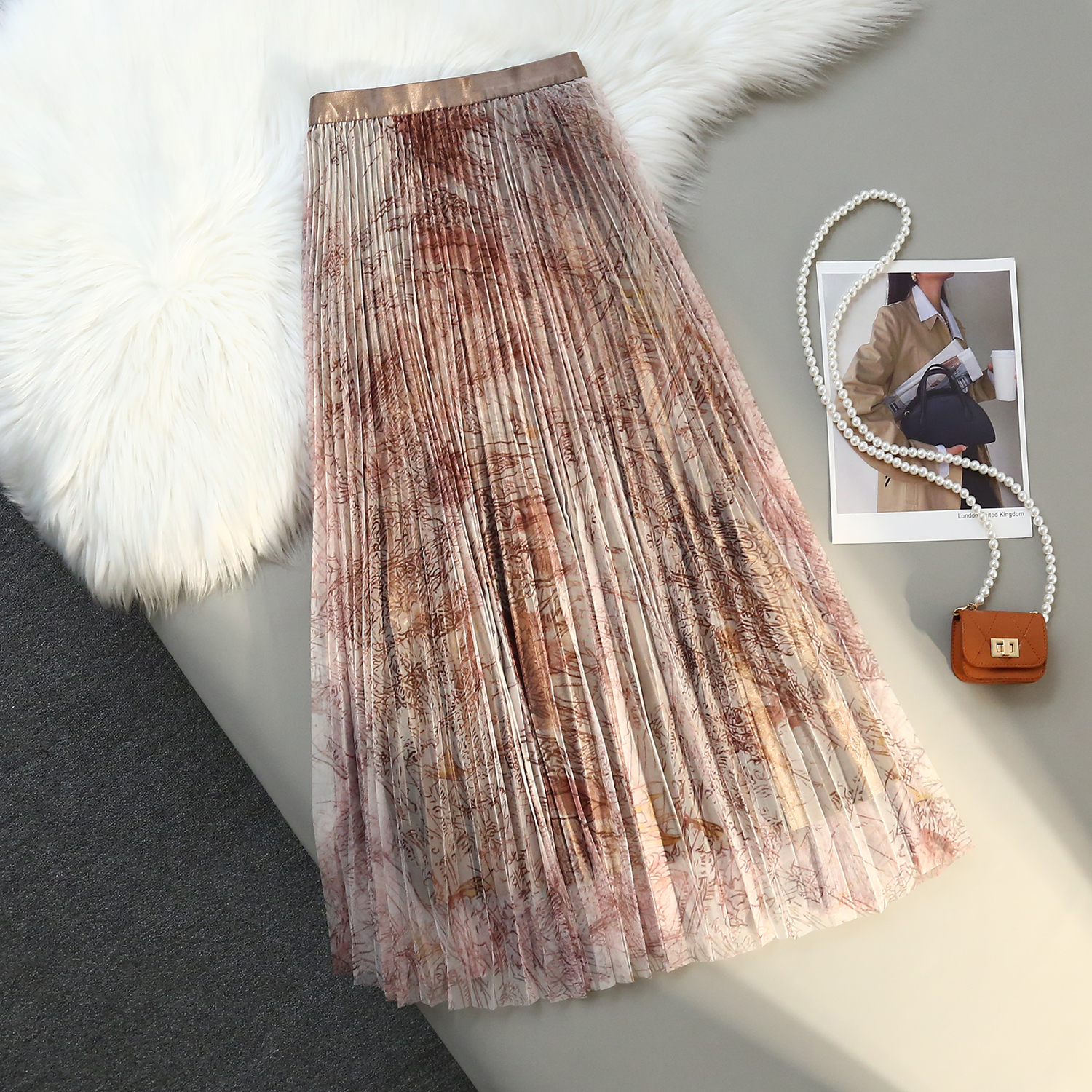 RM31192#印花水墨画网纱百褶中高腰百搭显瘦名媛淑女半身裙