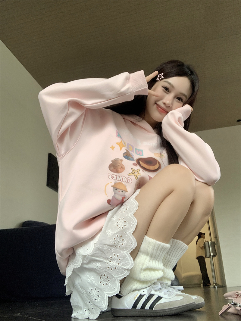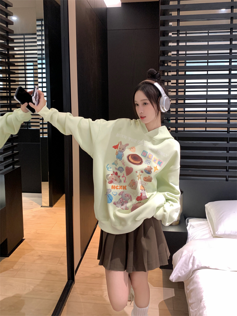 RM31223#美式趣味连帽卫衣休闲帽衫外套上衣
