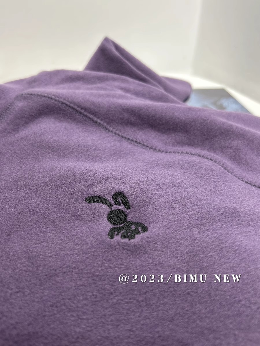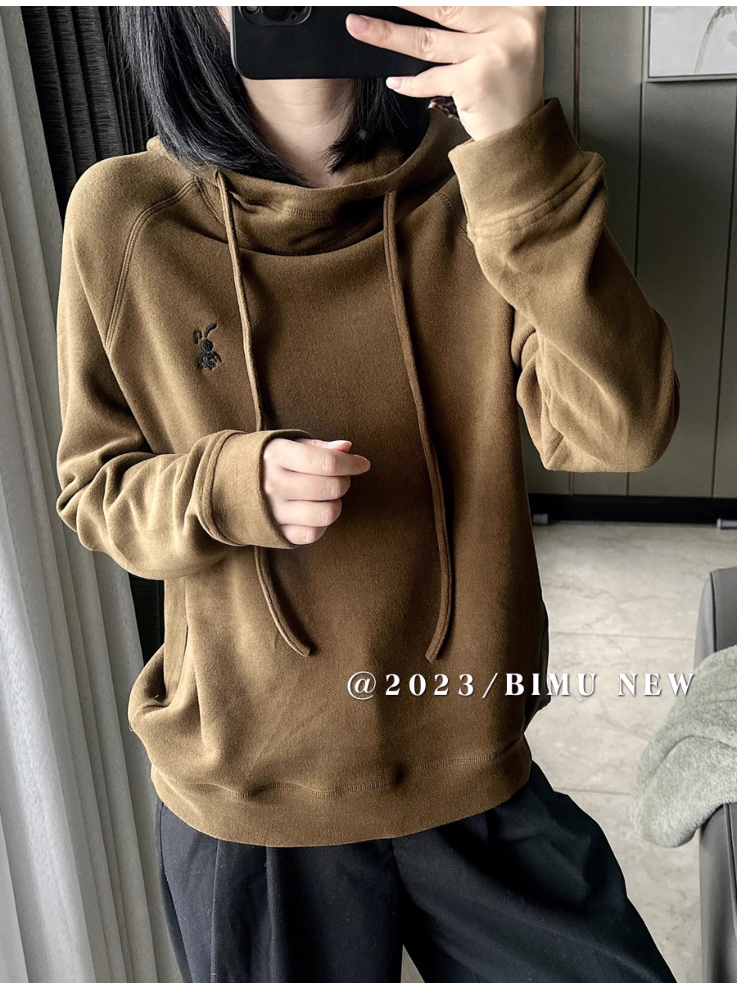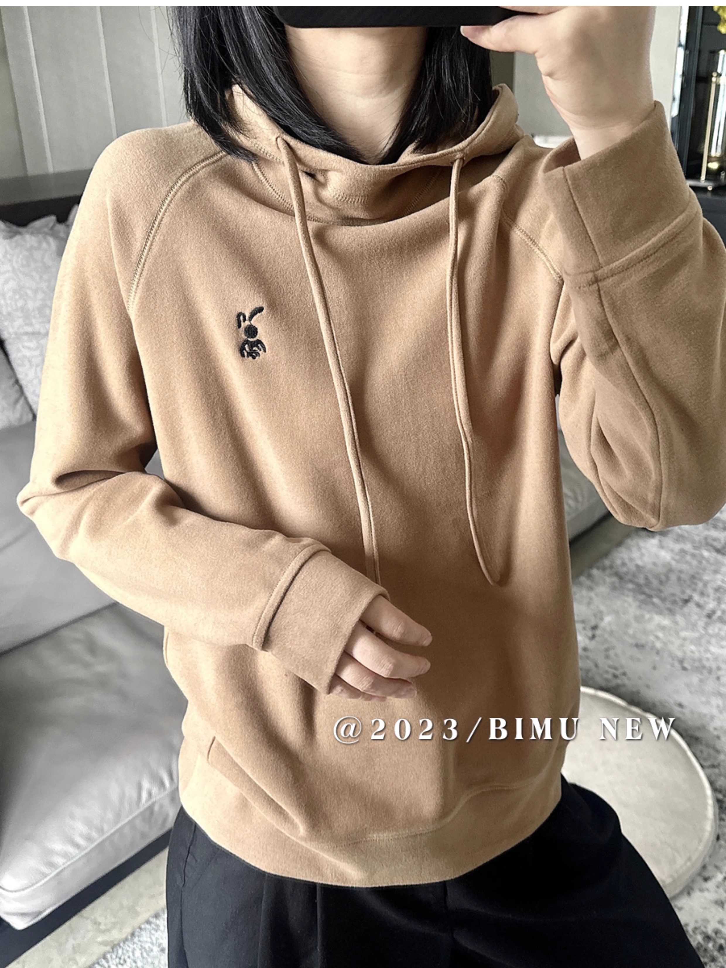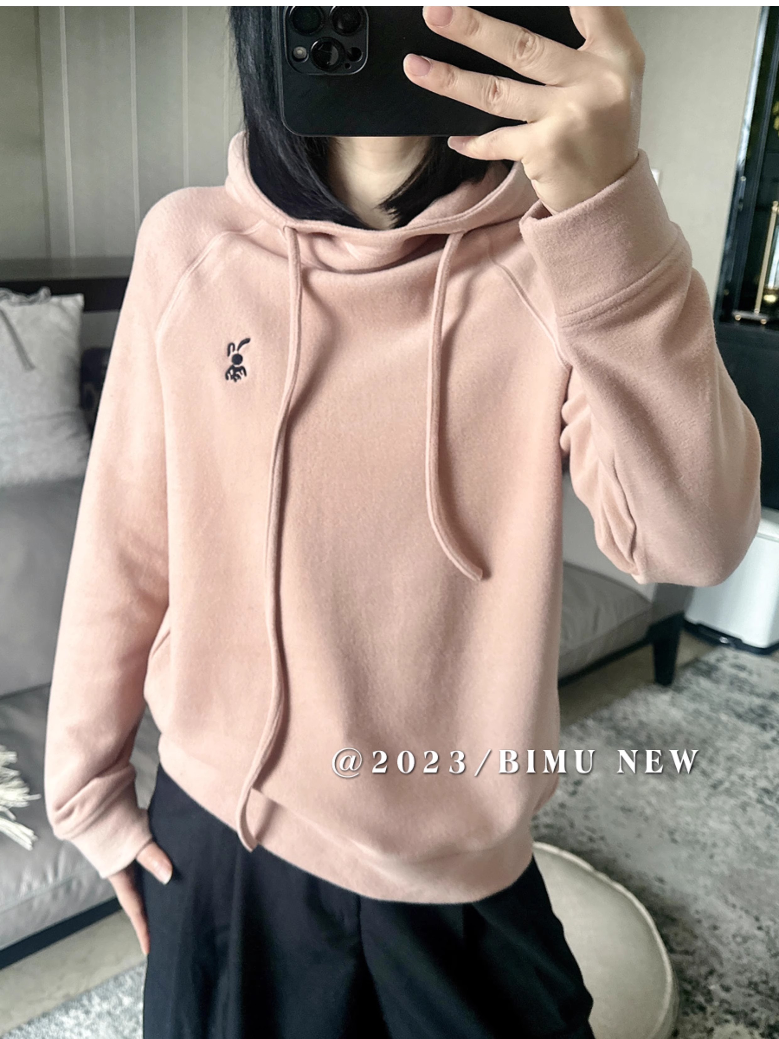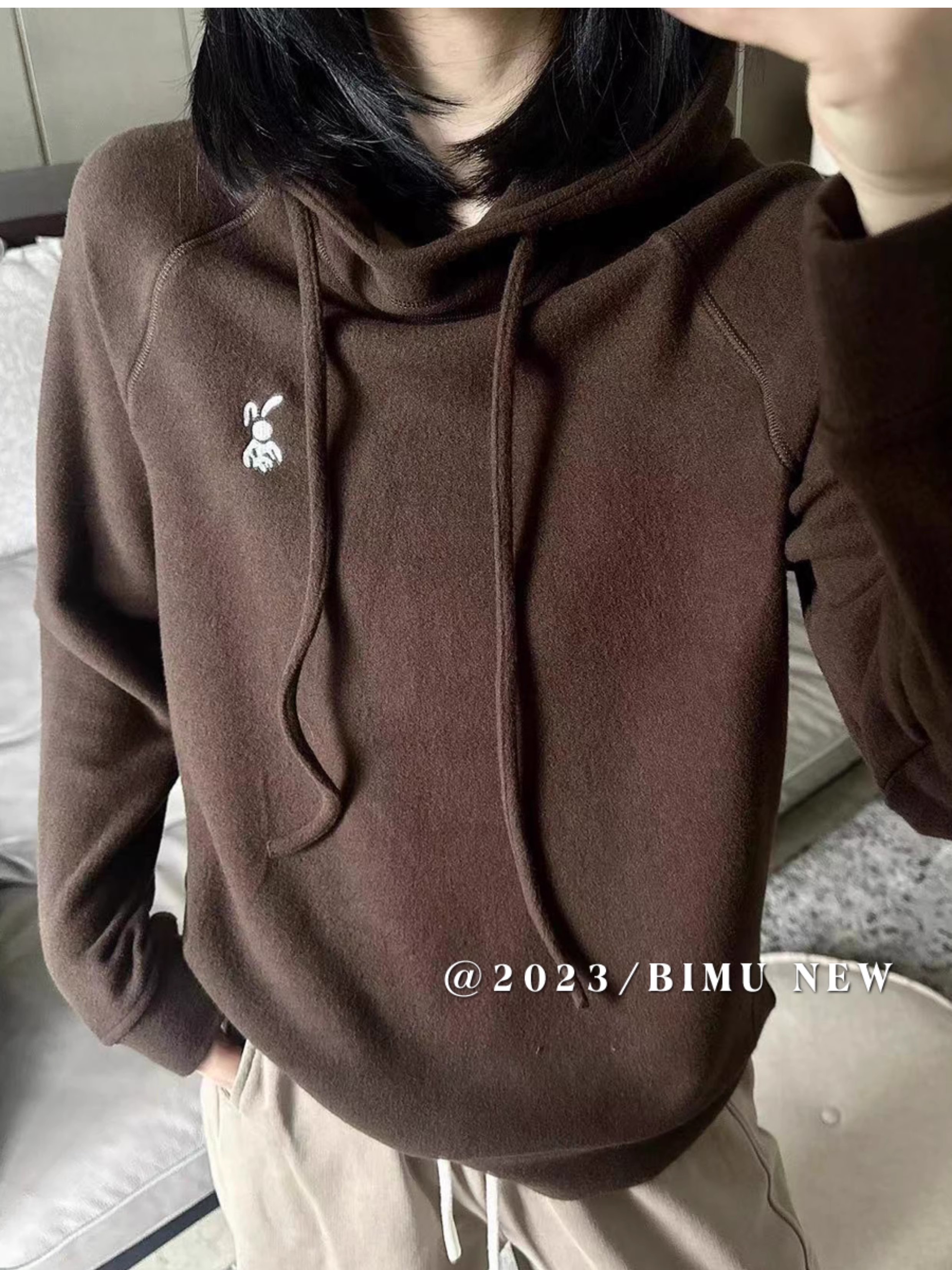 RM31269#美式复古风小兔刺绣抽绳连帽双面德绒卫衣女秋冬保暖内搭打底衫潮