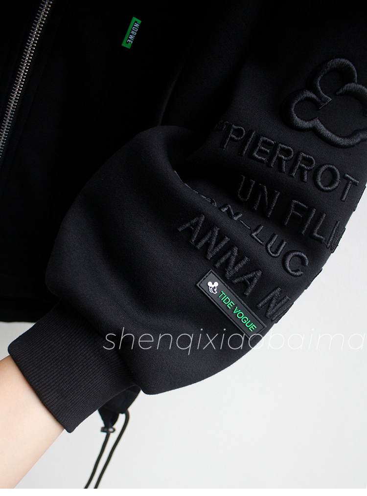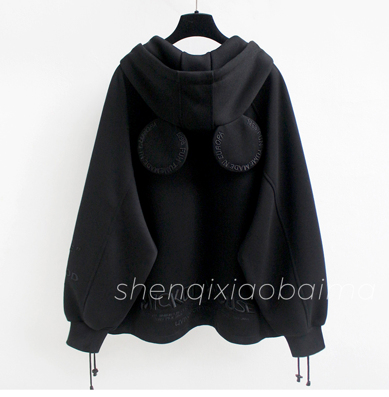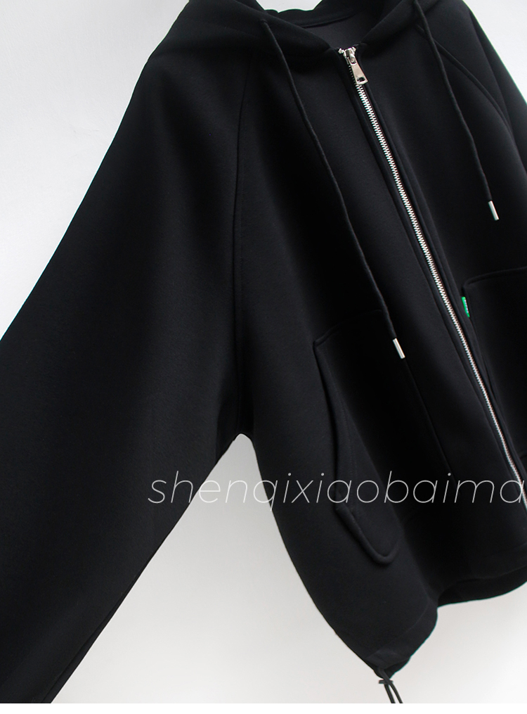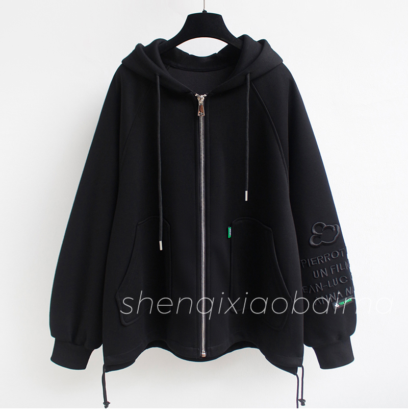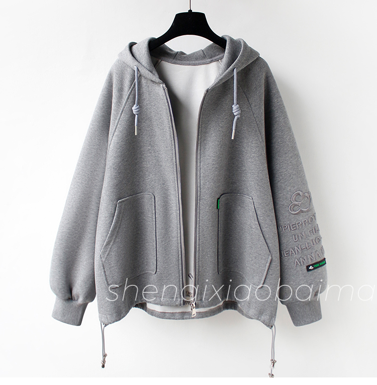 RM31271#华棉复贝贝绒秋冬新款加绒加厚连帽开衫女卫衣宽松中长款上衣外套