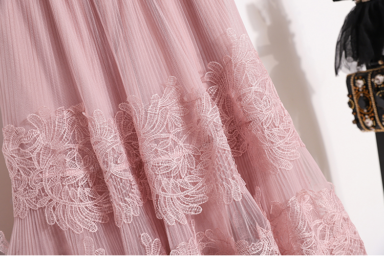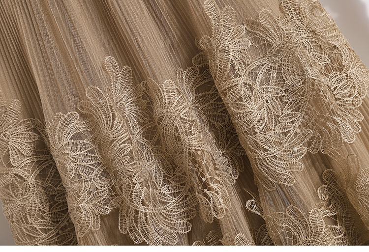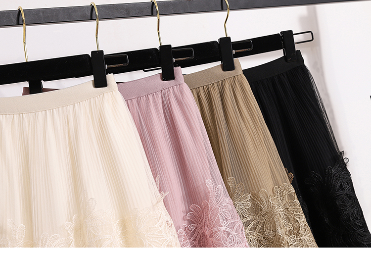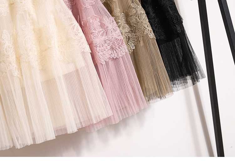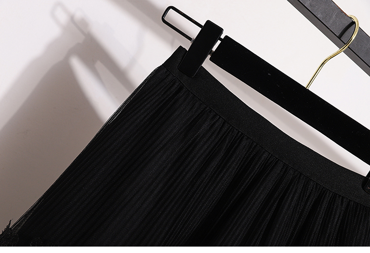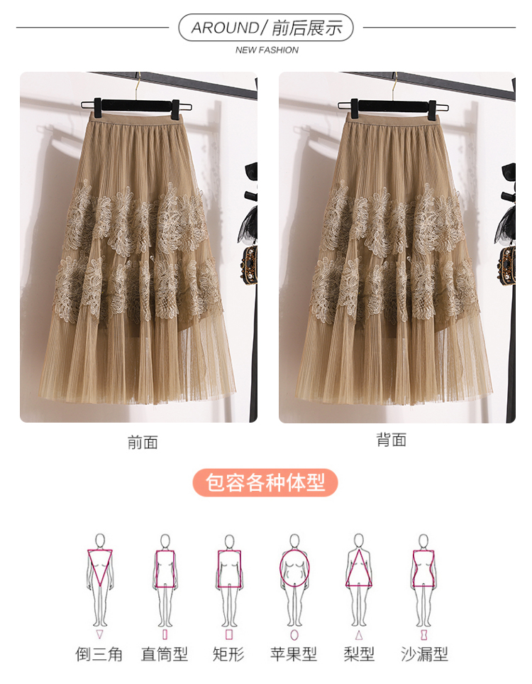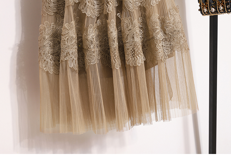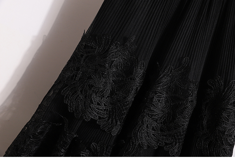 RM31360#网纱压褶大摆刺绣勾花重工蕾丝设计感中长款半身蛋糕裙女