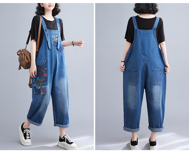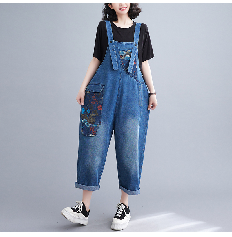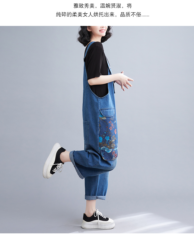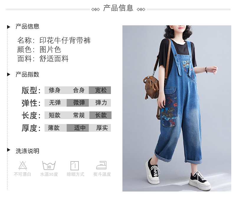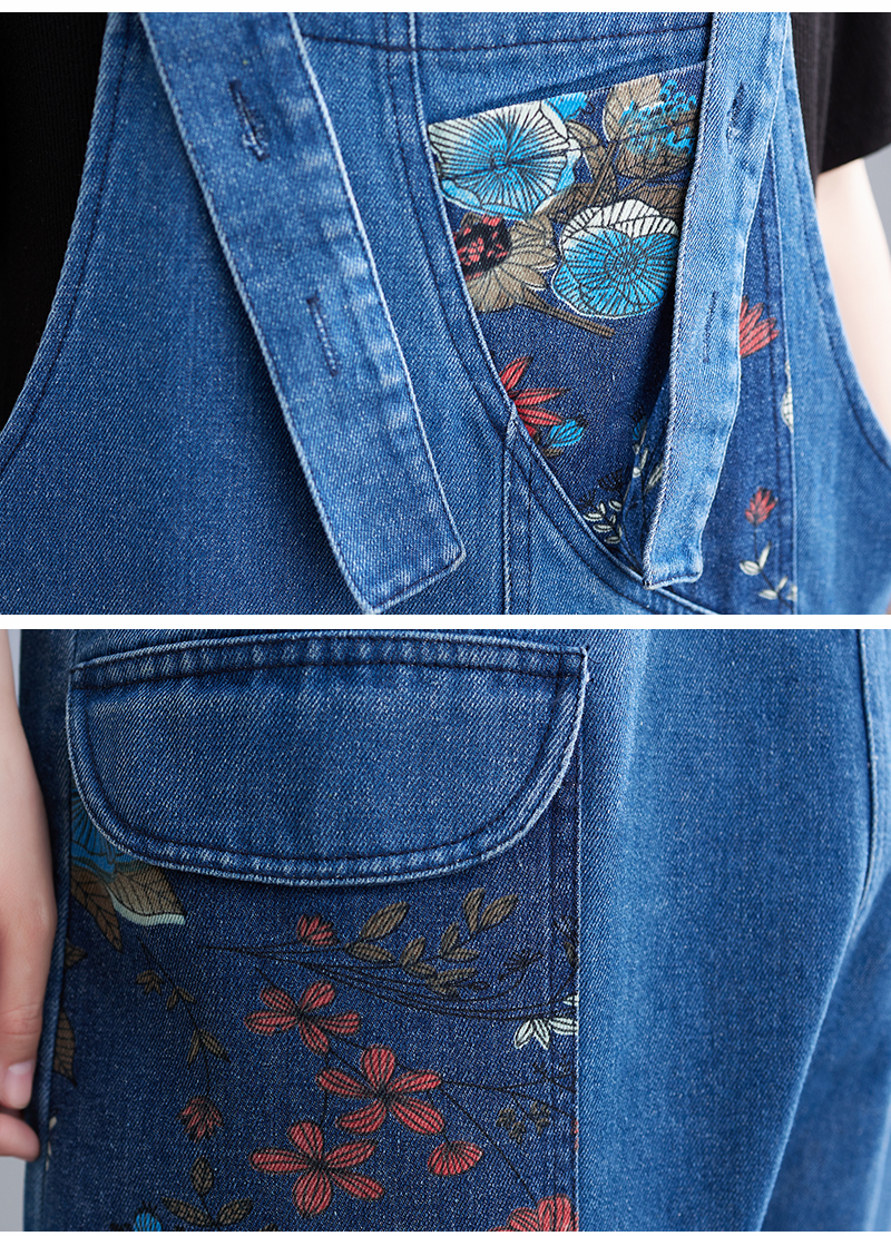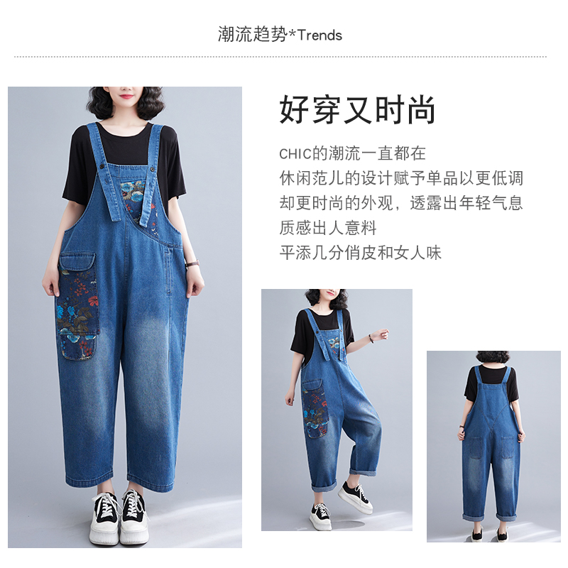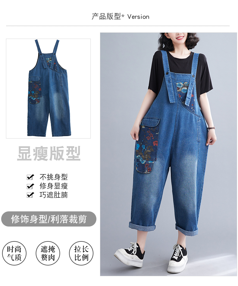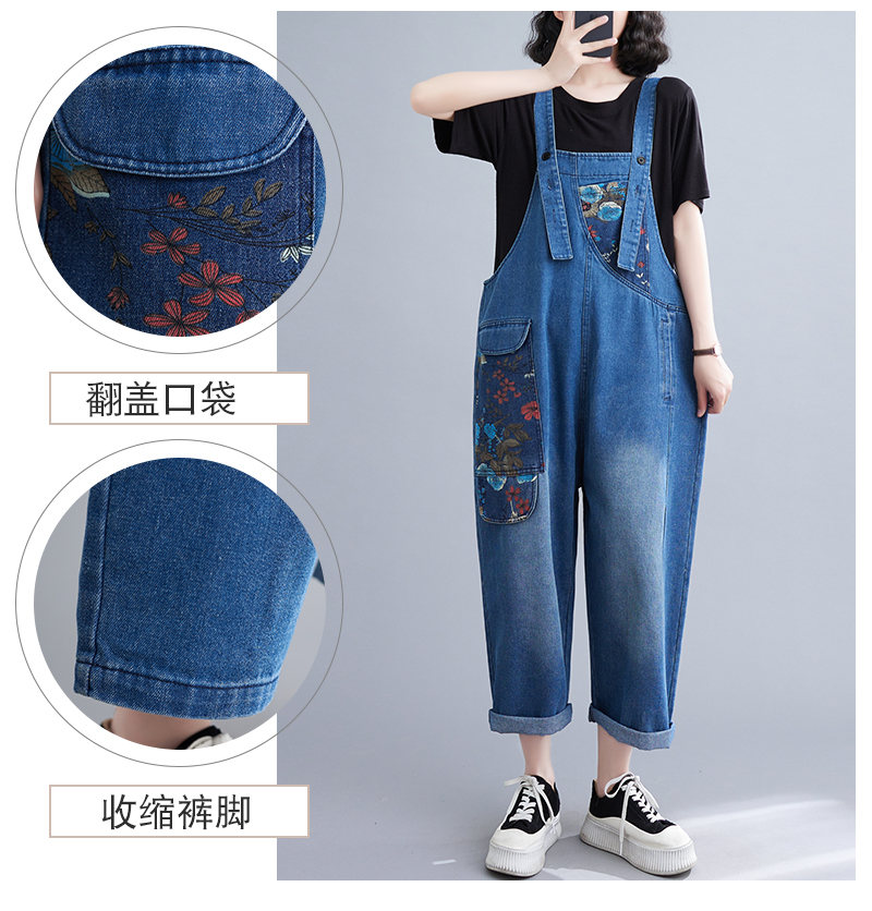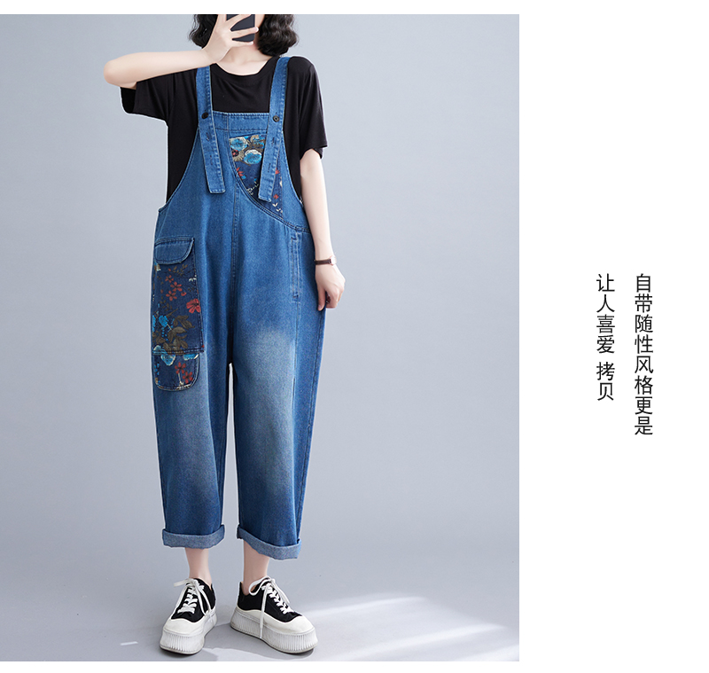 RM31447#大码牛仔背带裤春夏季新款印花时尚休闲百搭个性背带裤