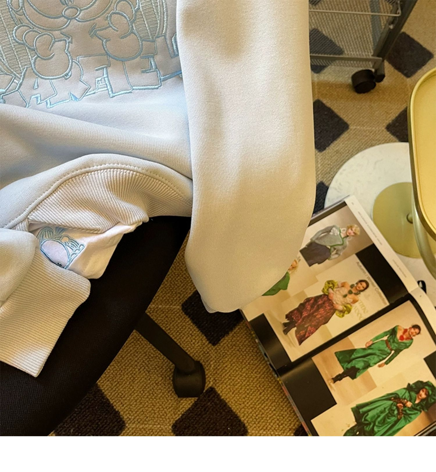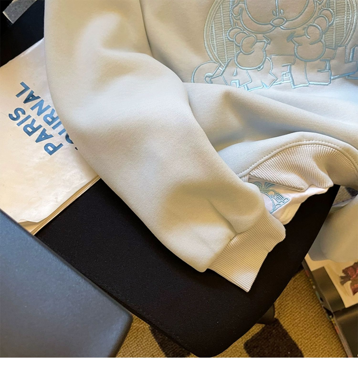 RM31454#浅蓝色假两件刺绣加菲猫翻领卫衣女秋冬oversize宽松加绒加厚上衣
