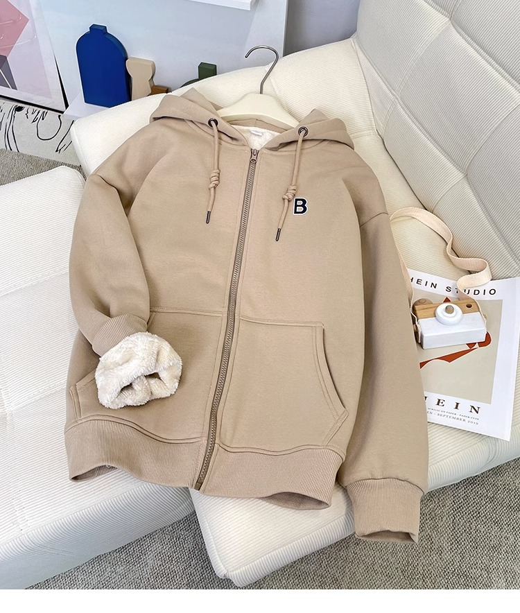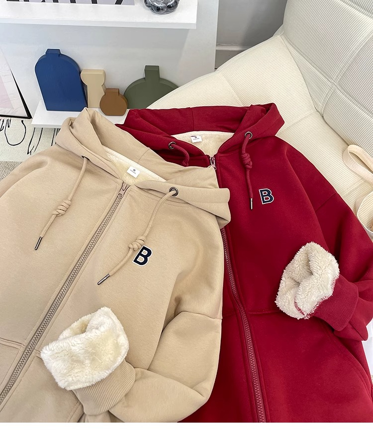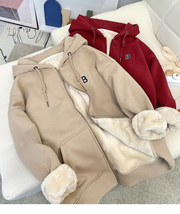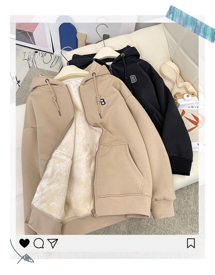 RM31455#加绒加厚连帽羊羔绒卫衣女秋冬新款女士宽松保暖长袖开衫拉链外套