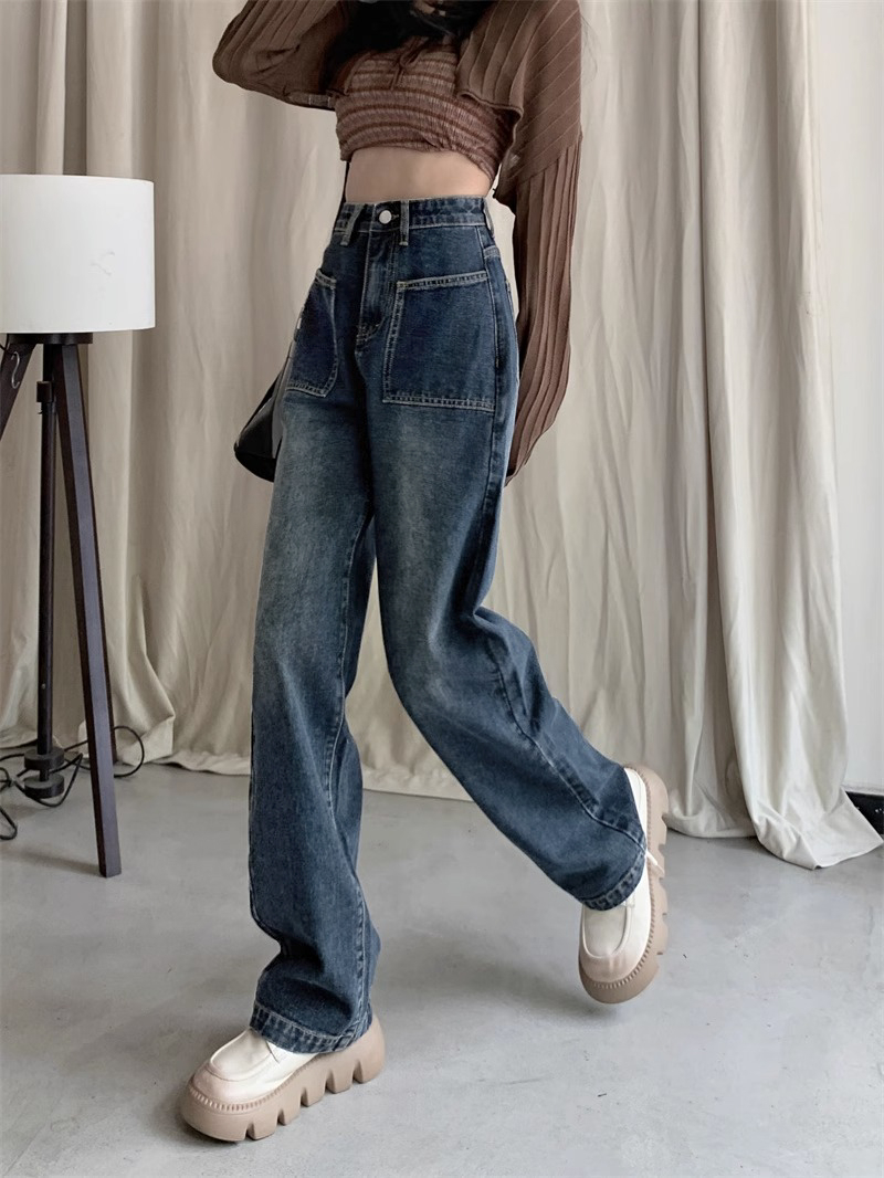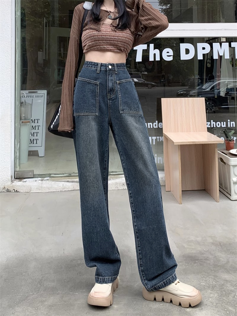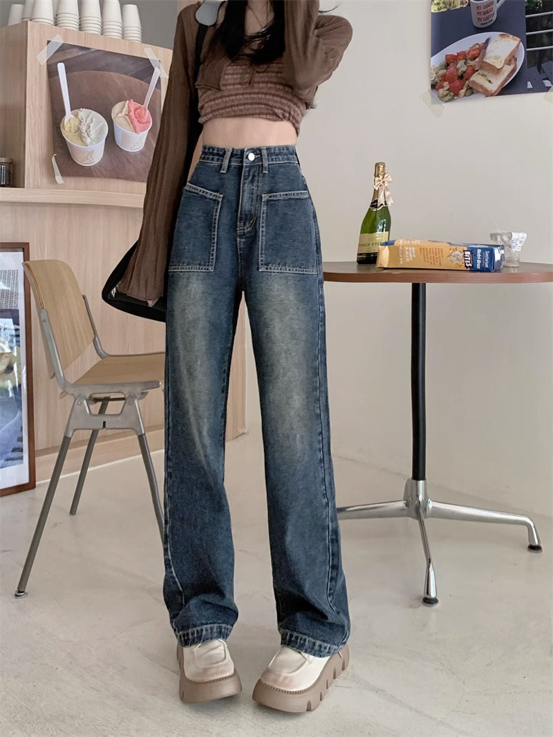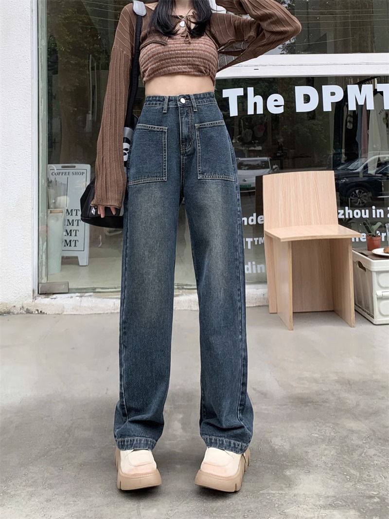 RM31464#新款高腰直筒牛仔裤女梨形身材小个子潮流窄版阔腿拖地裤