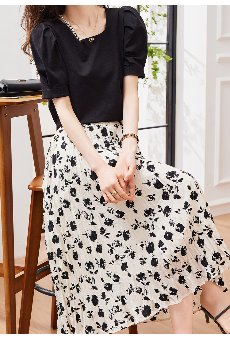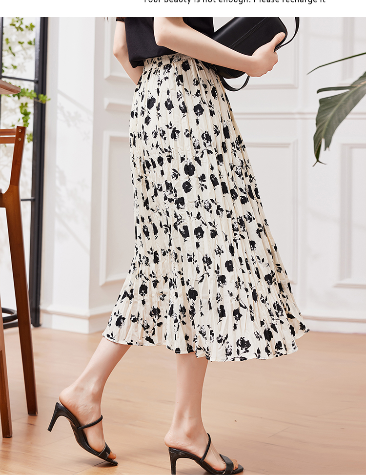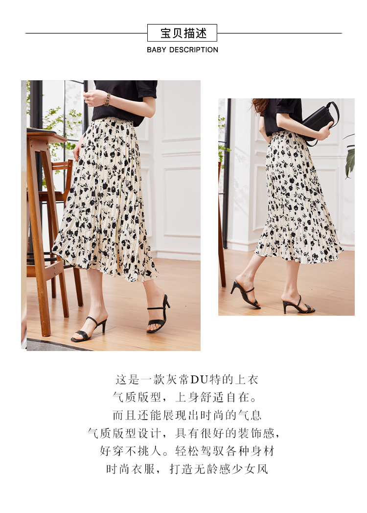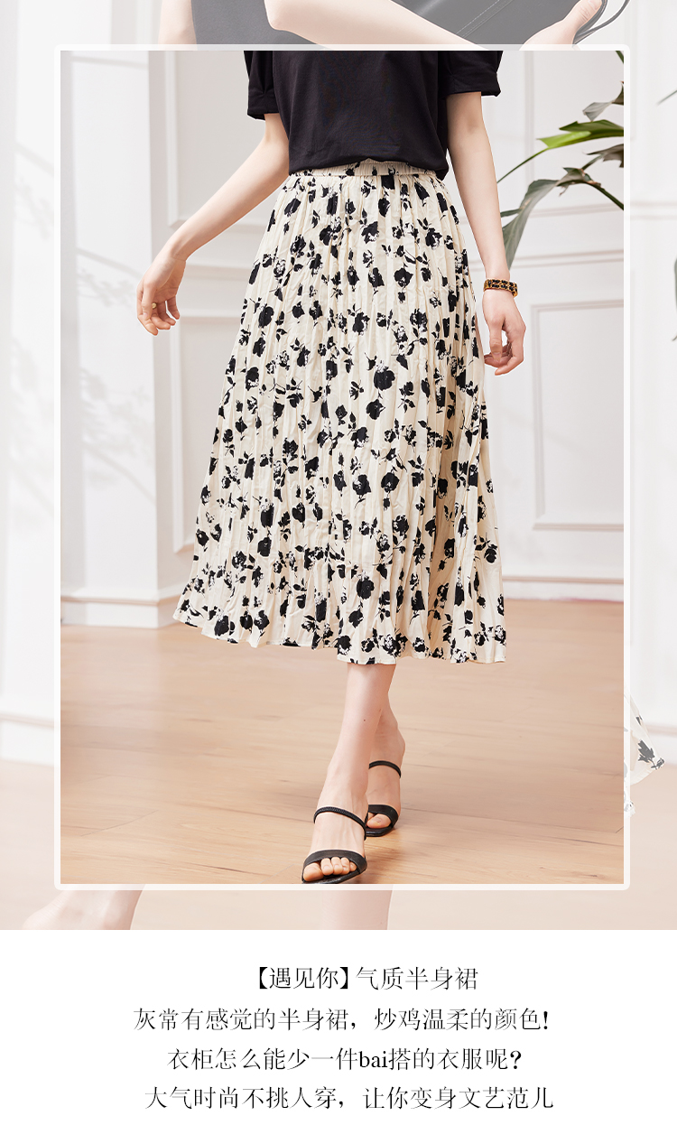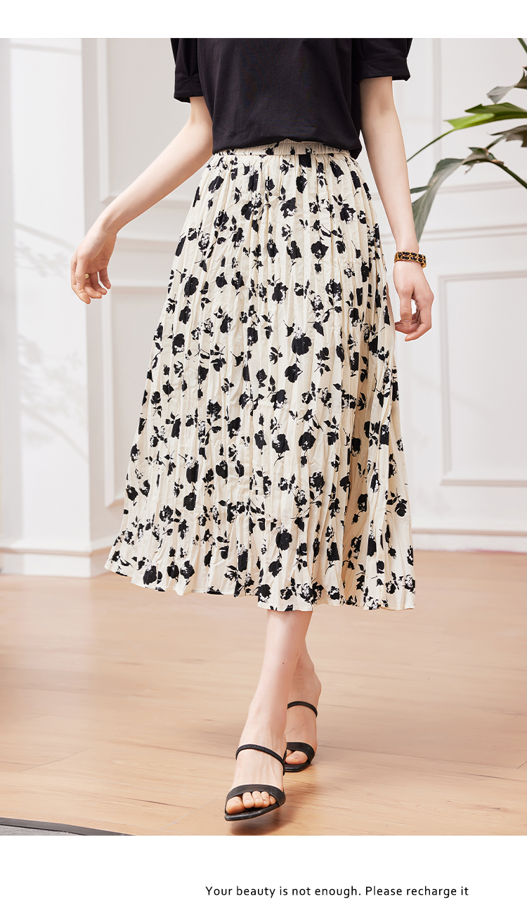 RM31473#夏季新款女装重工乱褶碎花半身裙女MM高腰复古优雅A字裙