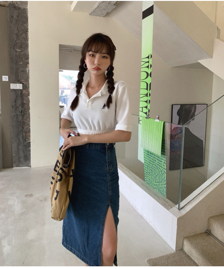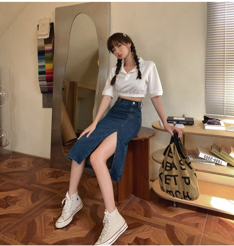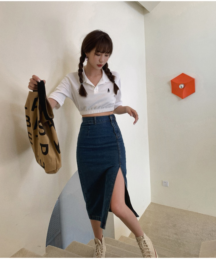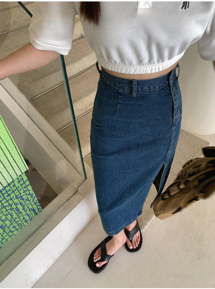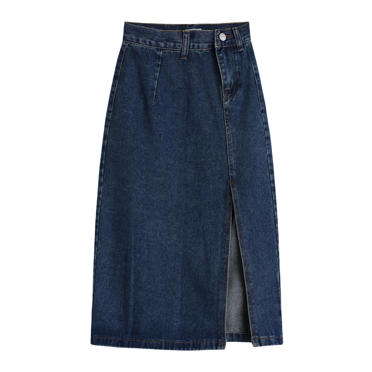 RM31502#新款牛仔半身裙女高腰显瘦开叉中长款蓝色修身包臀裙