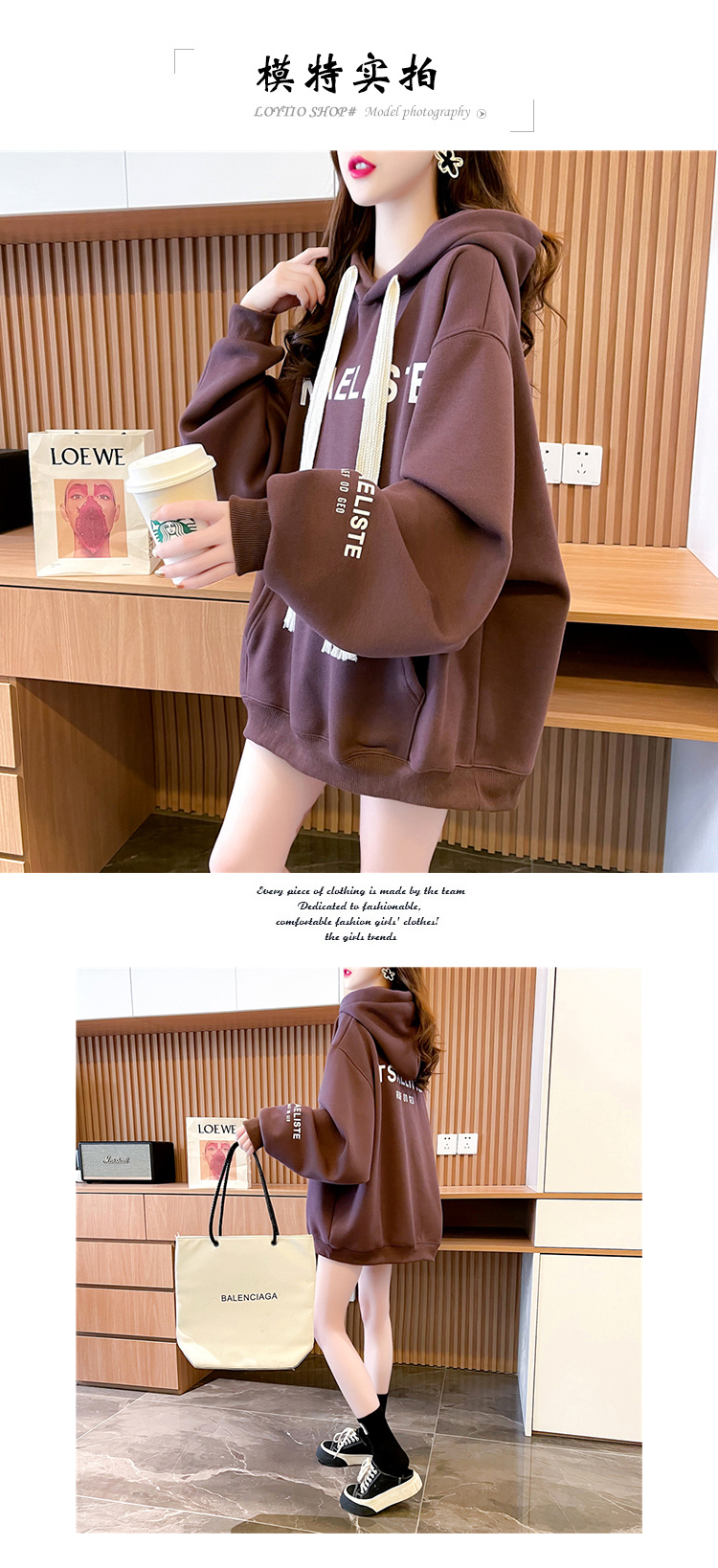 RM31526#仿棉华棉复合复合贝贝绒宽松慵懒风休闲百搭连帽加绒卫衣女潮