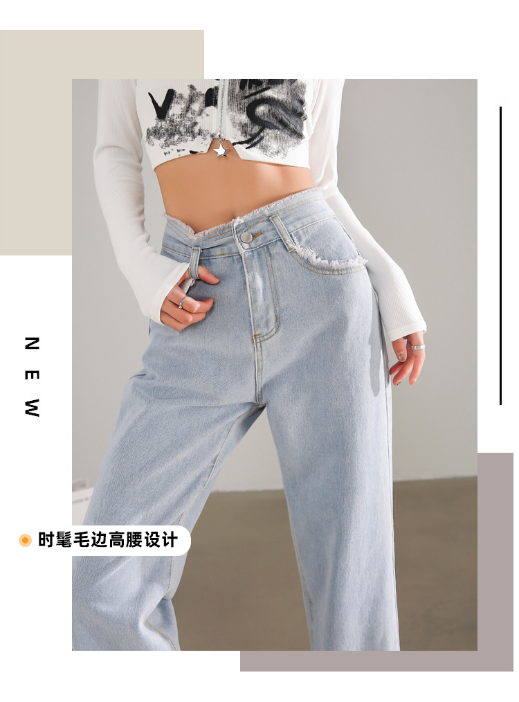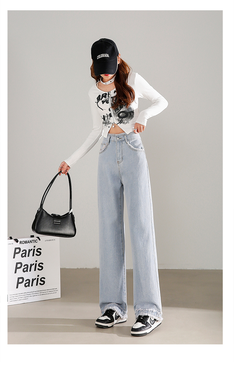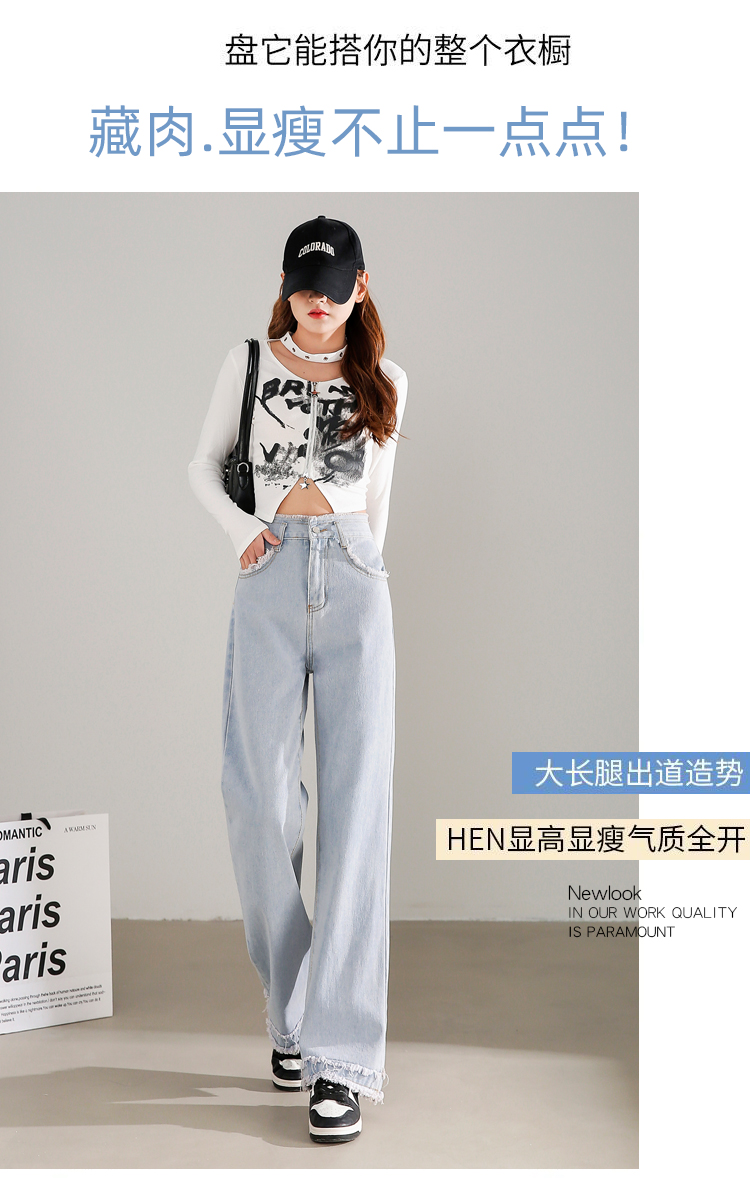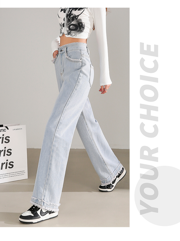 RM31558#高腰直筒牛仔裤女2024春夏新款宽松毛边小个子阔腿裤子女