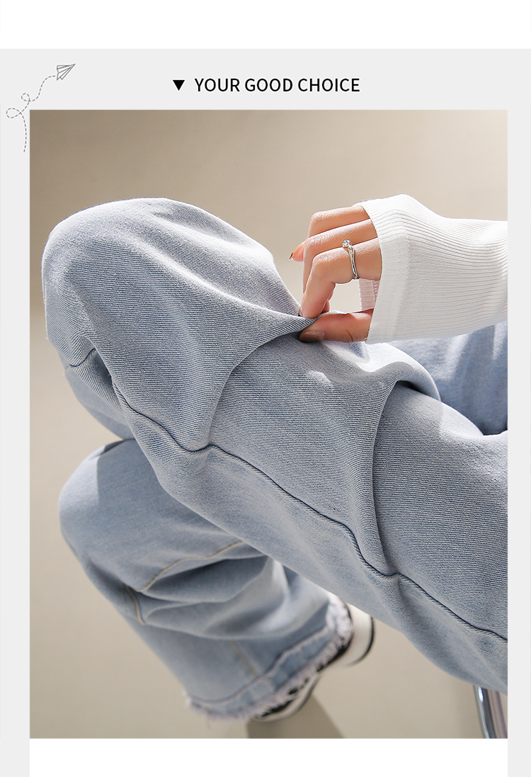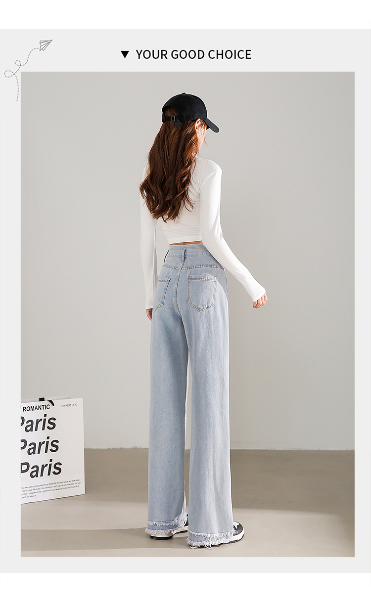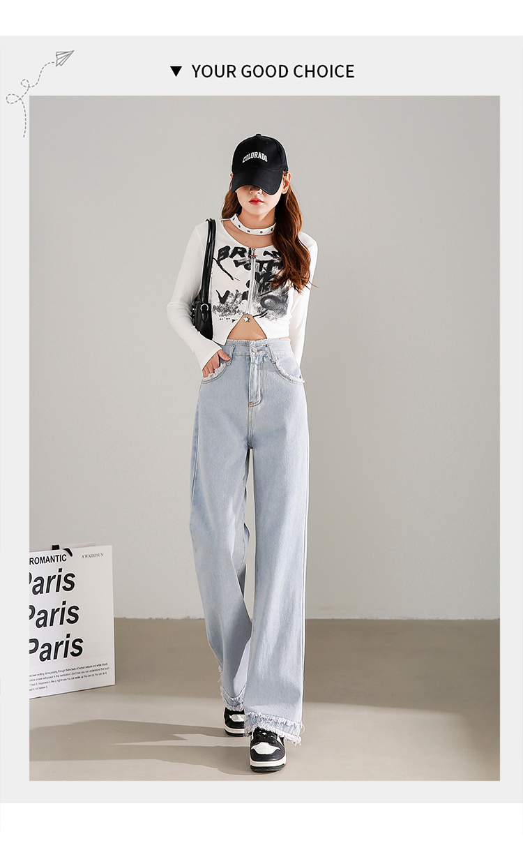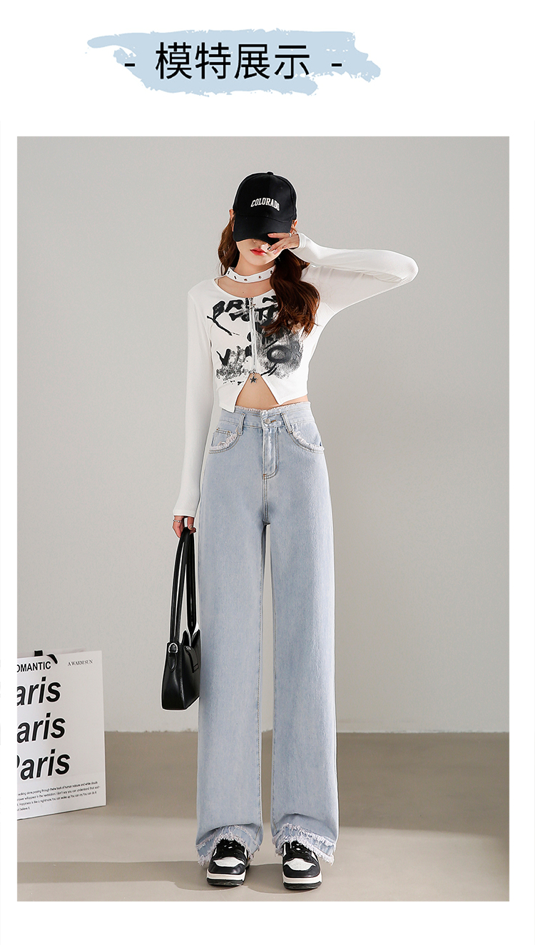 RM31558#高腰直筒牛仔裤女2024春夏新款宽松毛边小个子阔腿裤子女