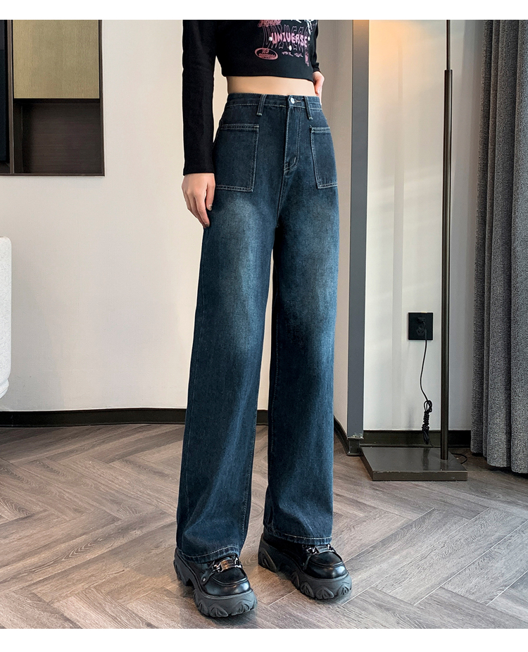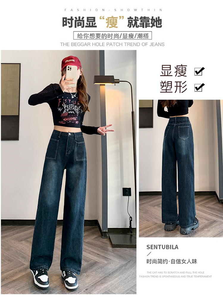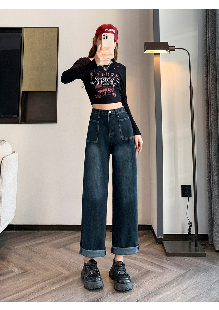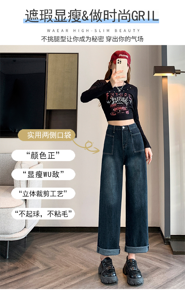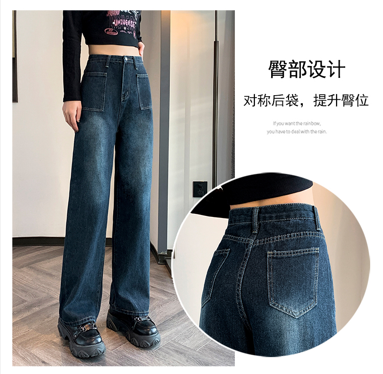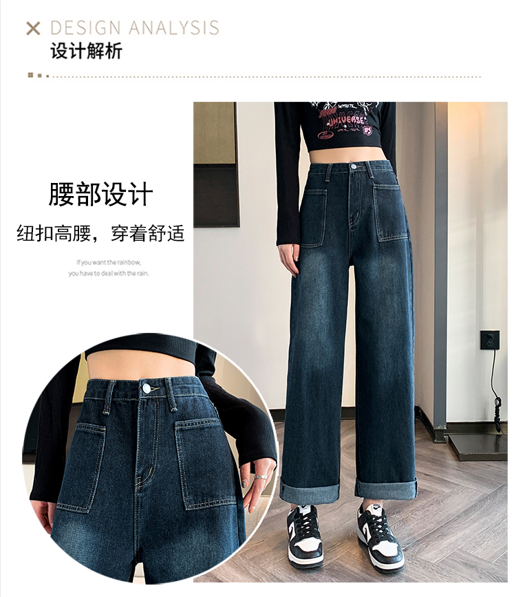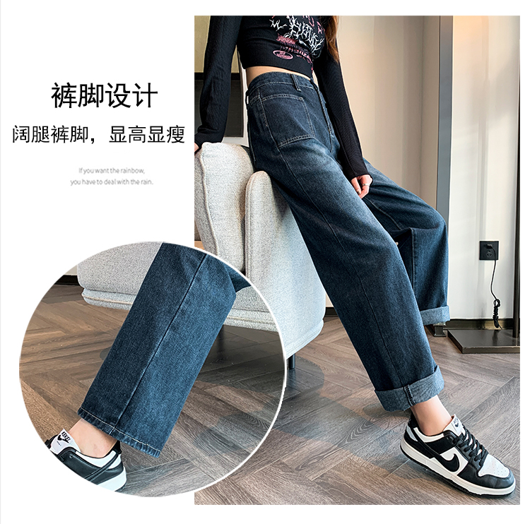 RM31559#复古牛仔裤女直筒高腰大码胖mm宽松显瘦梨型身材阔腿裤子