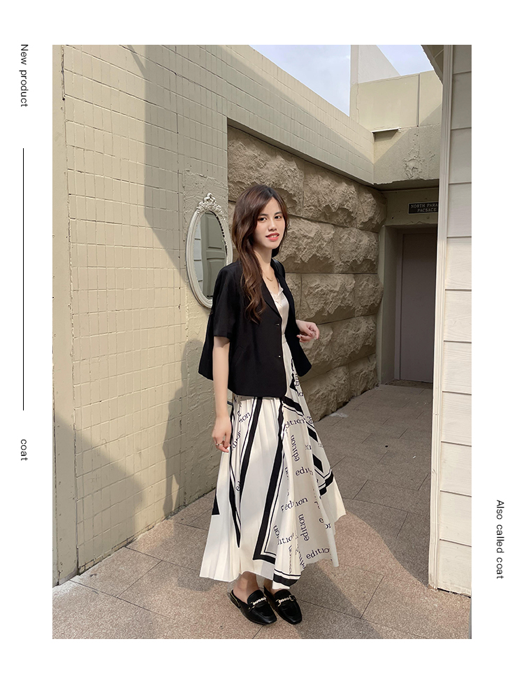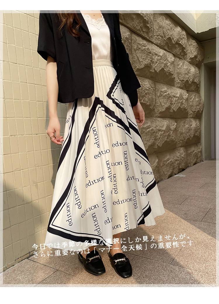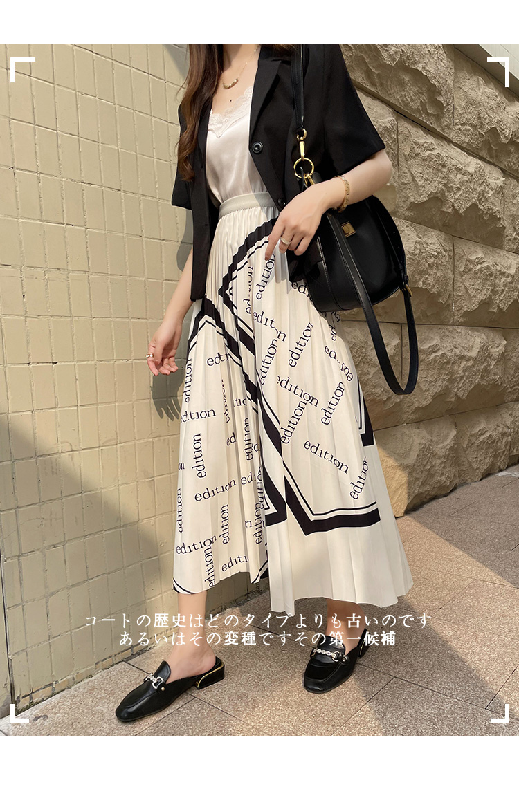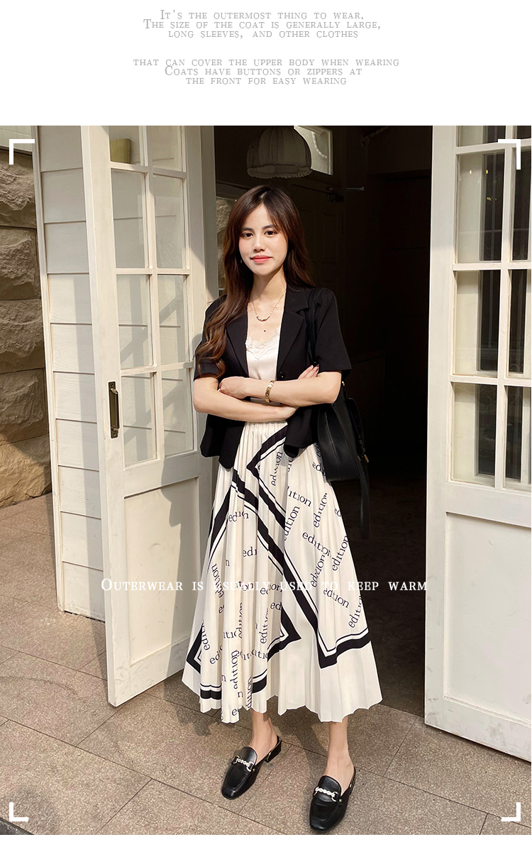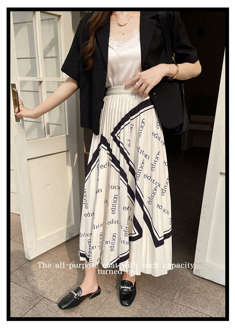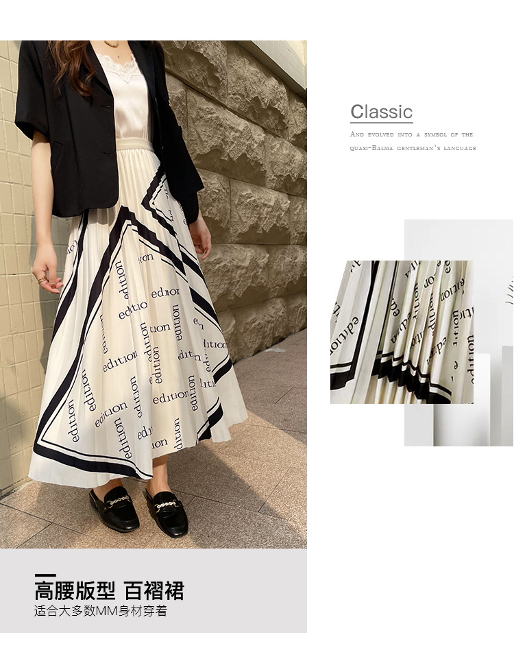 RM31636#韩版条纹字母简约2024时尚显瘦高腰撞色印花中长款百褶半身裙