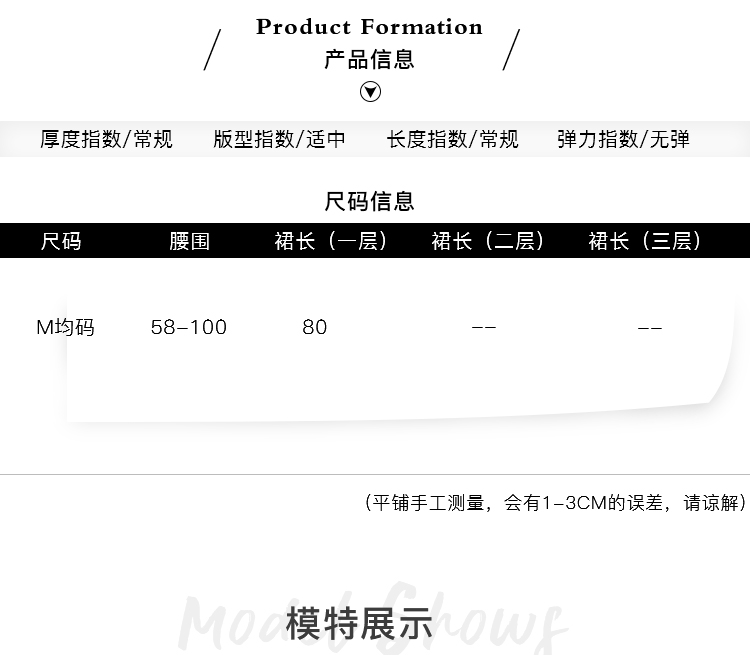 因裁剪工艺和丈量手法不同,可能存在1~3CM 左右误差,尺码仅供参考,以实物为准