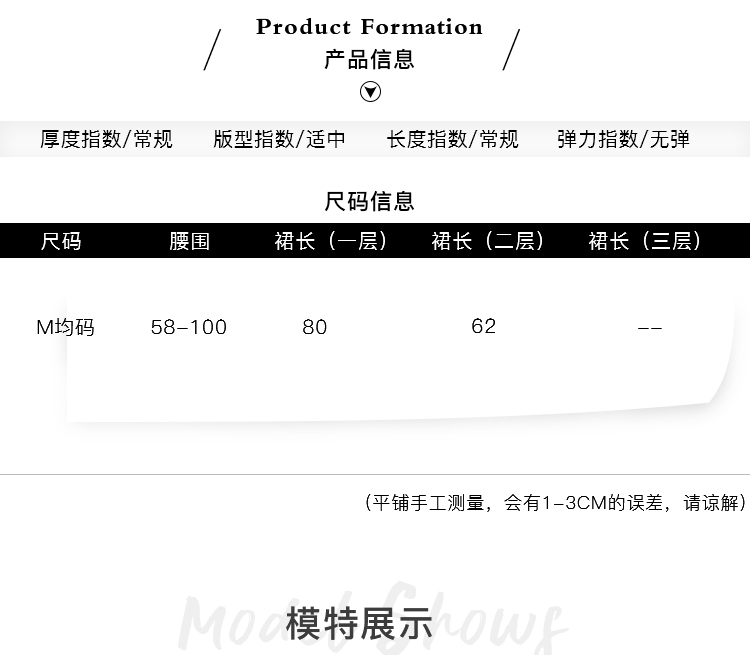 因裁剪工艺和丈量手法不同,可能存在1~3CM 左右误差,尺码仅供参考,以实物为准
