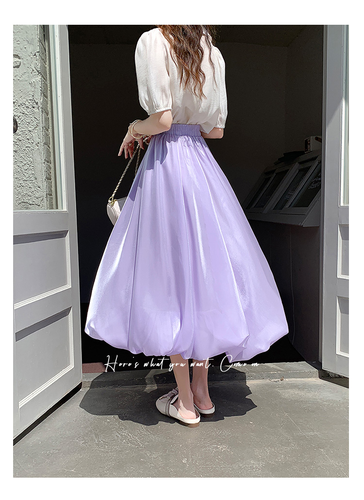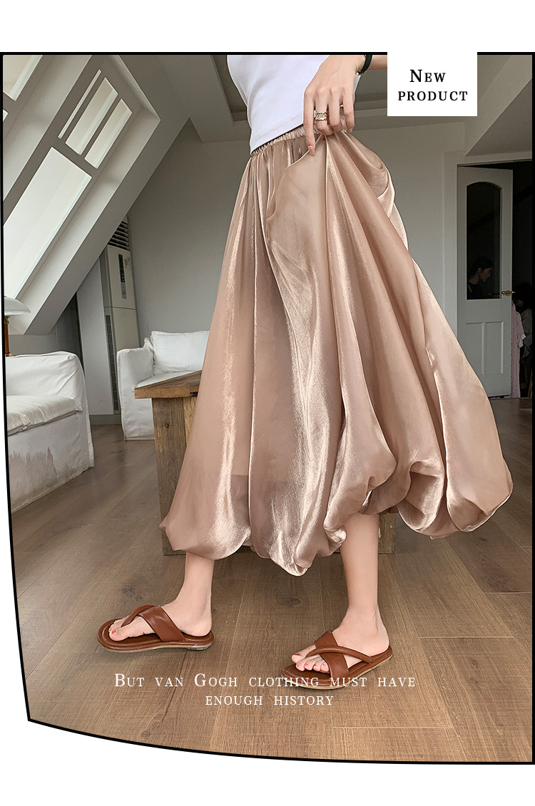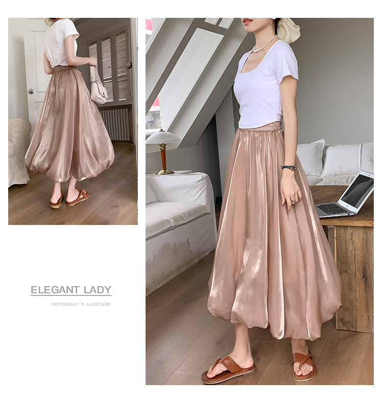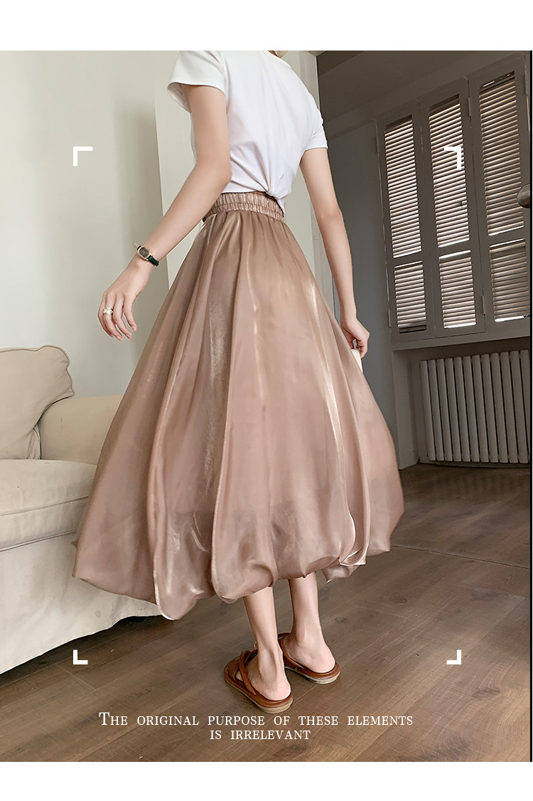 RM31644#琉璃珠光半身裙女新款a字设计感小众蓬蓬遮肉花苞褶皱半身裙