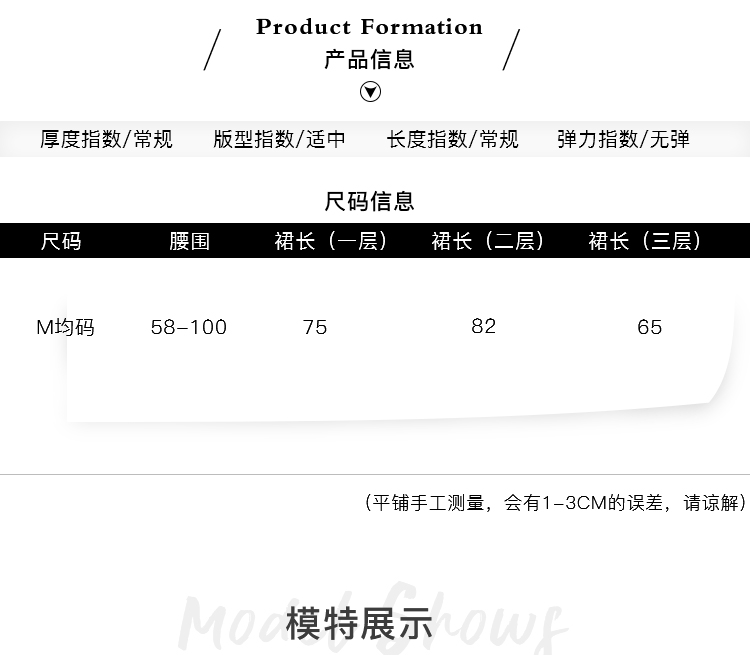 因裁剪工艺和丈量手法不同,可能存在1~3CM 左右误差,尺码仅供参考,以实物为准