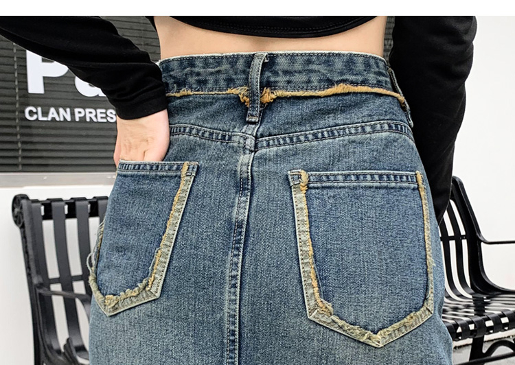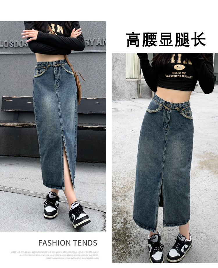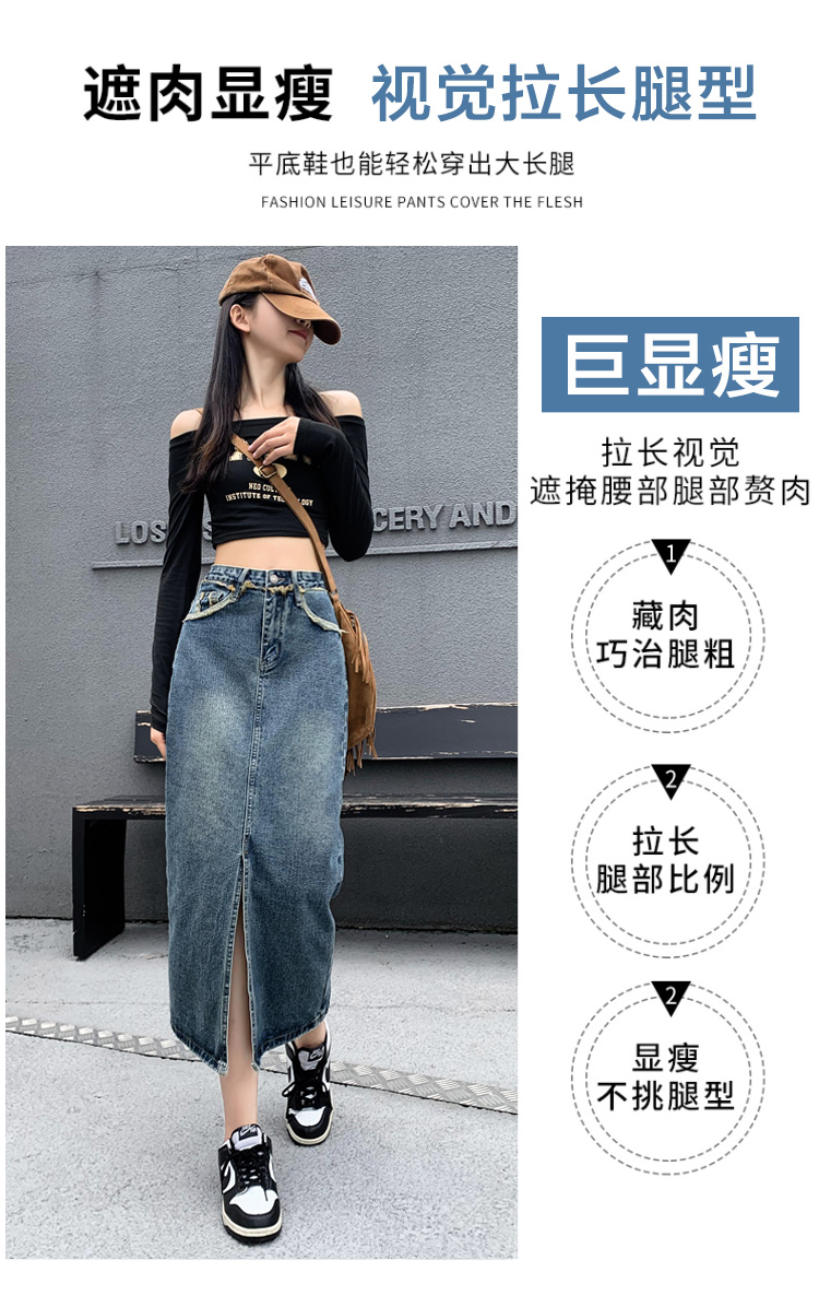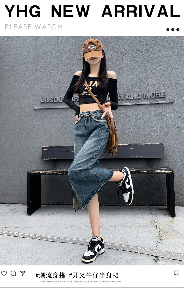 RM31676#新款设计感毛边牛仔半身裙女小个子高腰显瘦A字包臀裙子
