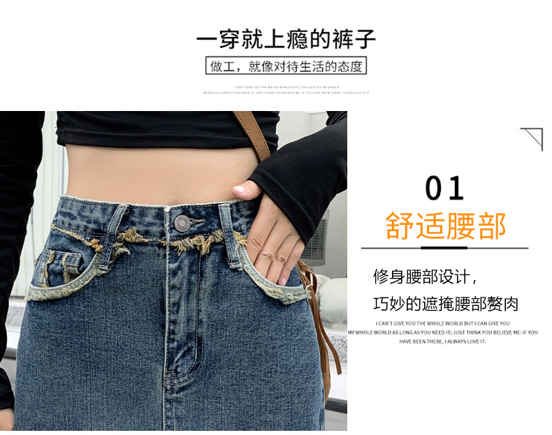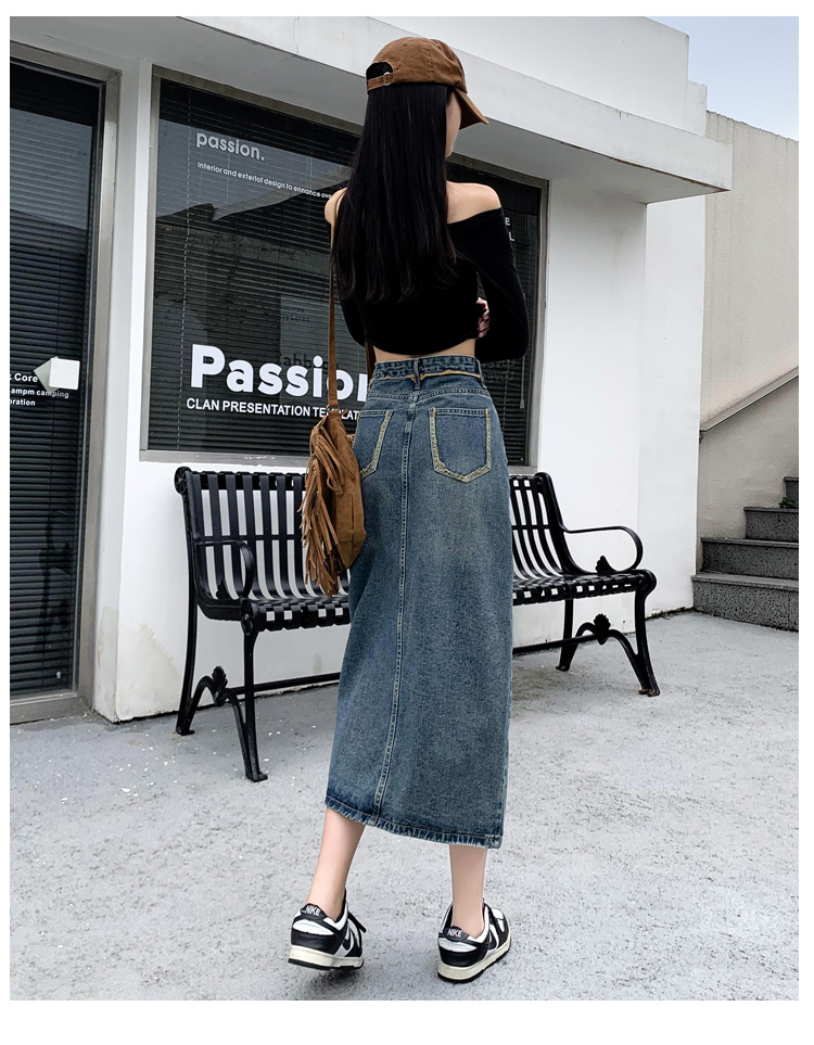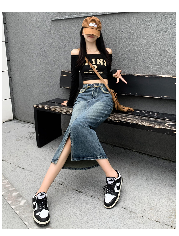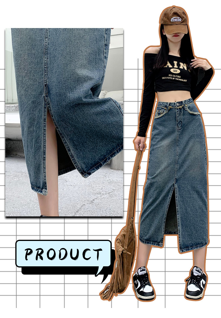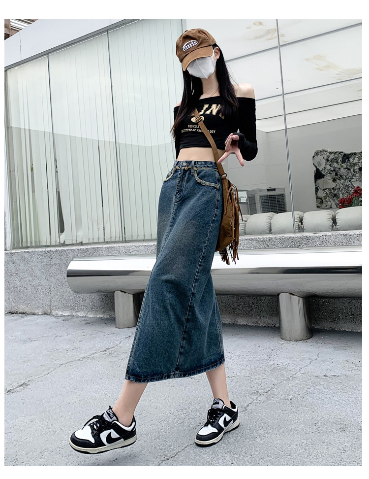 RM31676#新款设计感毛边牛仔半身裙女小个子高腰显瘦A字包臀裙子
