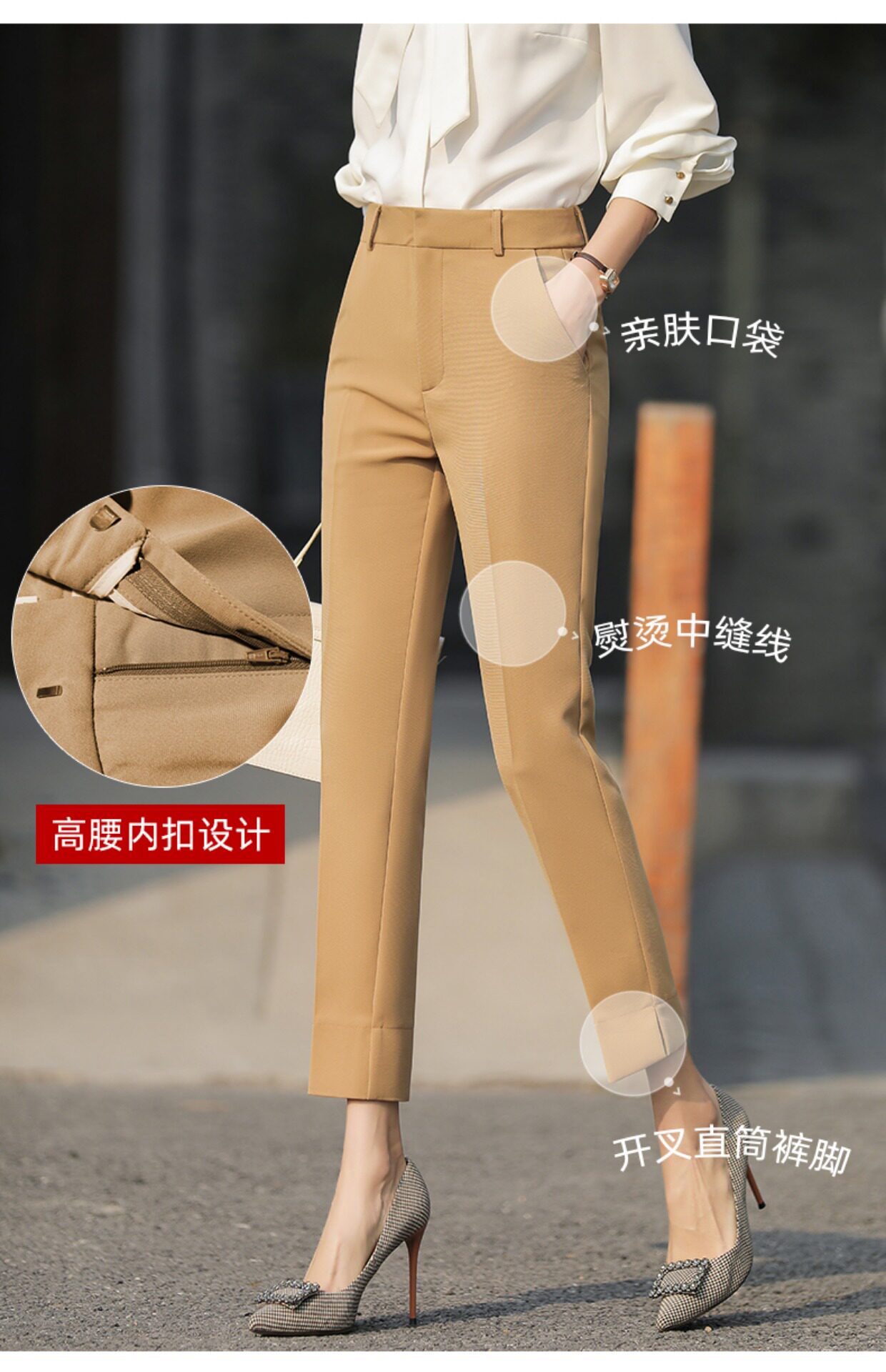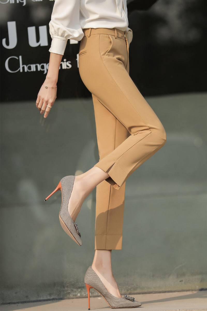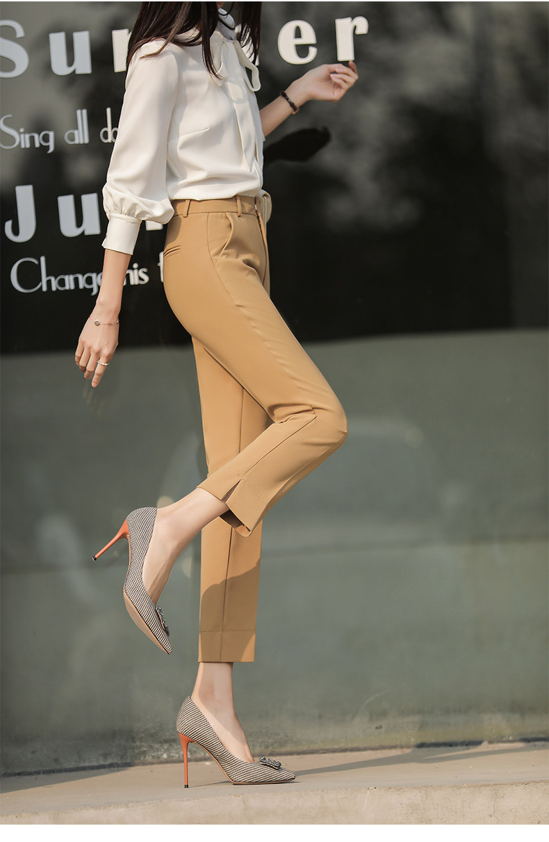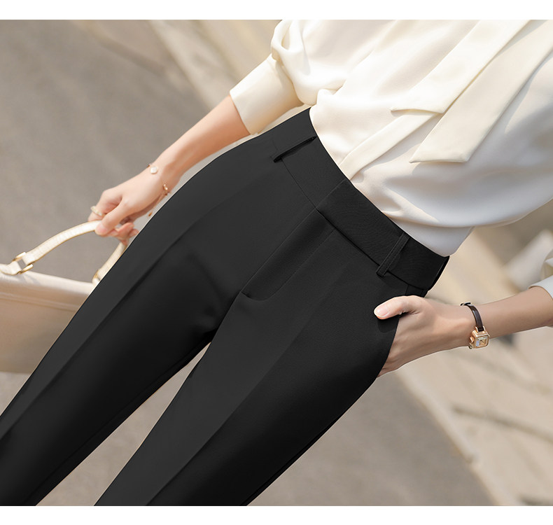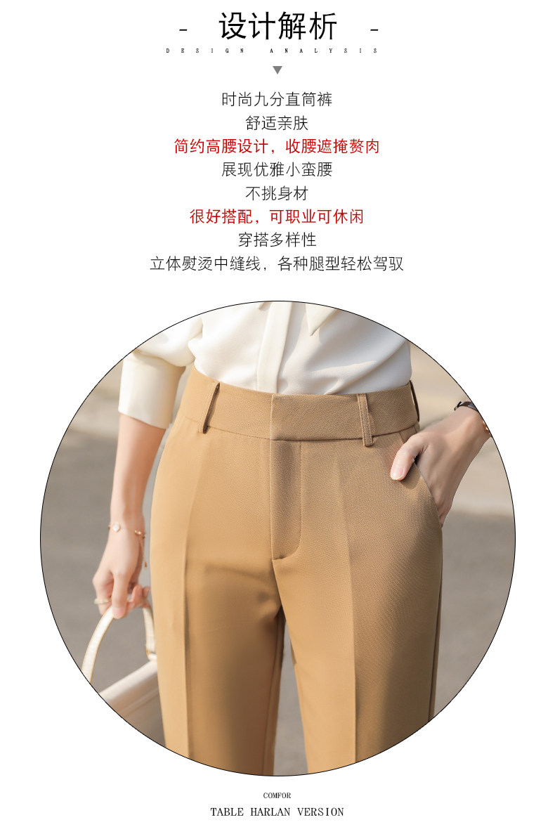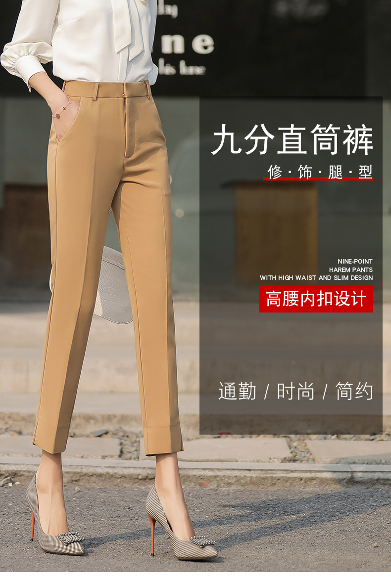 RY2661#开叉西装裤女高腰直筒小脚职业秋季显瘦烟管裤